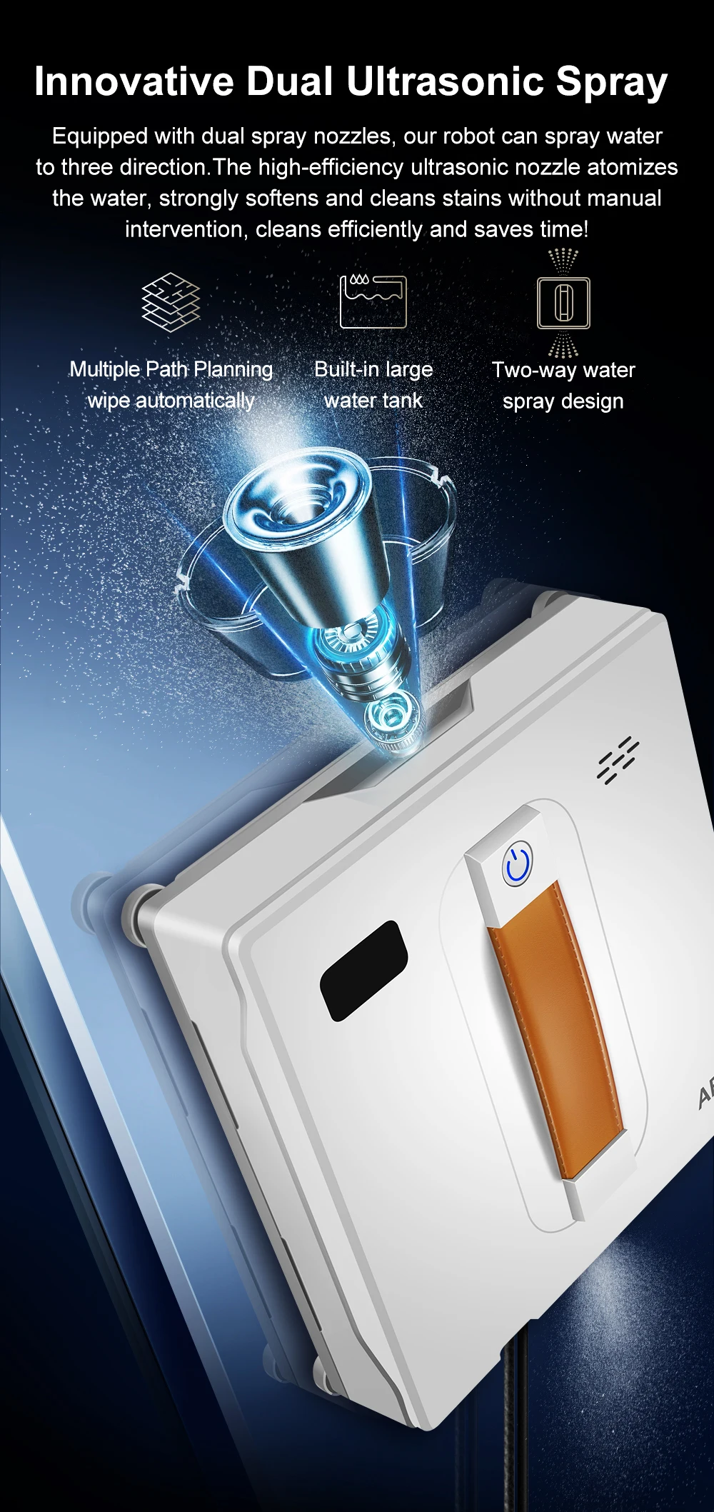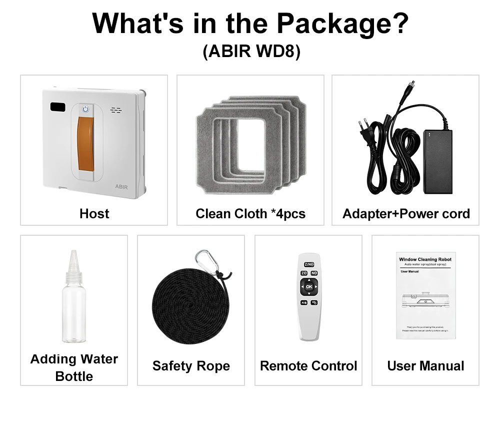 ABIR WD8 Robot Window Vacuum Cleaner,Dual Water Spray,Laser Sensor,Smart Home Glass Wall Wet Dry Cleaning ,APP&Remote Control