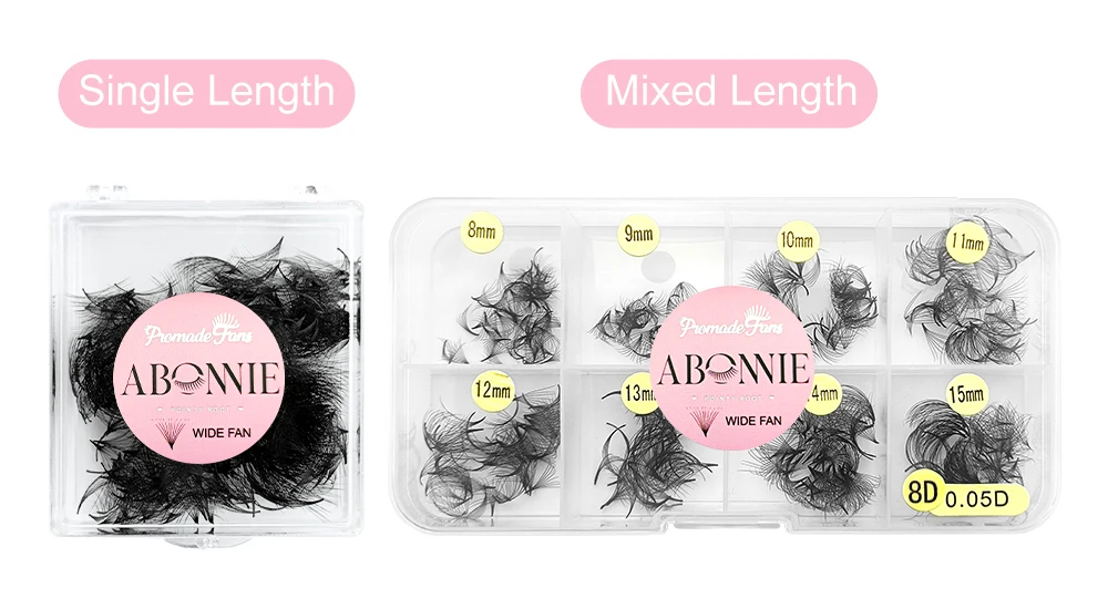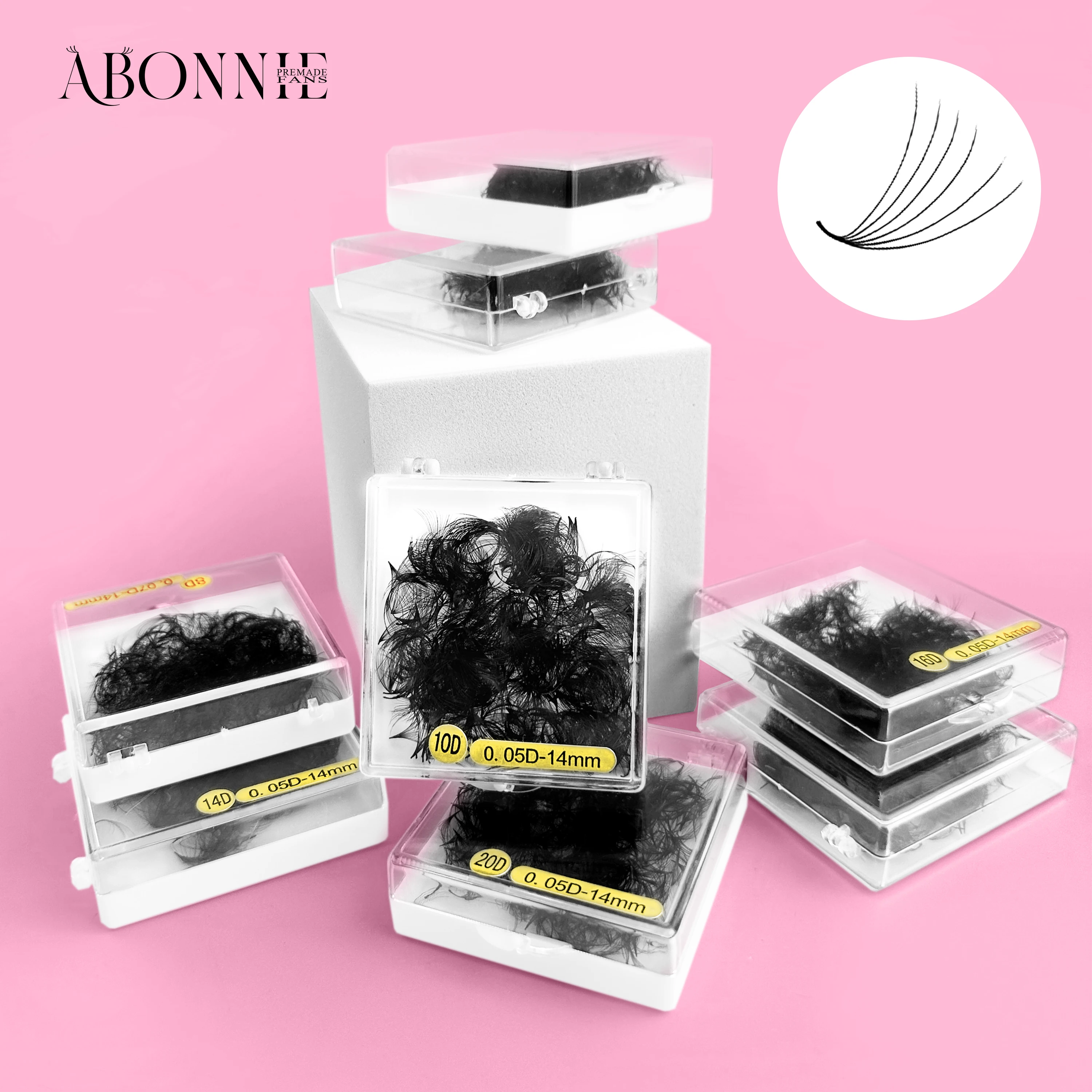 ABONNIE Loose 6-20D Pointy Base Short Stem Premade Russian Volume Fans Faux Mink Premade Eyelash Extensions Makeup Cilios