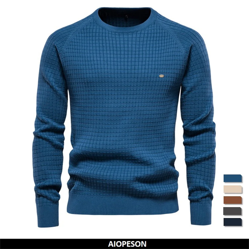 AIOPESON 100% Cotton Men Sweaters Soild Color O-neck High Quality Mesh Pullovers Male New Winter Autumn Basic Sweaters for Men