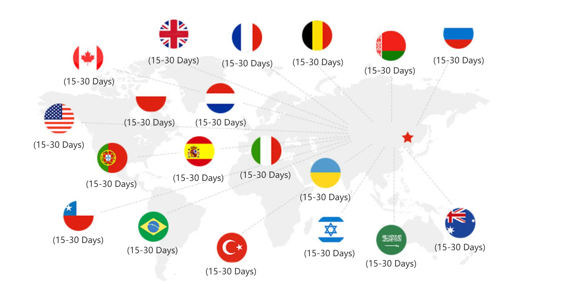 C:)Delivery time depends on destination and other factors, Usually Shipping time Within15-45 Working days Will Arrival , if you can’t get it on time ,Contact us trouble extended date and check the tracking information.
