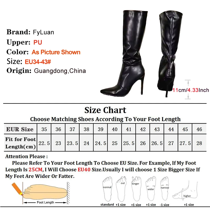 Black Knee-high Boots For Women Pointed Stiletto Heels Classic Side Zipper Winter Shoes Nightclub Club Party 11CM Female Boots