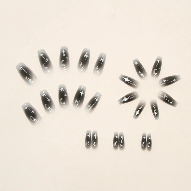 Black Moon 24 Pcs Press on Nails Pink Gradient Fake Nails Glossy Artificial Finger Manicure Reusable False Nails for Women