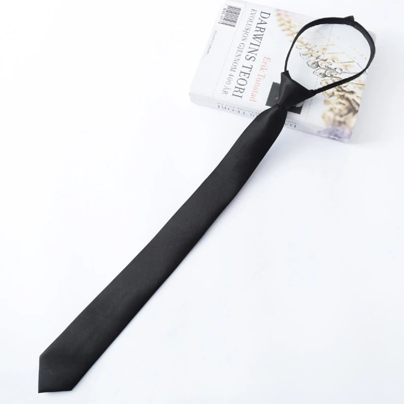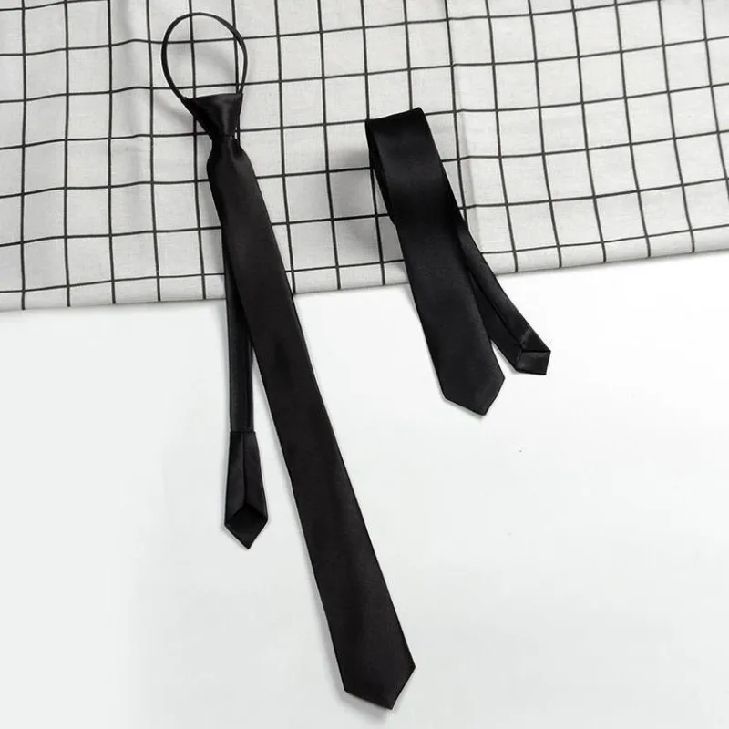 Black Unisex Zipper Ties Retro Silky Narrow Neck Tie Slim Smooth Women Bow Tie Korean Style Simple Elegant All-match Trendy Tie