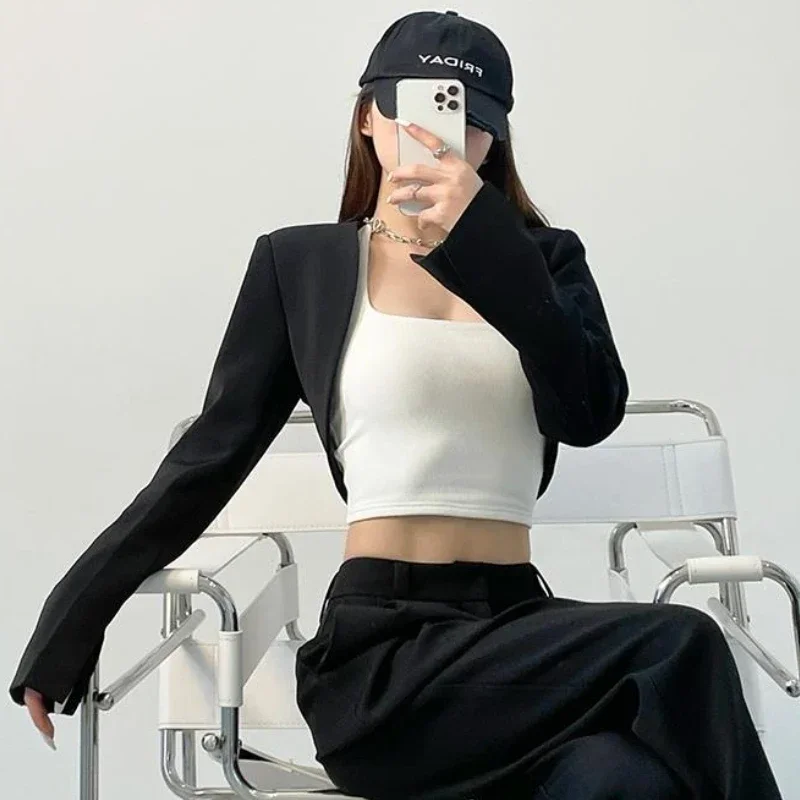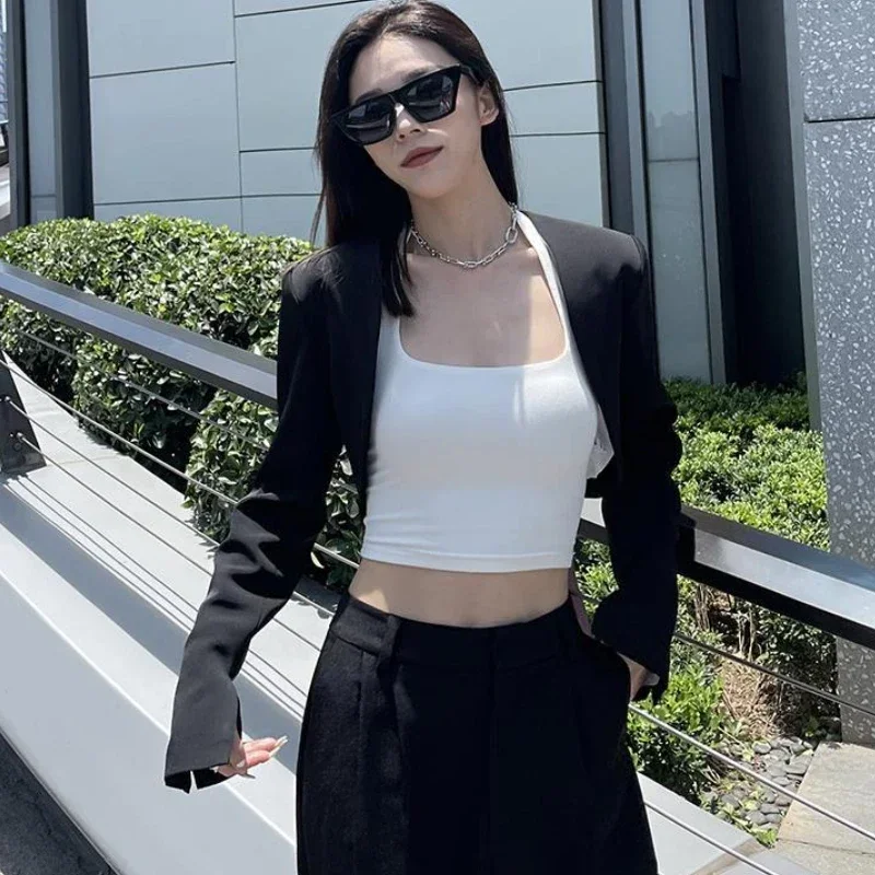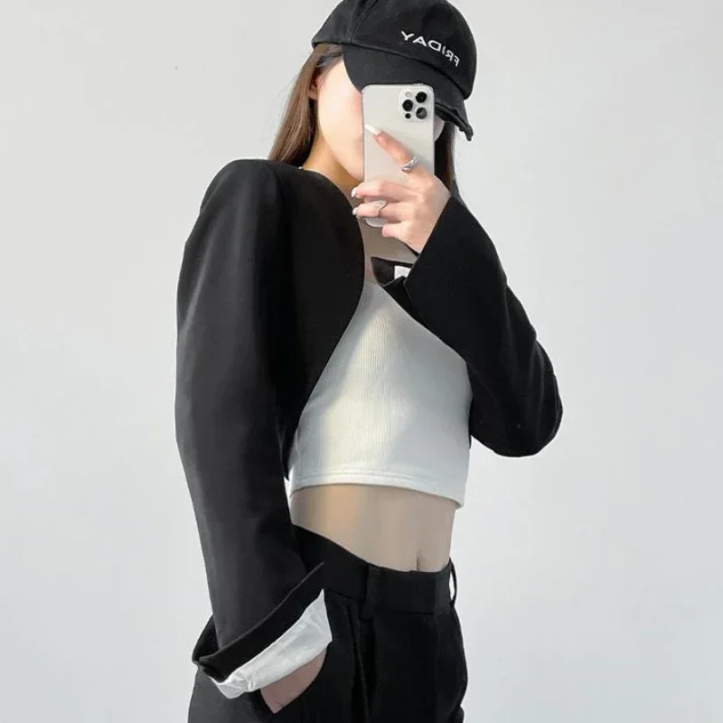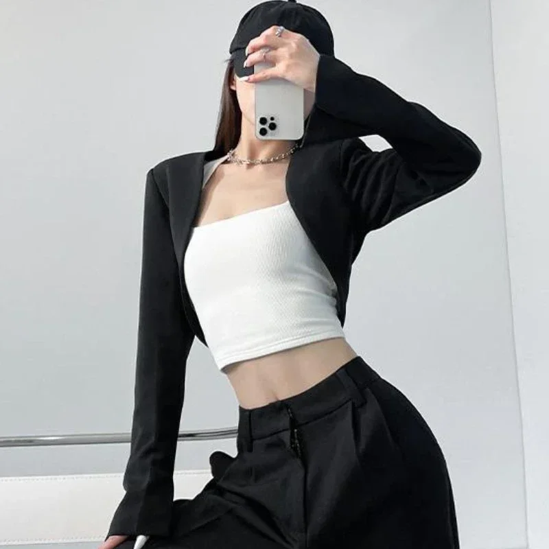 Blazers for Women Cropped Long Sleeve Jacket Solid Spring Streetwear Chic Simple All-match American Style Hotsweet Sexy Female