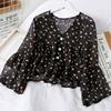Blouses Women Temperament V Neck Floral Print Sweet Small Fresh Long Sleeves Chiffon Shirt Autumn All-match Short Crop Top