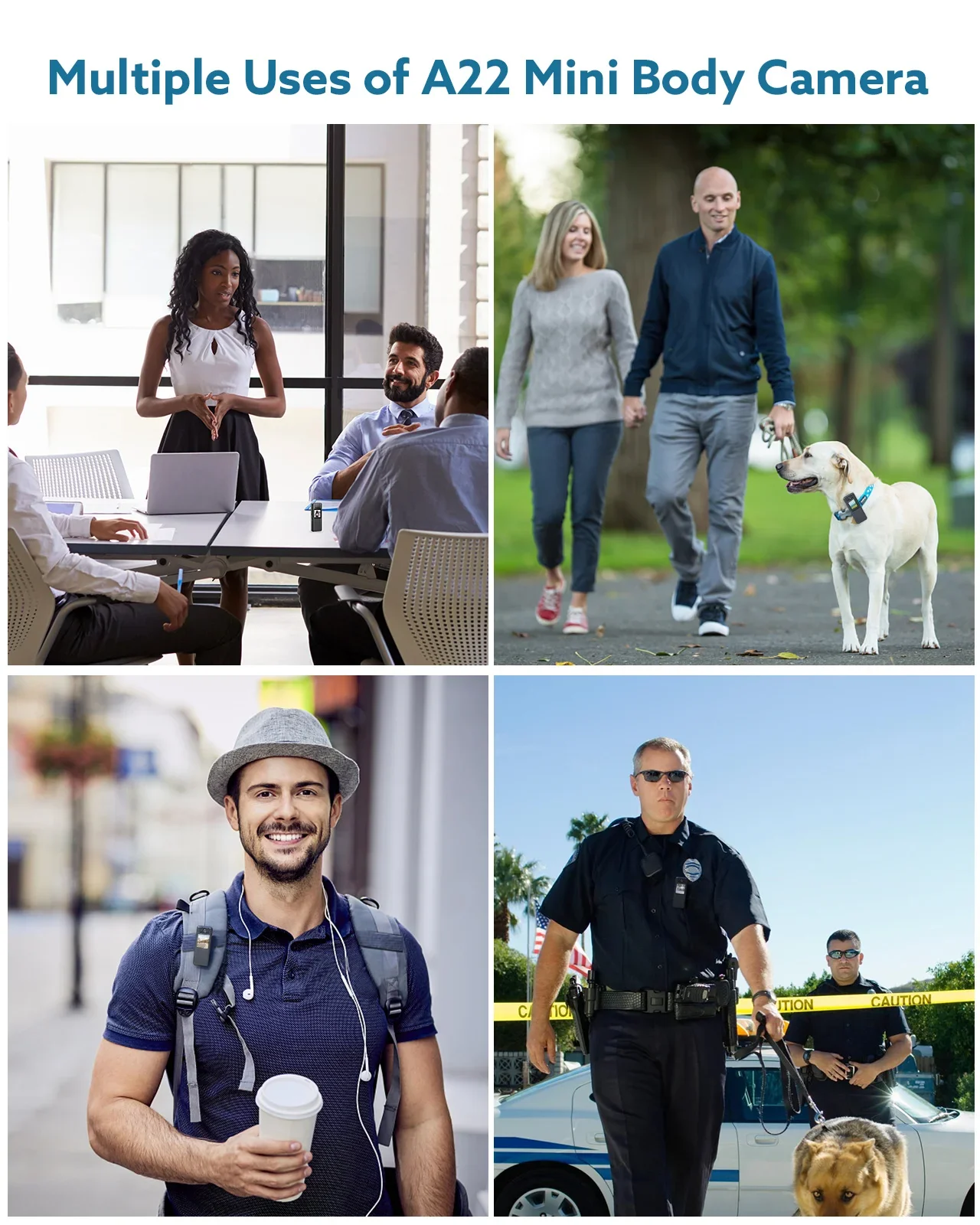 【FHD 1080P/30fps Video Recording and 40M Pixels Photo】 Features 1080P video recording and 40M photos, the camera could provide clear footage in daily life, also the body camera with audio recording could work at night, 4pcs invisible IR lights help to record in the dark environment. Support taking photos when recording,support invisible and silent recording. Loop recording function supported.