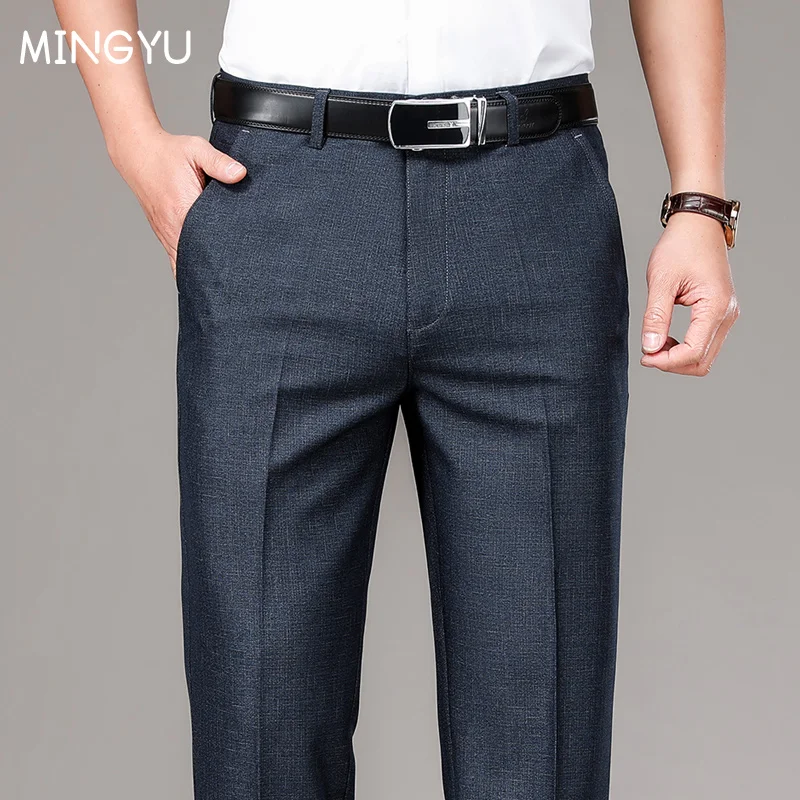 Brand Clothing Summer Suit Pants Men Baggy Straight Business High Waist Work Banquet Long Formal Trousers Male Plus Size 40 42