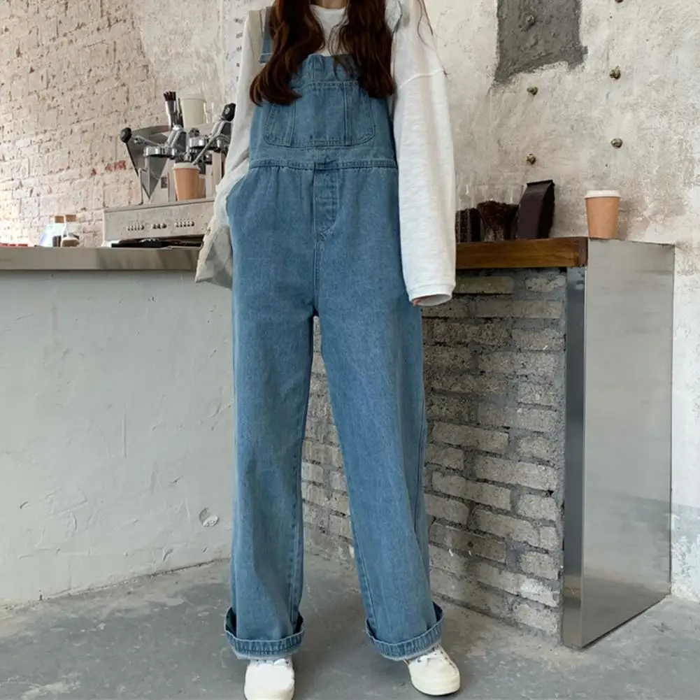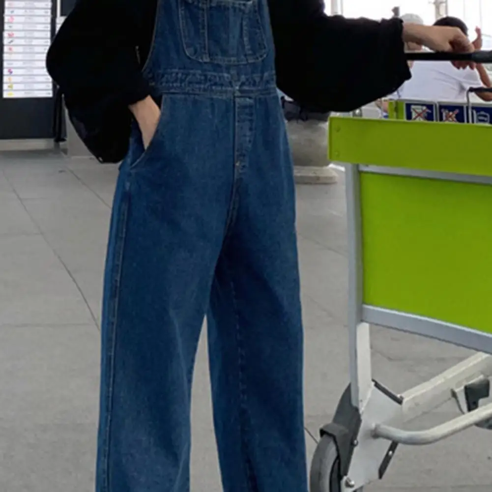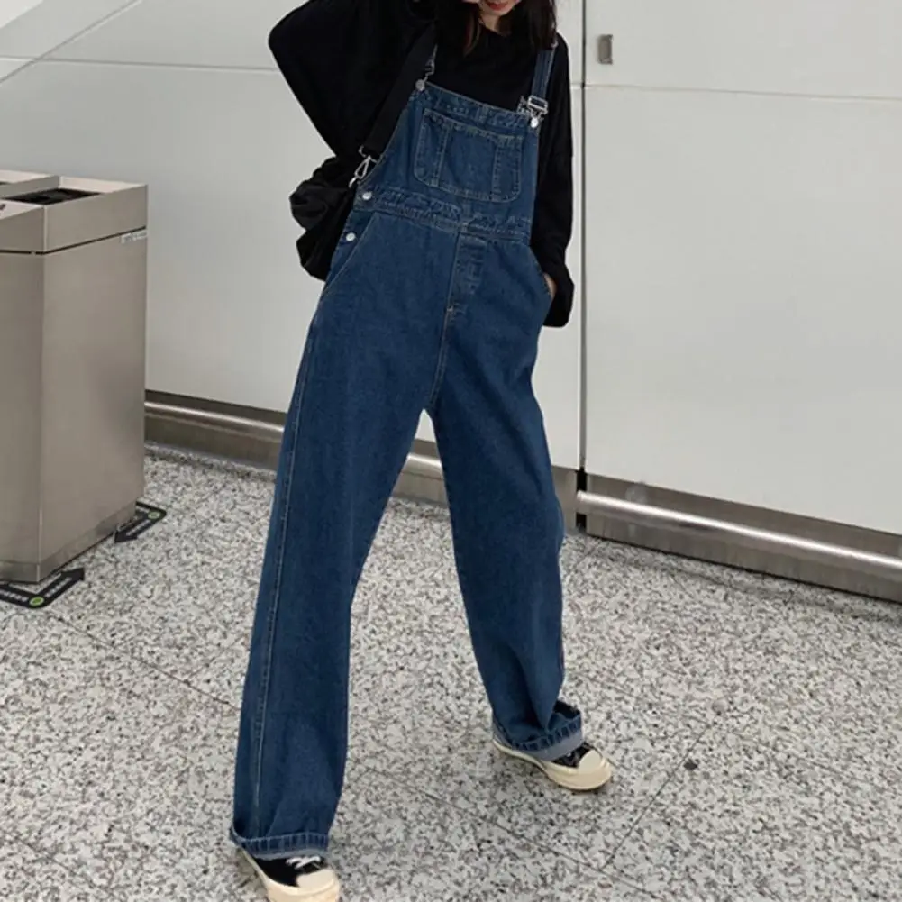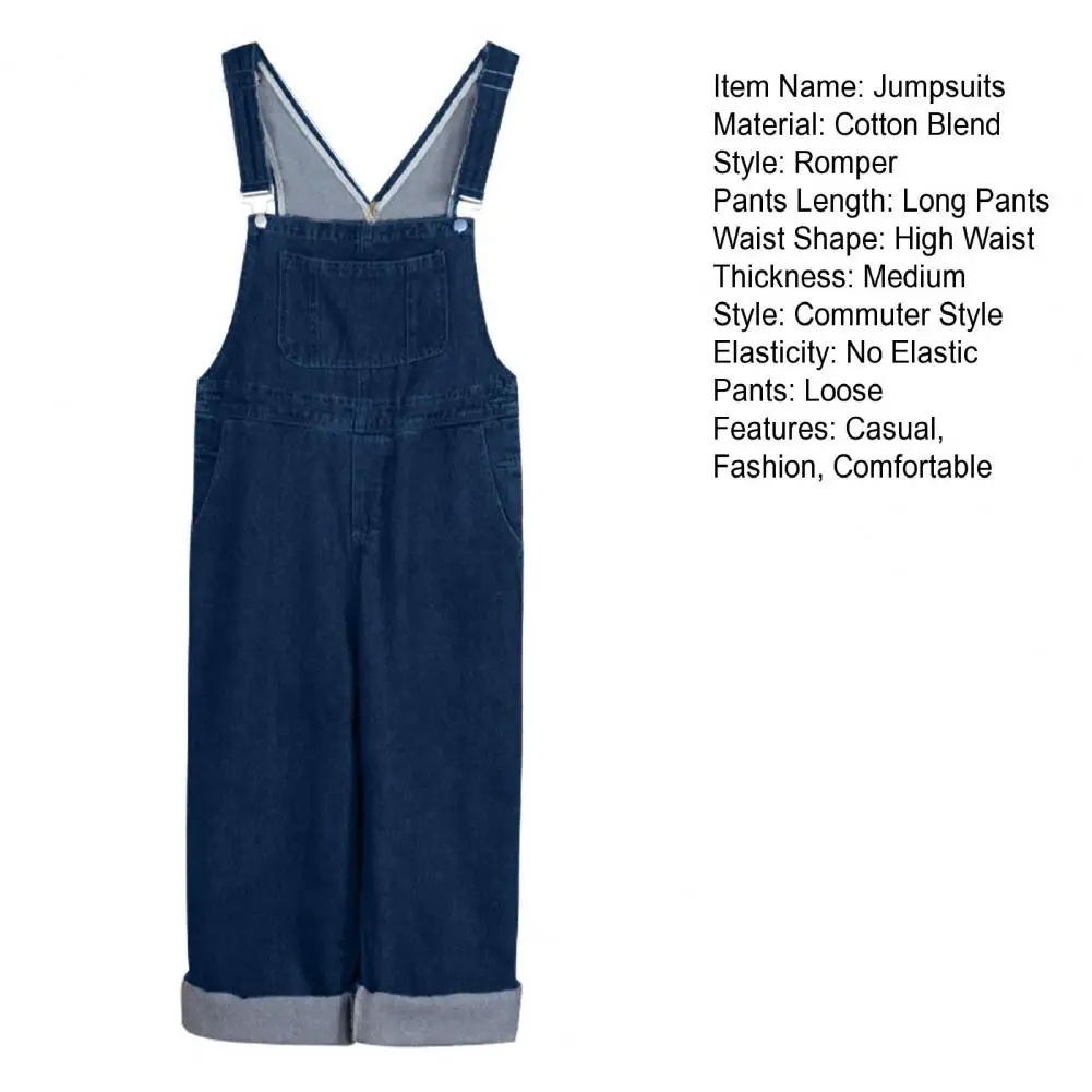 Breathable Cotton Blend Jumpsuit Women’s Wide-leg Denim Bib Overalls with Adjustable Straps Pockets Casual Baggy for Spring
