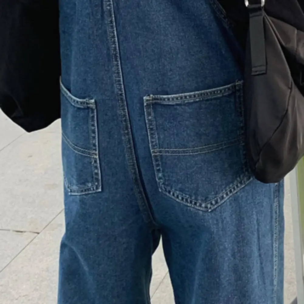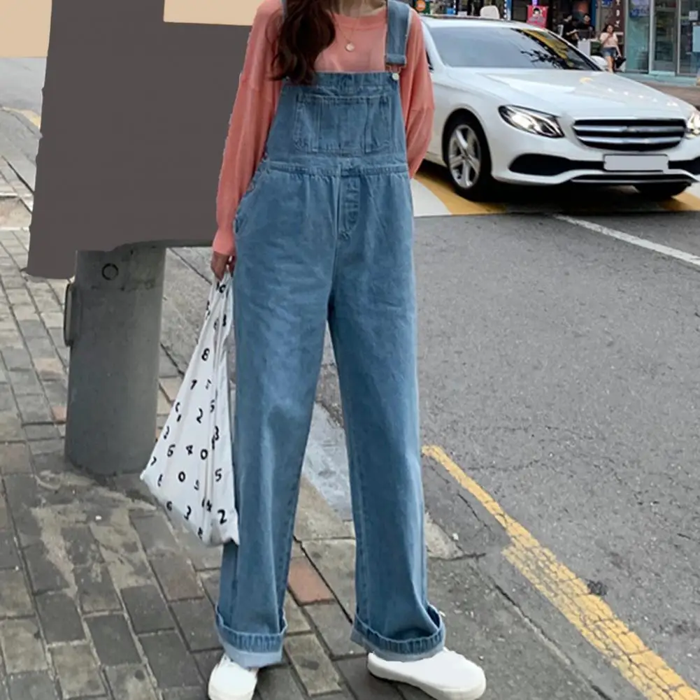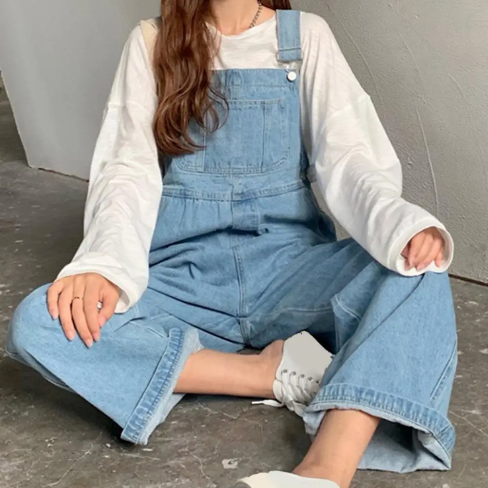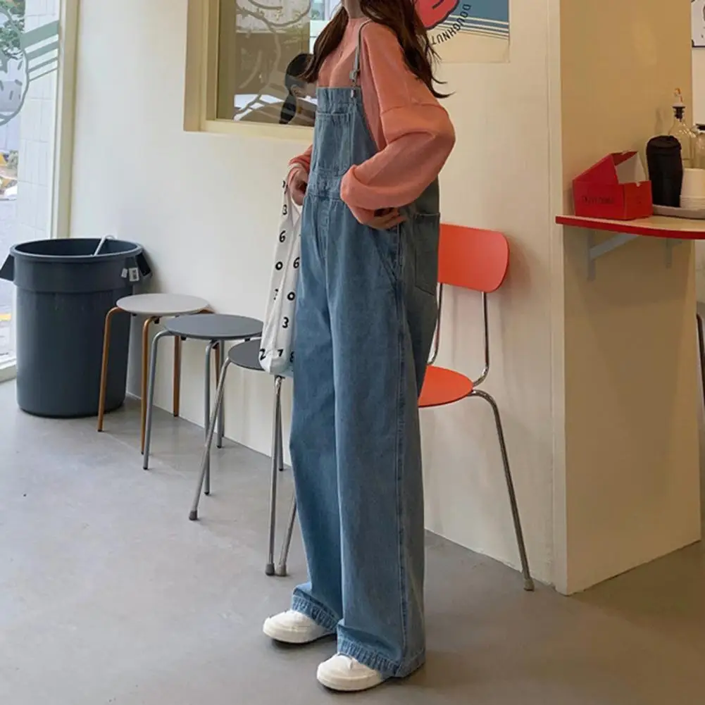 Breathable Cotton Blend Jumpsuit Women’s Wide-leg Denim Bib Overalls with Adjustable Straps Pockets Casual Baggy for Spring