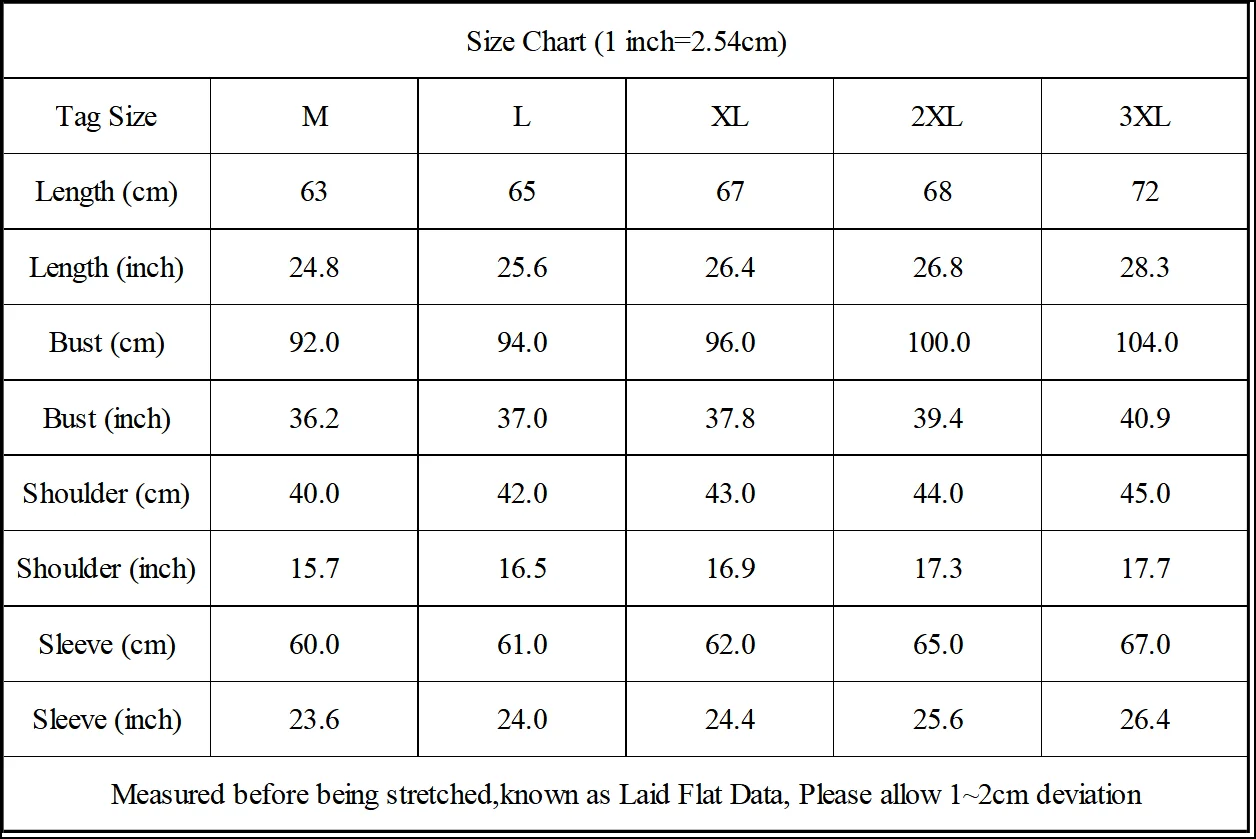 *Tag Size:M-3XL, please make sure that these actual measurements will fit you.