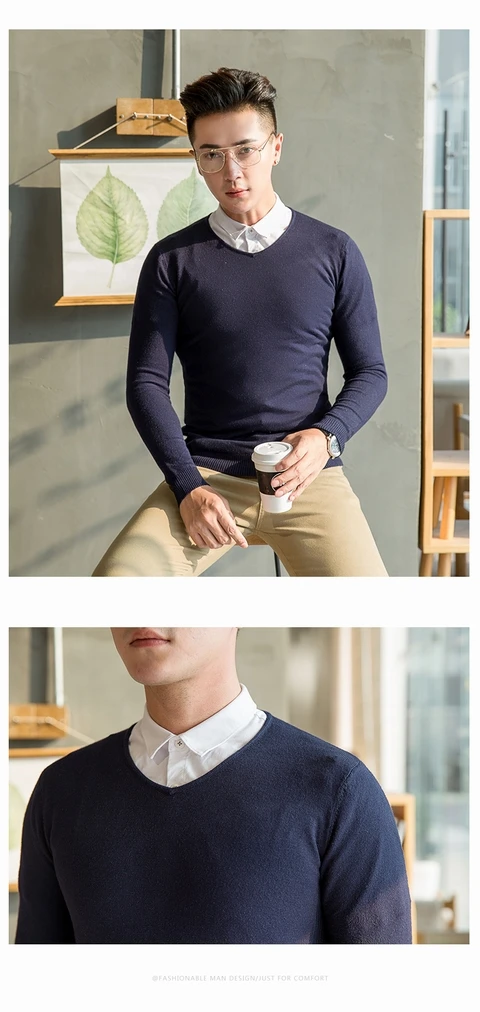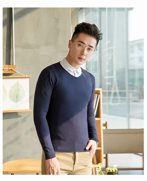 Business Casual Blend Classic V-Neck Pullover Men Sweater 2025 Autumn Winter Work Casual All-match Jumper Male Knitted Sweaters