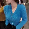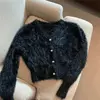 Cardigan Crop Top Elastic Knit Mink Fleece Sweater Women Y2k Top Spring Autumn Loose Cardigans Street Sexy Fluff Slim Cardigan