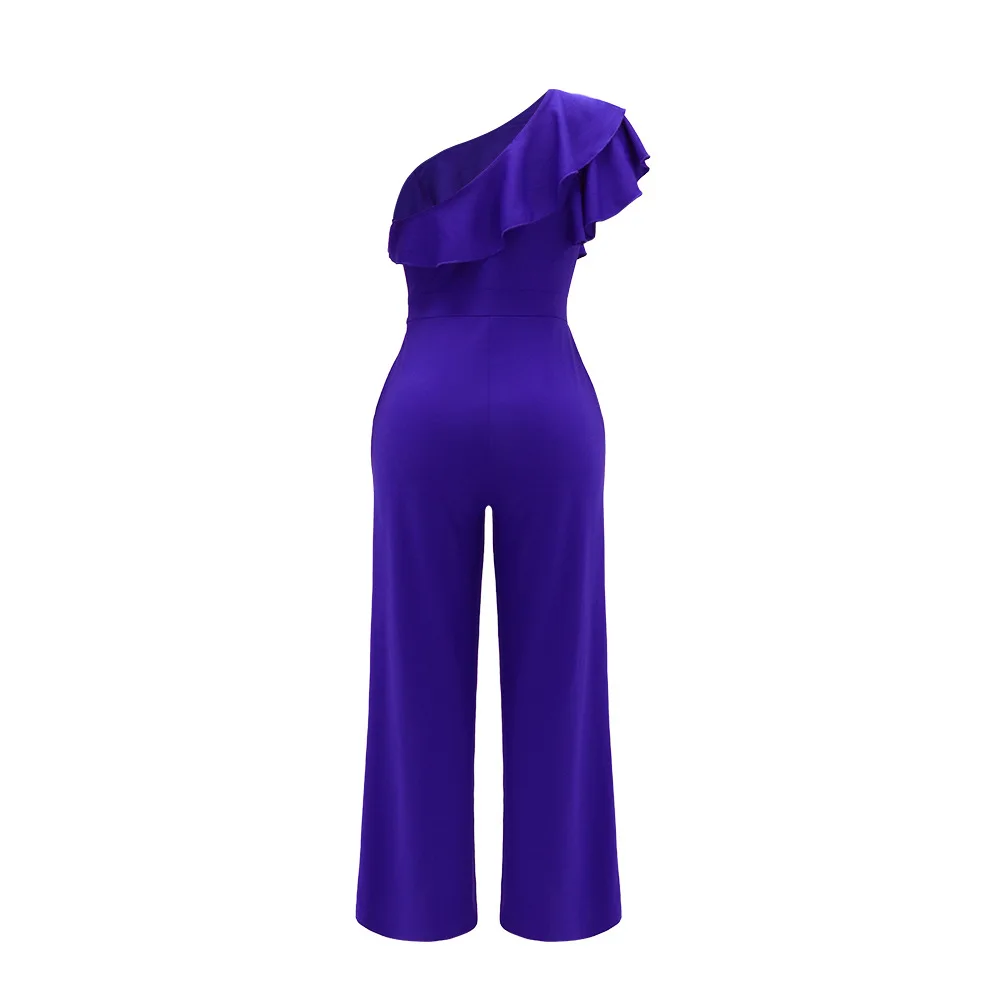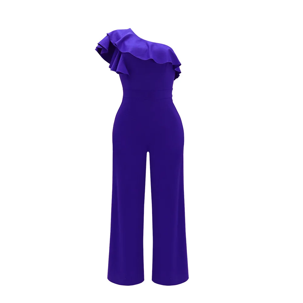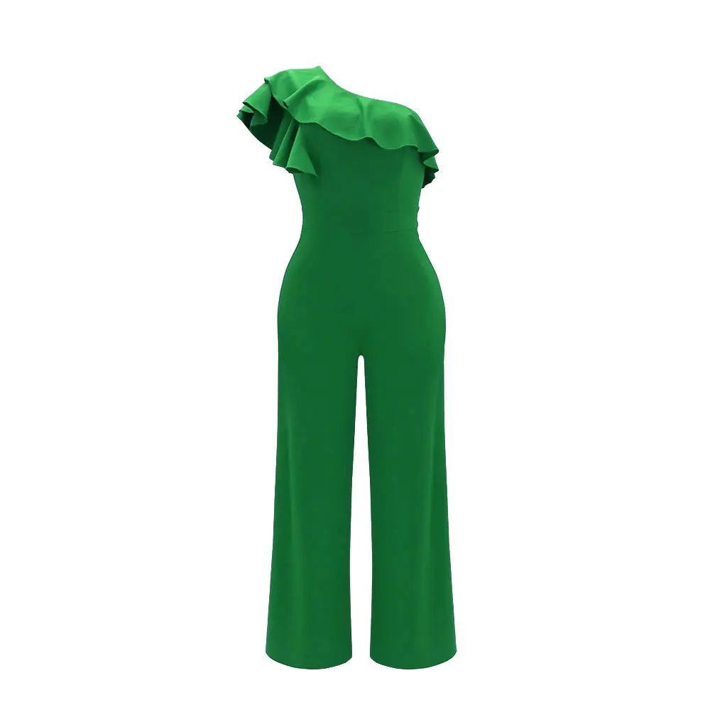 Casual Women’s Solid Color Jumpsuits Summer Oblique Collar Black Ears High Waist Wide-leg Pants Fashionable Summer Jumpsuits