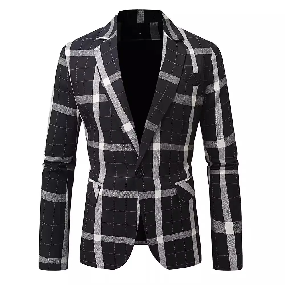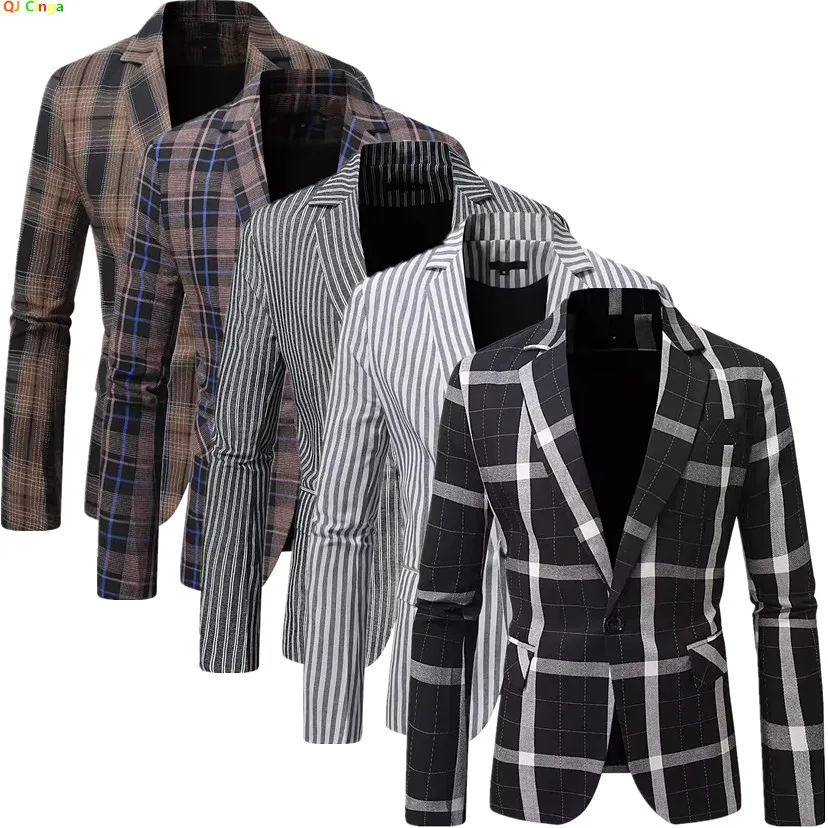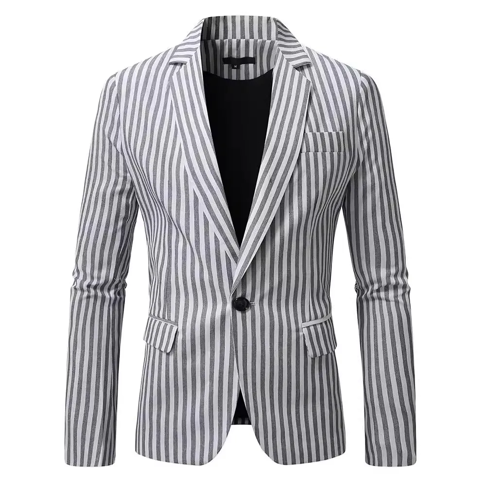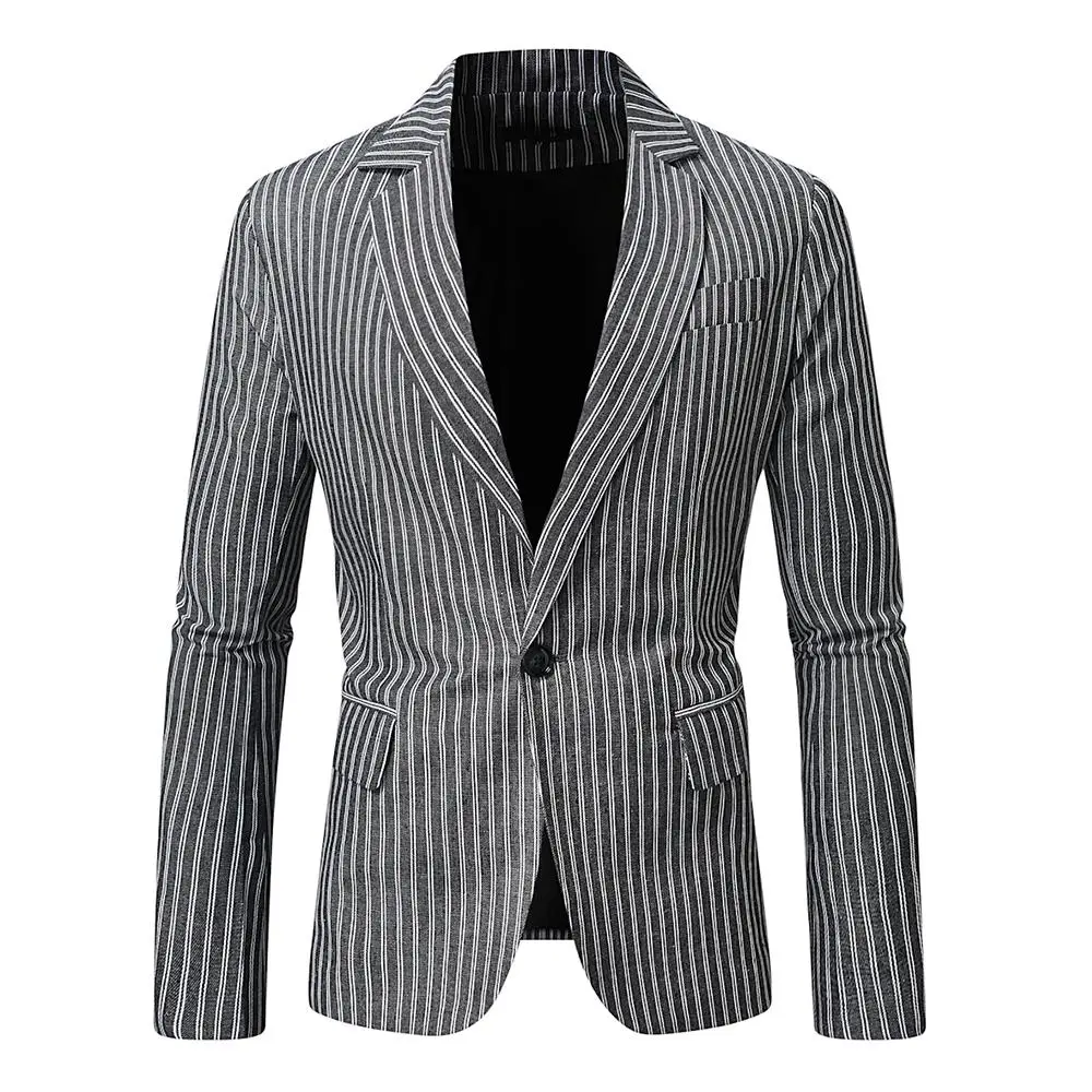 Classic Black Striped Suit Coat with V-Neckline Single-Button Casual Jacket for Men’s Leisure Blazers, Size M-XXL