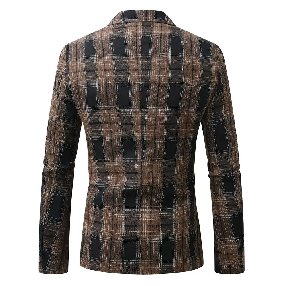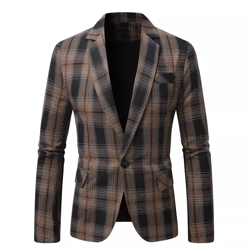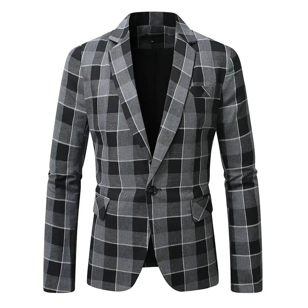 Classic Black Striped Suit Coat with V-Neckline Single-Button Casual Jacket for Men’s Leisure Blazers, Size M-XXL