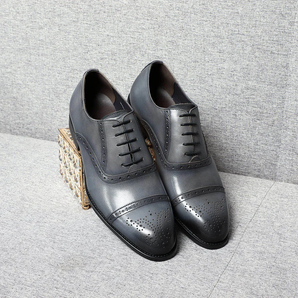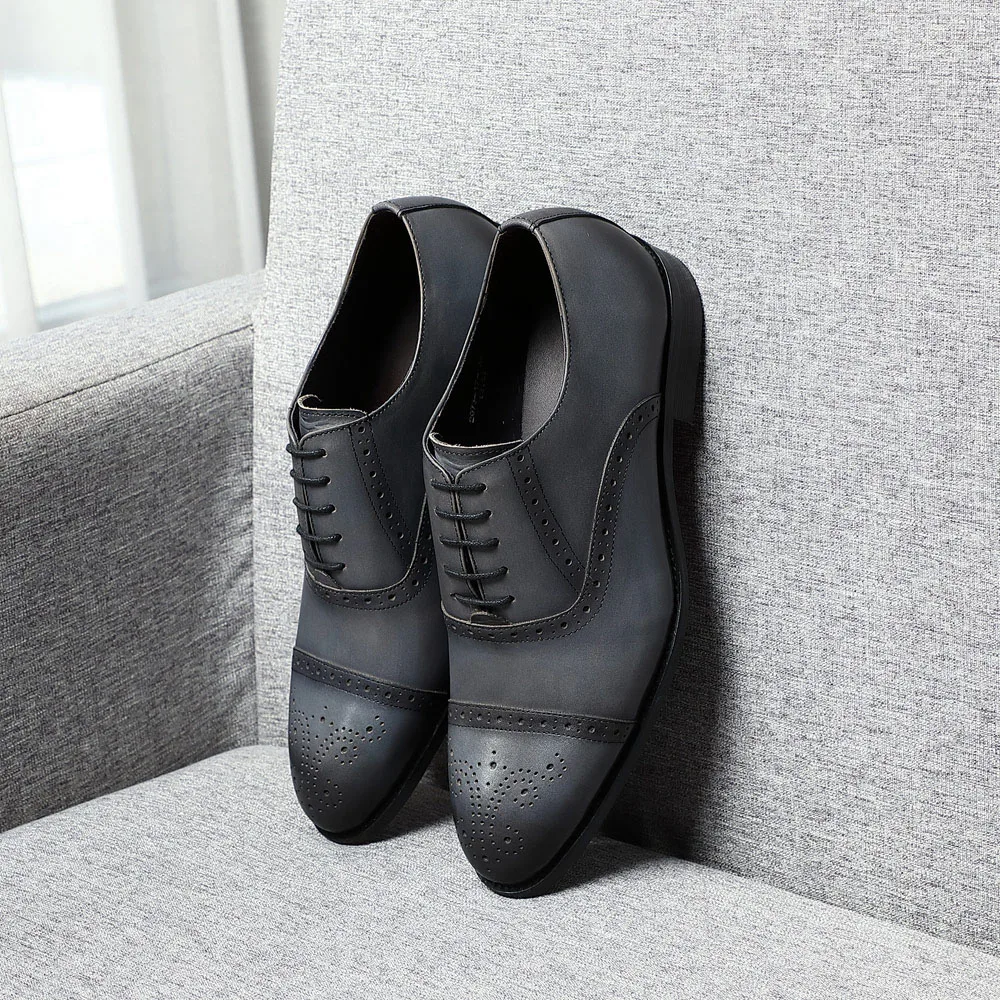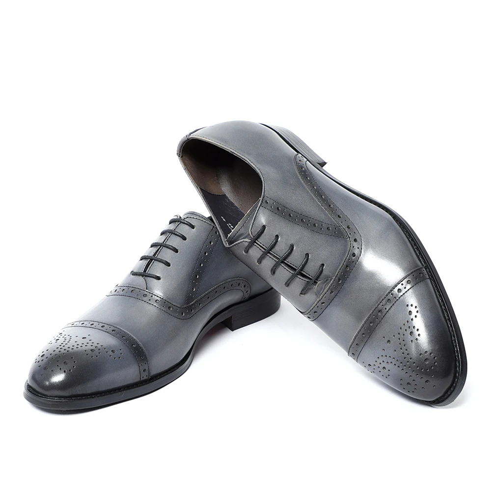 Classic British Style Brogue Carving Gray Oxfords Elegant Man Formal Shoes Natural Genuine Leather Business Party Social Shoes