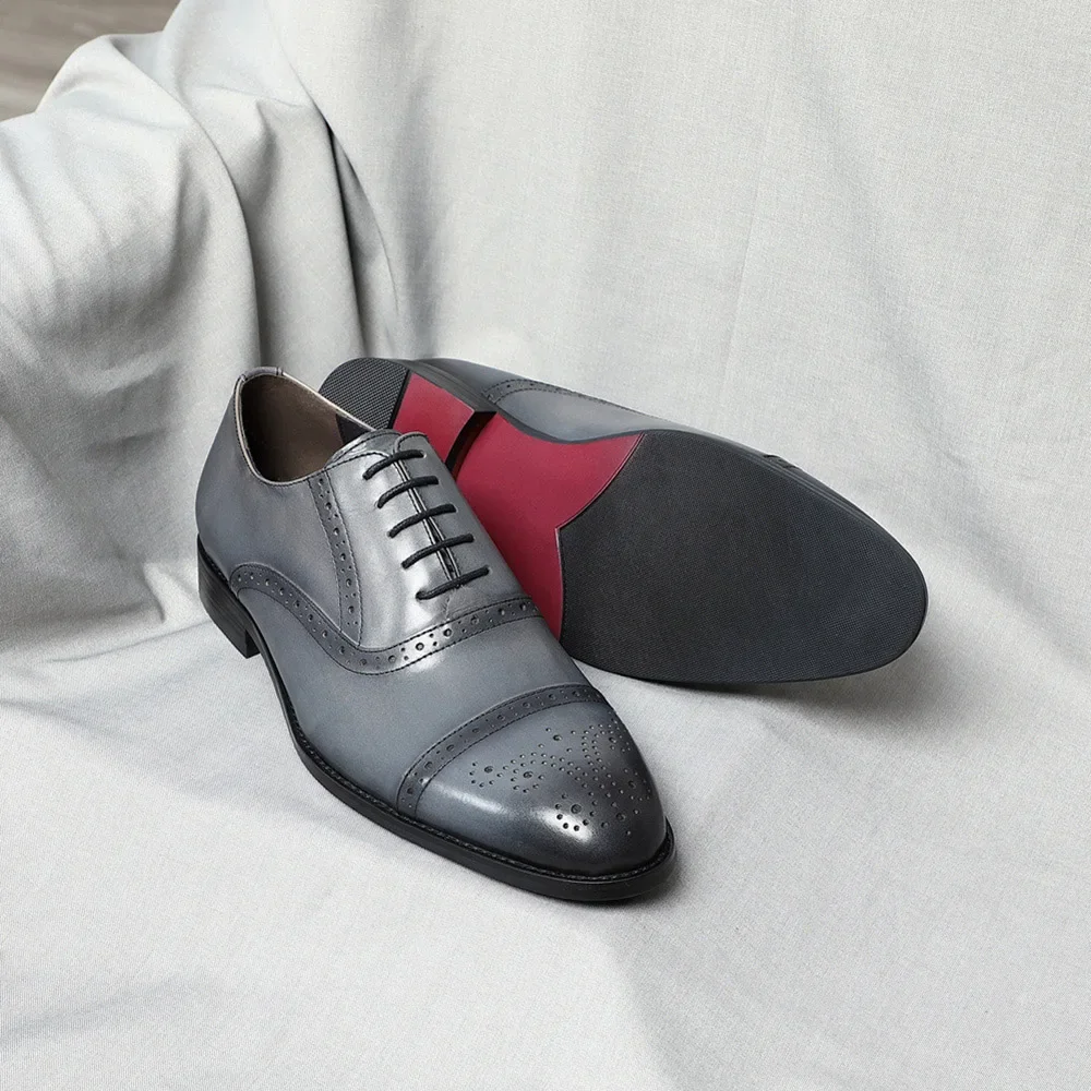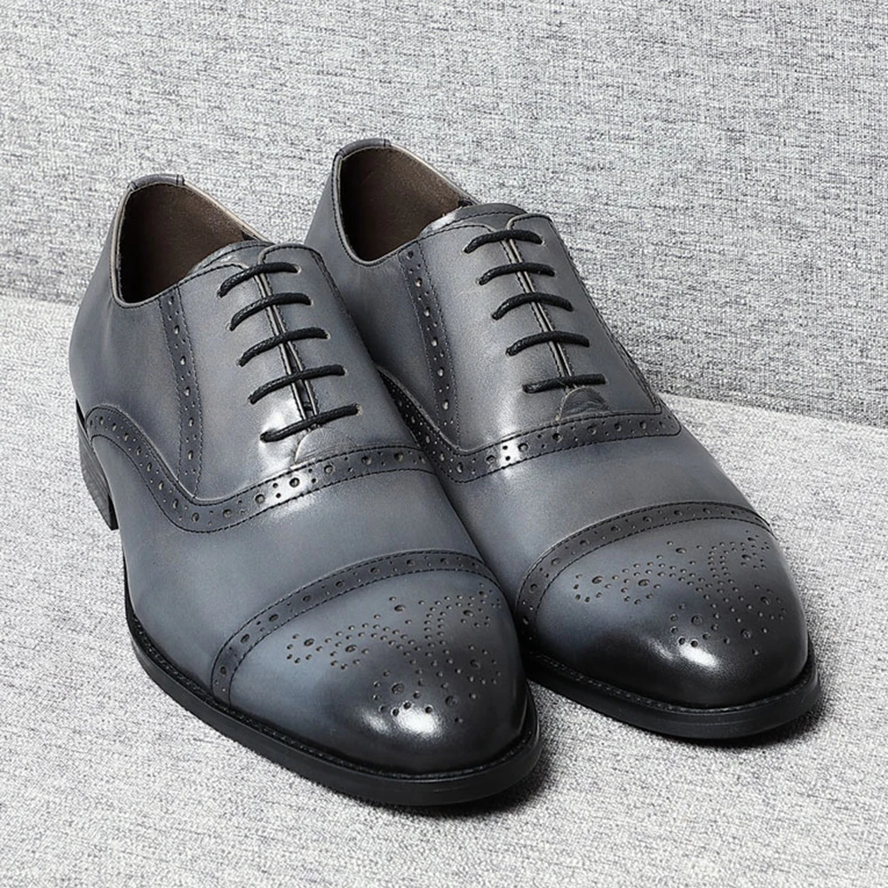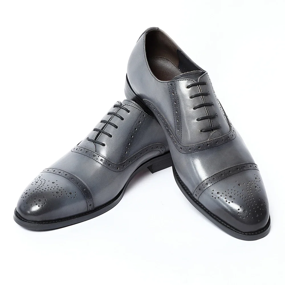 Classic British Style Brogue Carving Gray Oxfords Elegant Man Formal Shoes Natural Genuine Leather Business Party Social Shoes