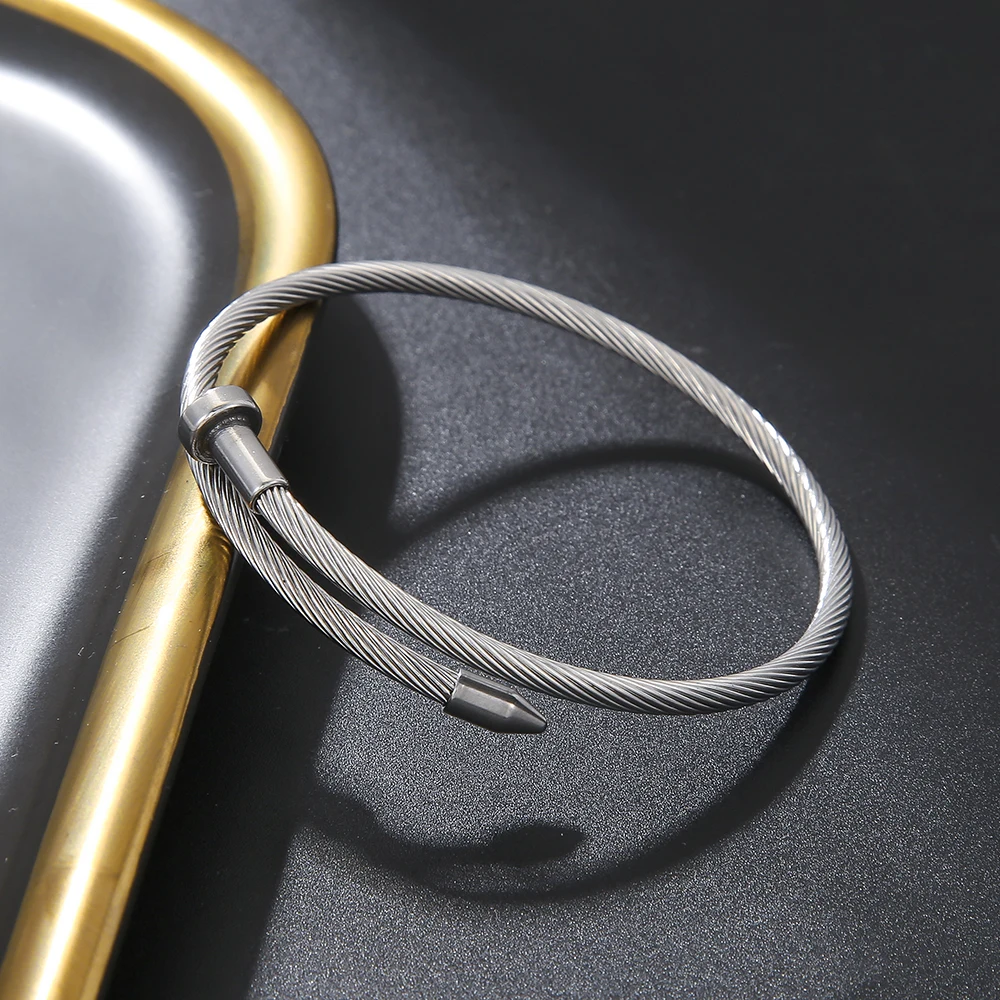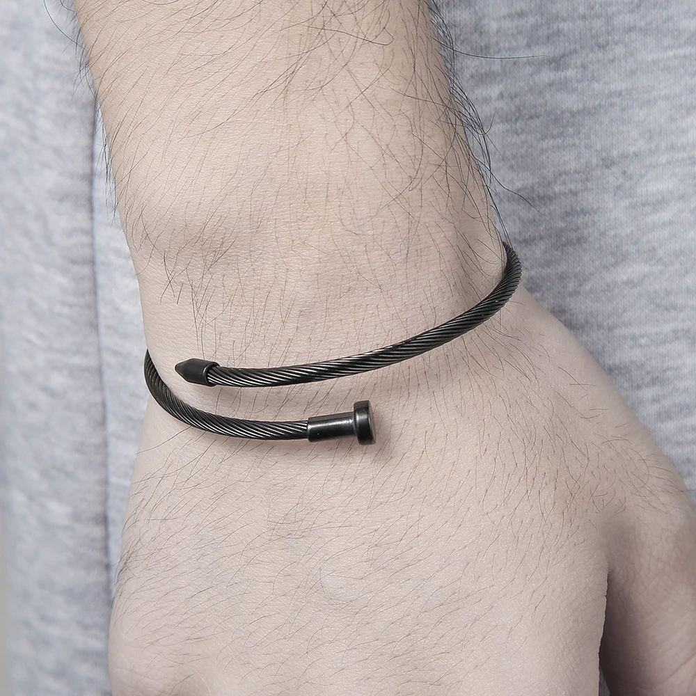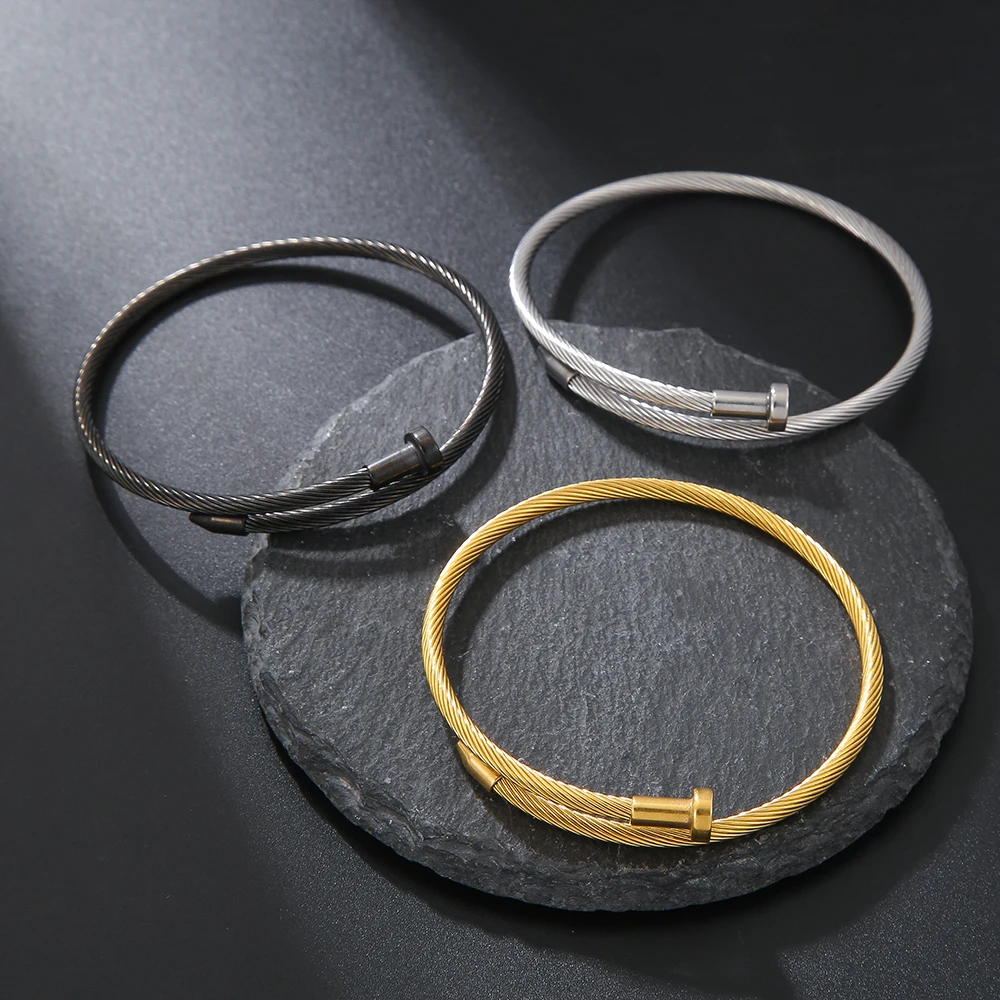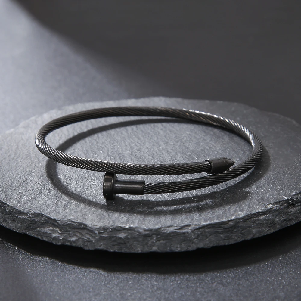 Clssic Stainless Steel Nail Bangle Bracelet for Men Women Punk Style Metal Geometric Rivet Charms Bangle Wrist Jewelry