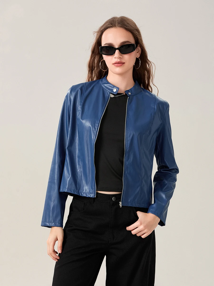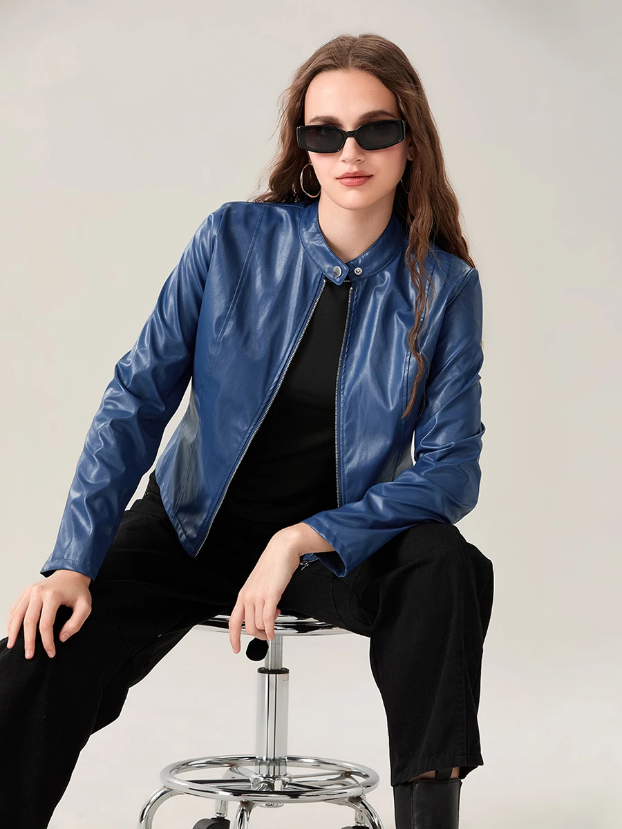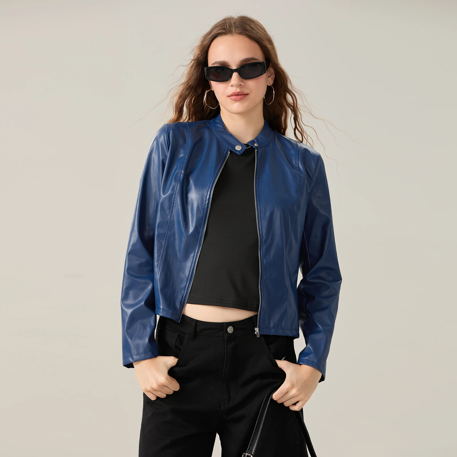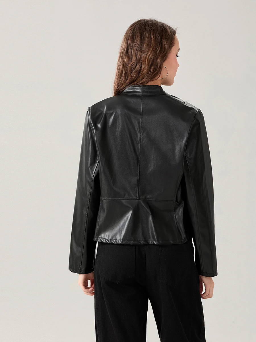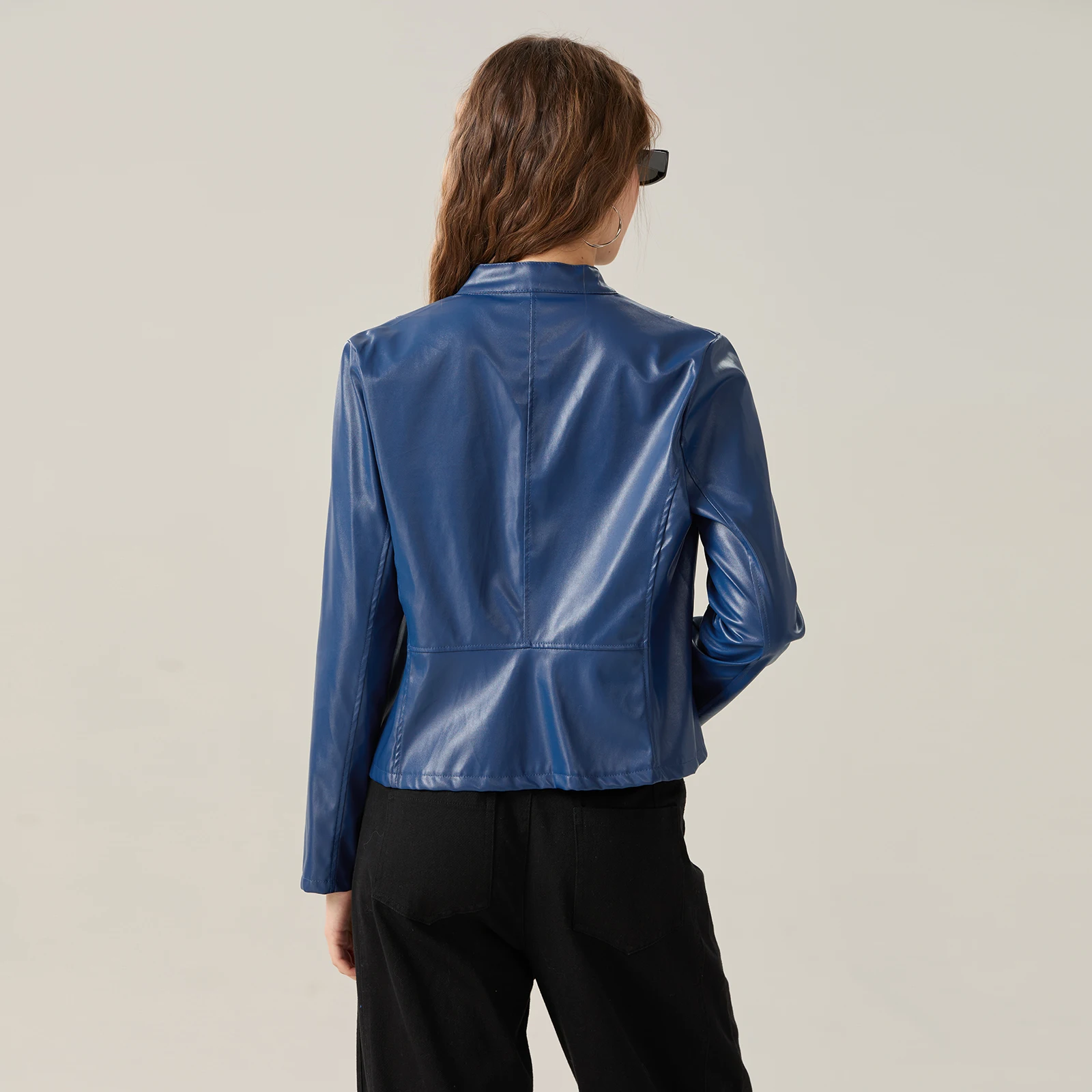 Women’s Faux Leather Jacket, Slim Moto Biker Jacket Outerwear, Long Sleeve Zipper Short Jacket