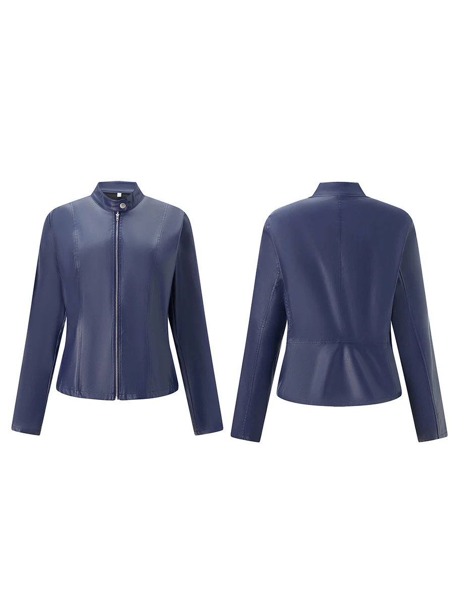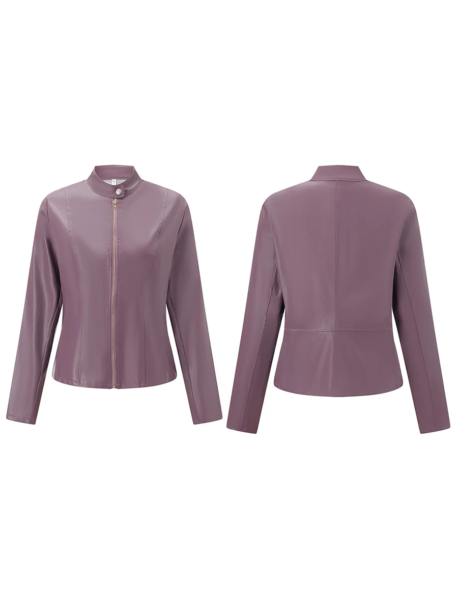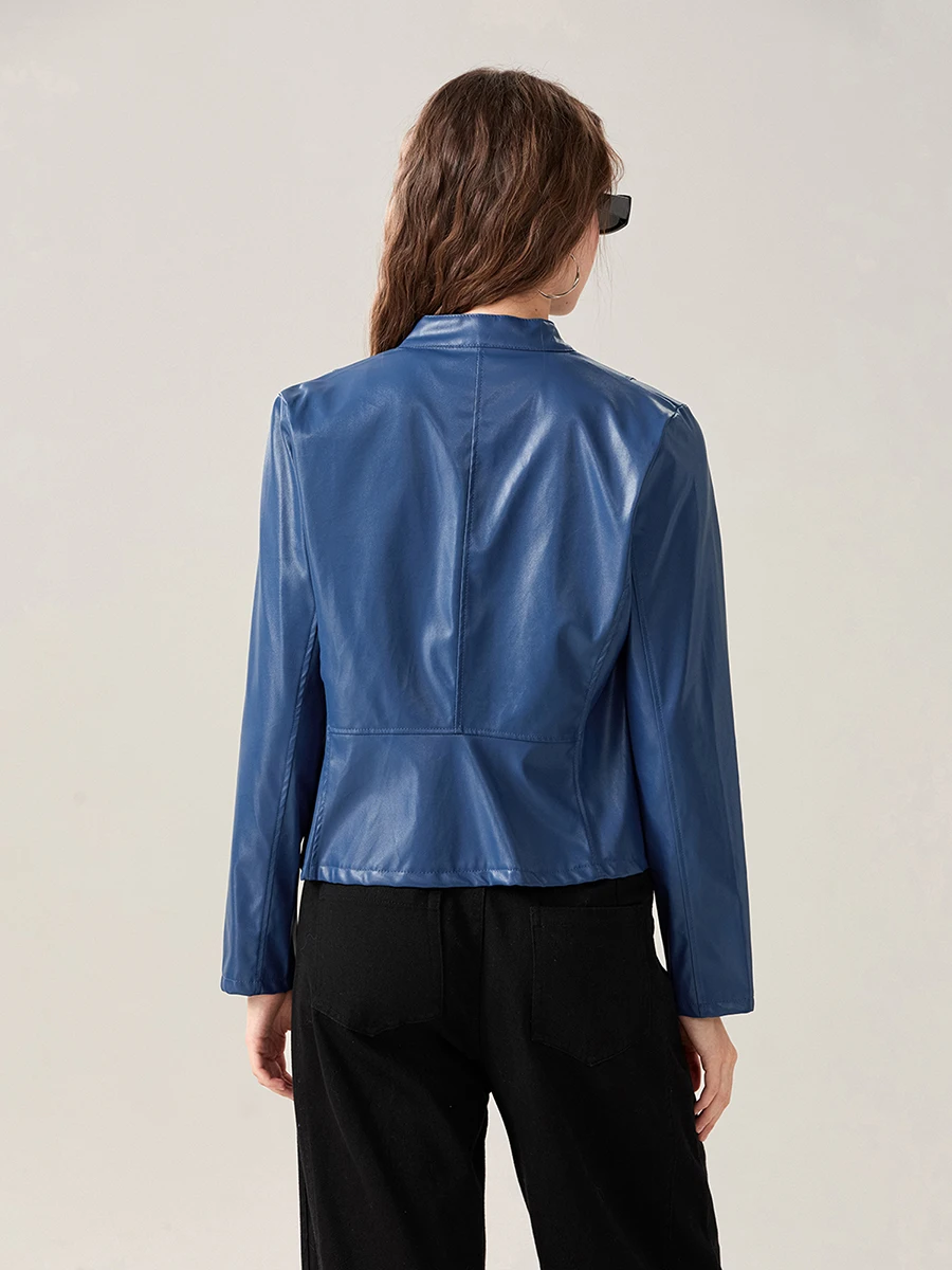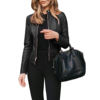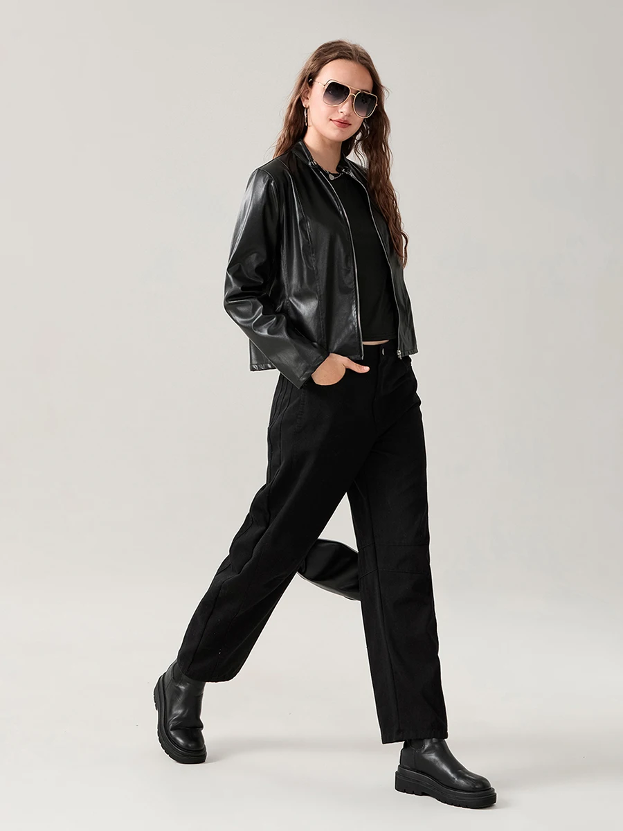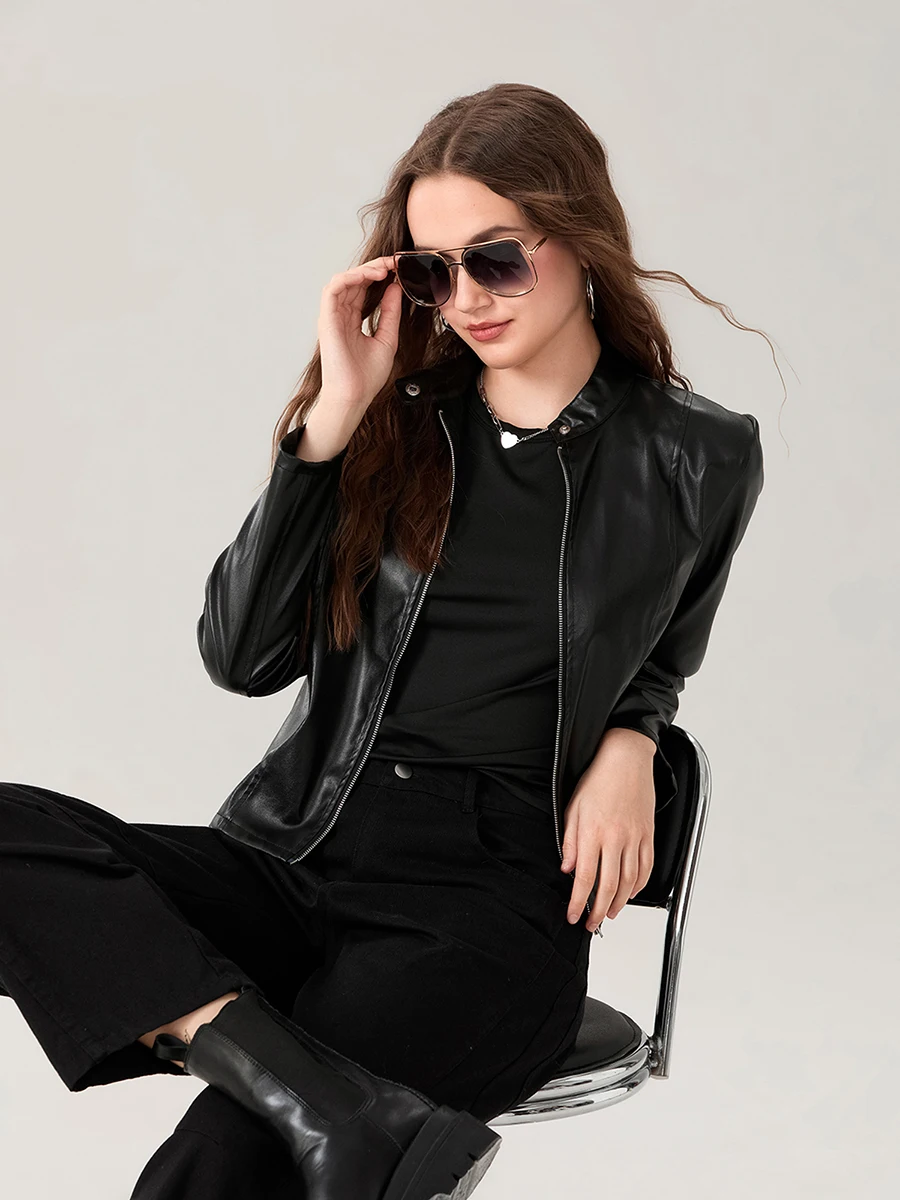 Women’s Faux Leather Jacket, Slim Moto Biker Jacket Outerwear, Long Sleeve Zipper Short Jacket