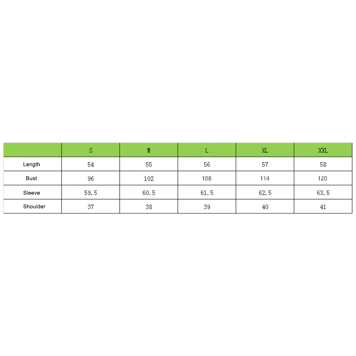 XXL Length: 22.83 Bust: 47.24 Sleeve: 25.00 Shoulder: 16.14