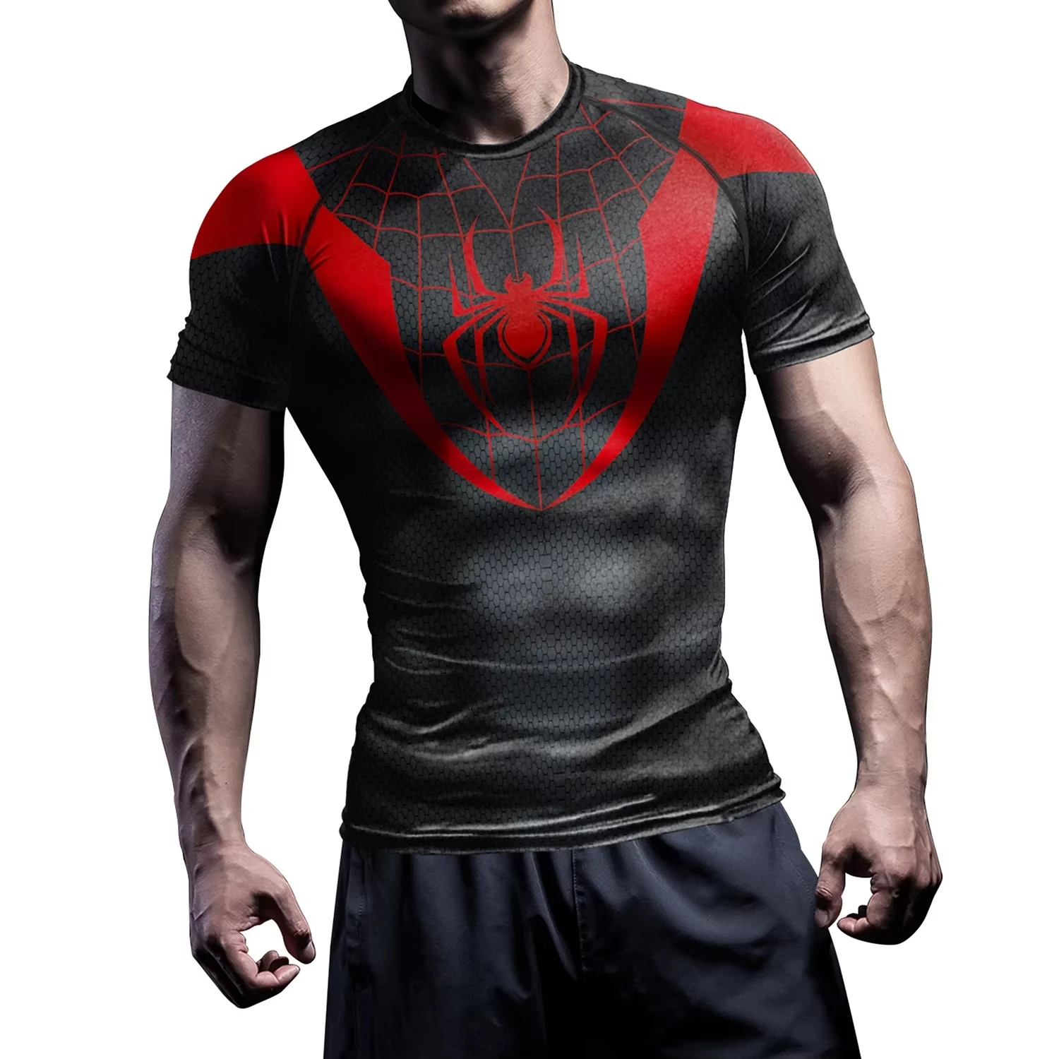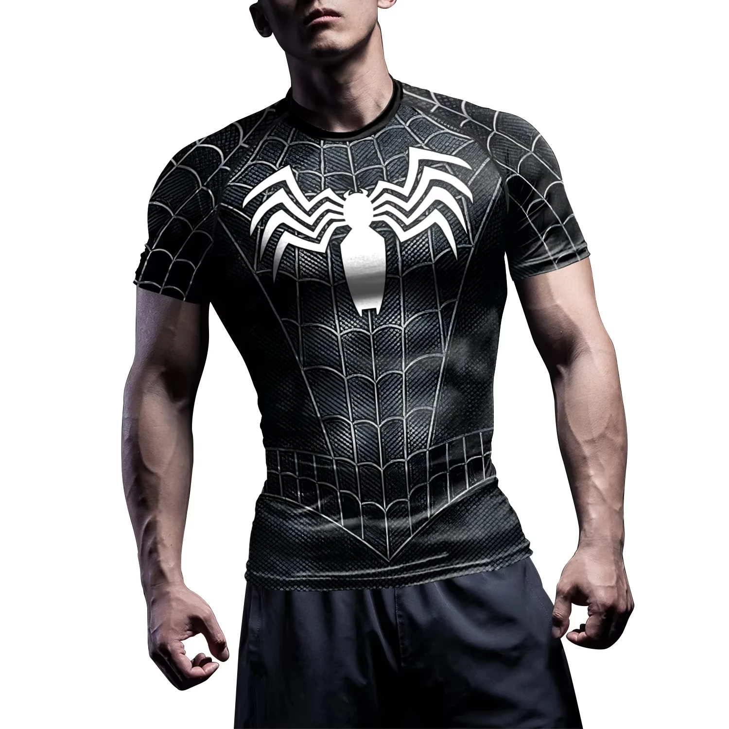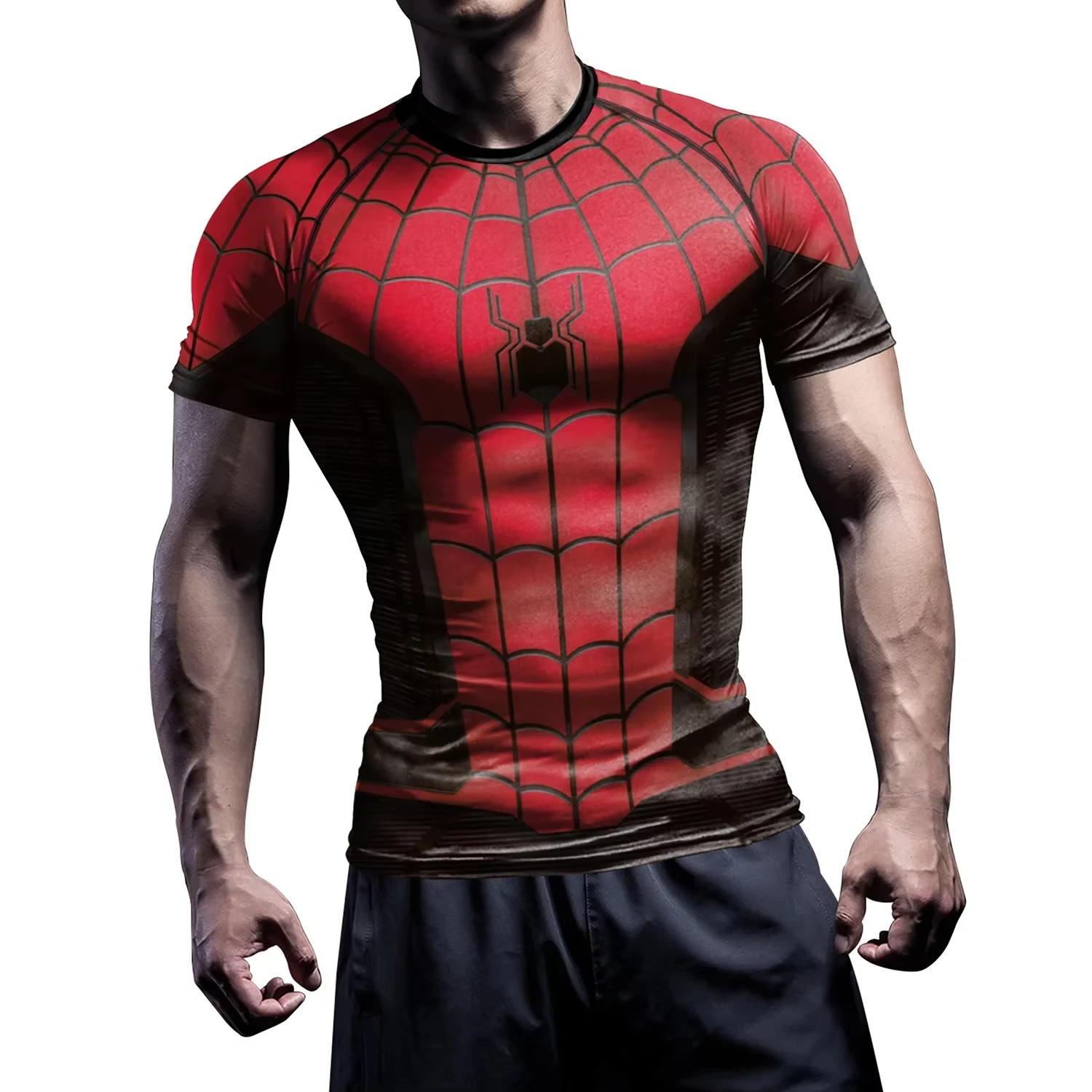 Compression Shirts for Men Short Sleeve Comics Spider Cosplay T-Shirt Superhero Top Elastic Fitness Sportwear Halloween Clothes
