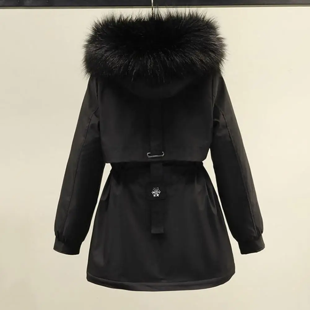 Elevate your winter wardrobe with this versatile women’s hooded cotton jacket. Crafted with a solid color design, this jacket exudes simplicity and style. The large pockets and zipper closure add functionality, while the fur collar decoration brings a touch of elegance.