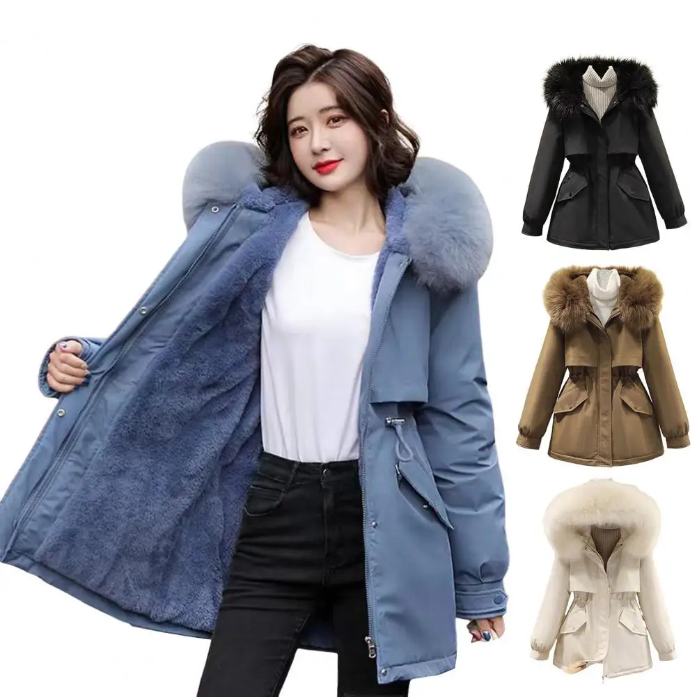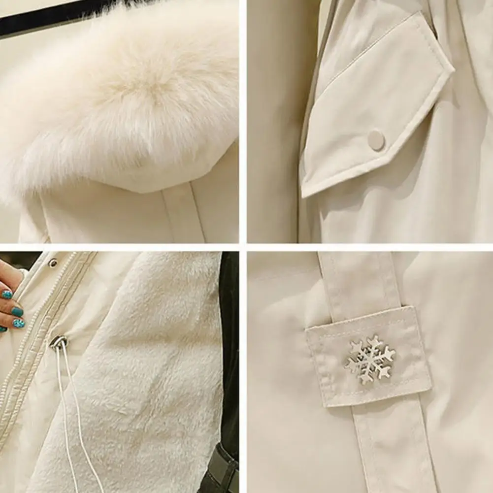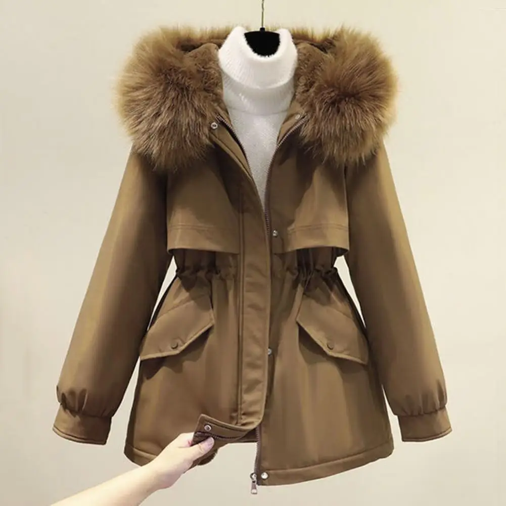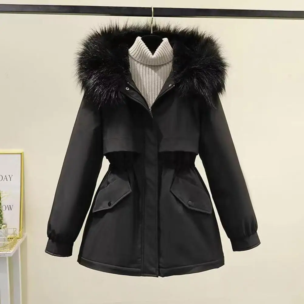 Functional Design: Stay cozy and stylish with this women’s jacket featuring a solid color scheme, spacious pockets, convenient zipper closure, hooded silhouette, and a fur collar embellishment for added flair.
