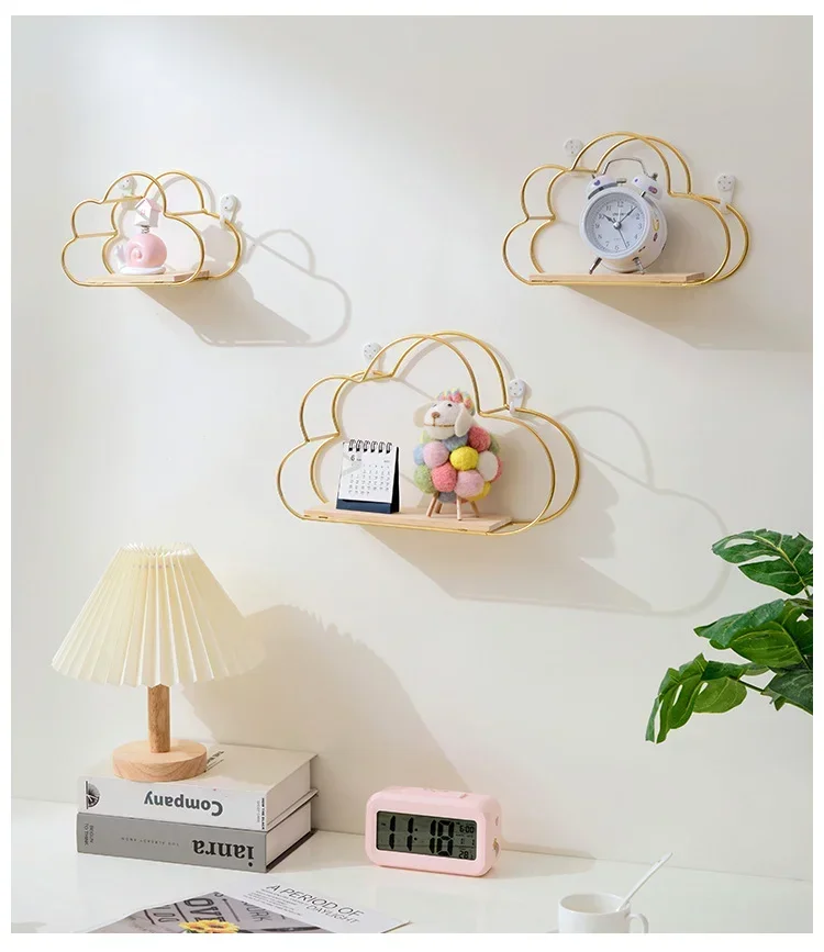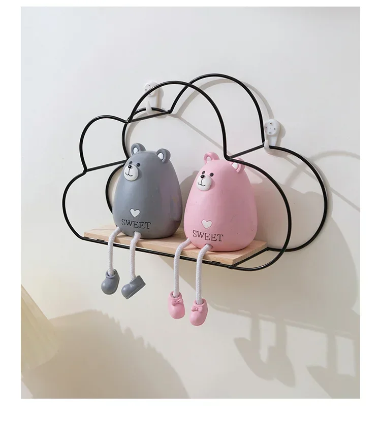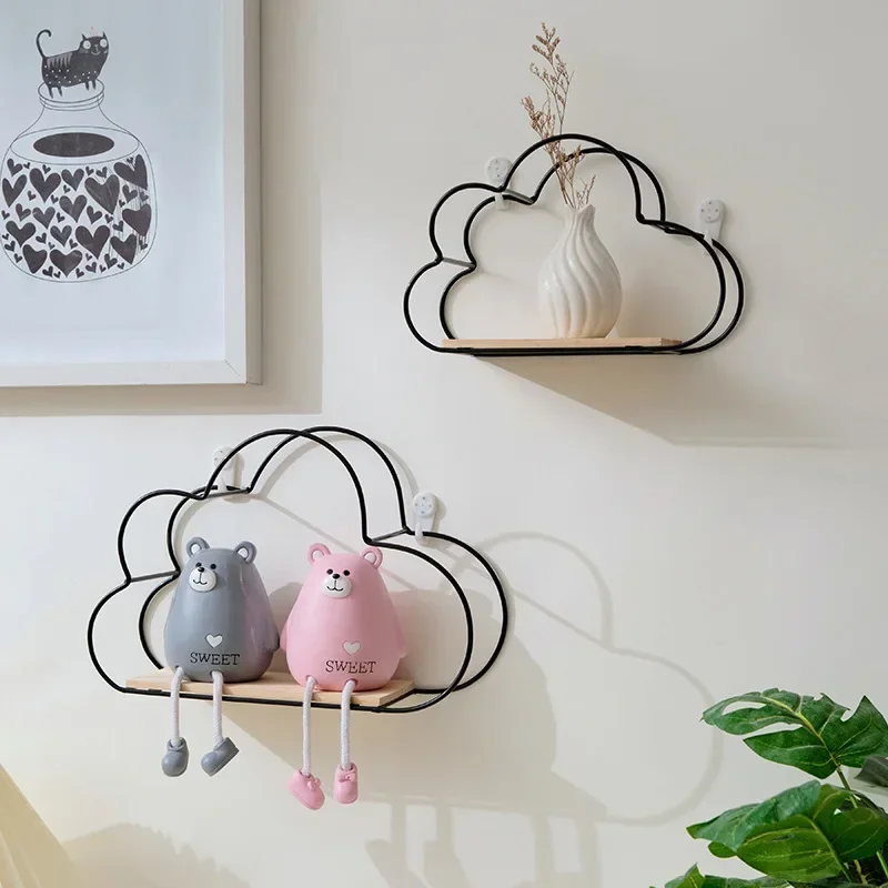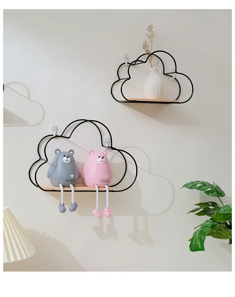 Creative Cloud Iron Shelving Wall Shelf Wooden Clapboard Nordic Style Decoration Children Room Decoration Display Stand