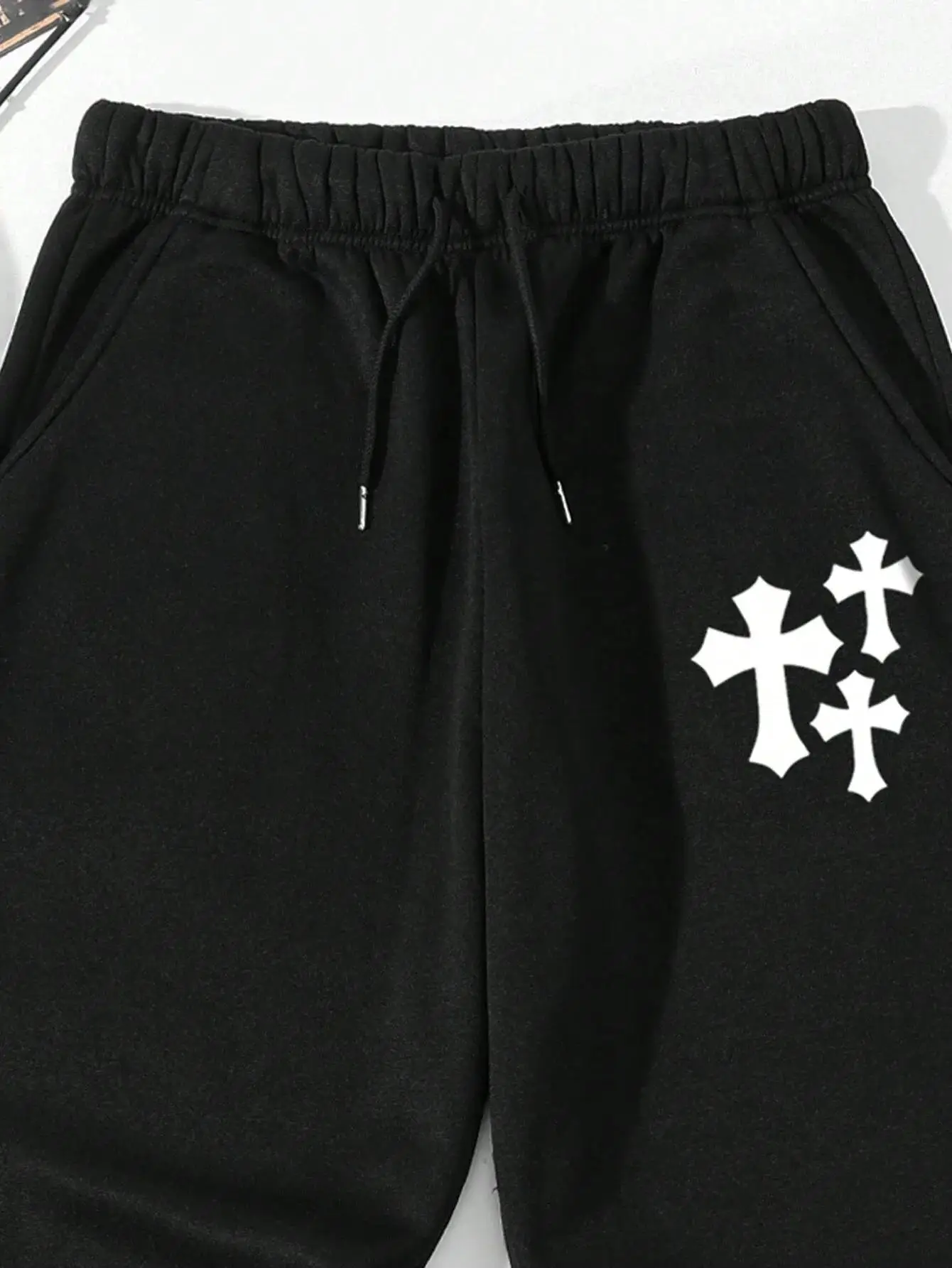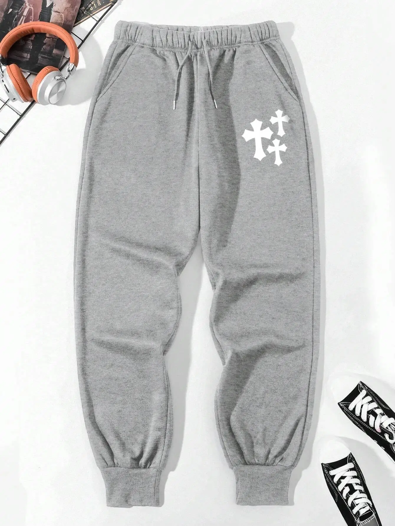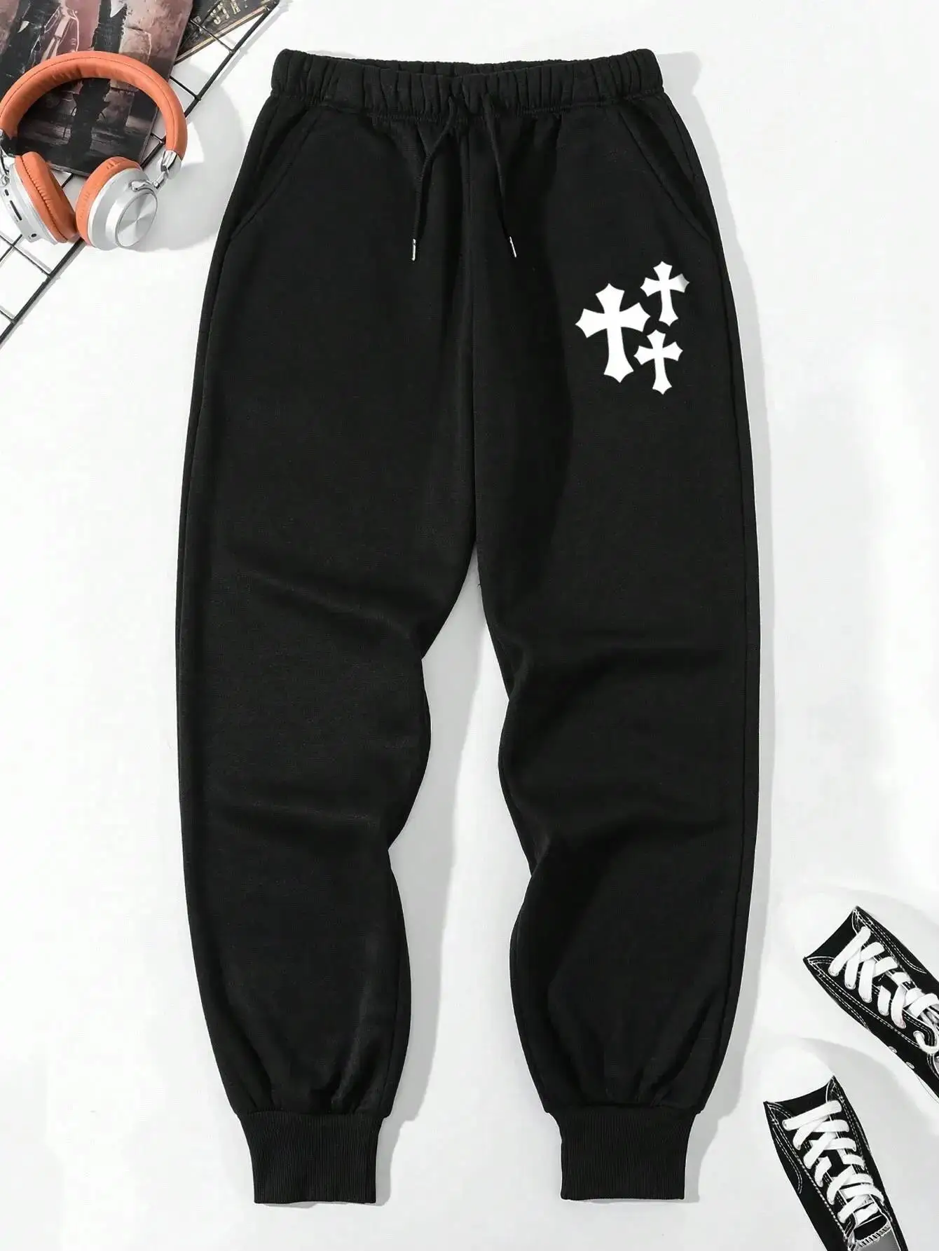 Cross print casual basic men’s and women’s pants baggy fashionable with drawstring pocket sweatpants for women men
