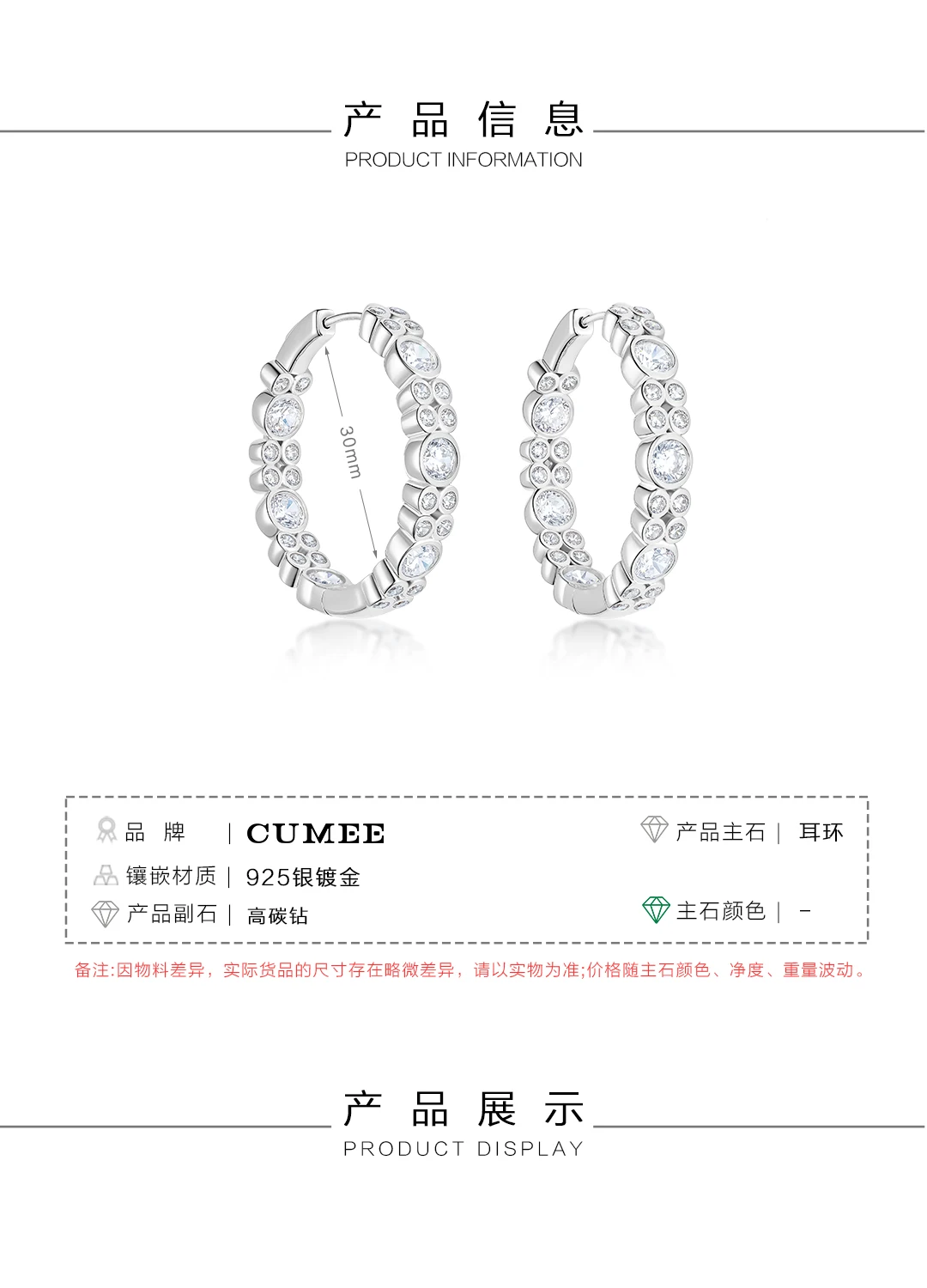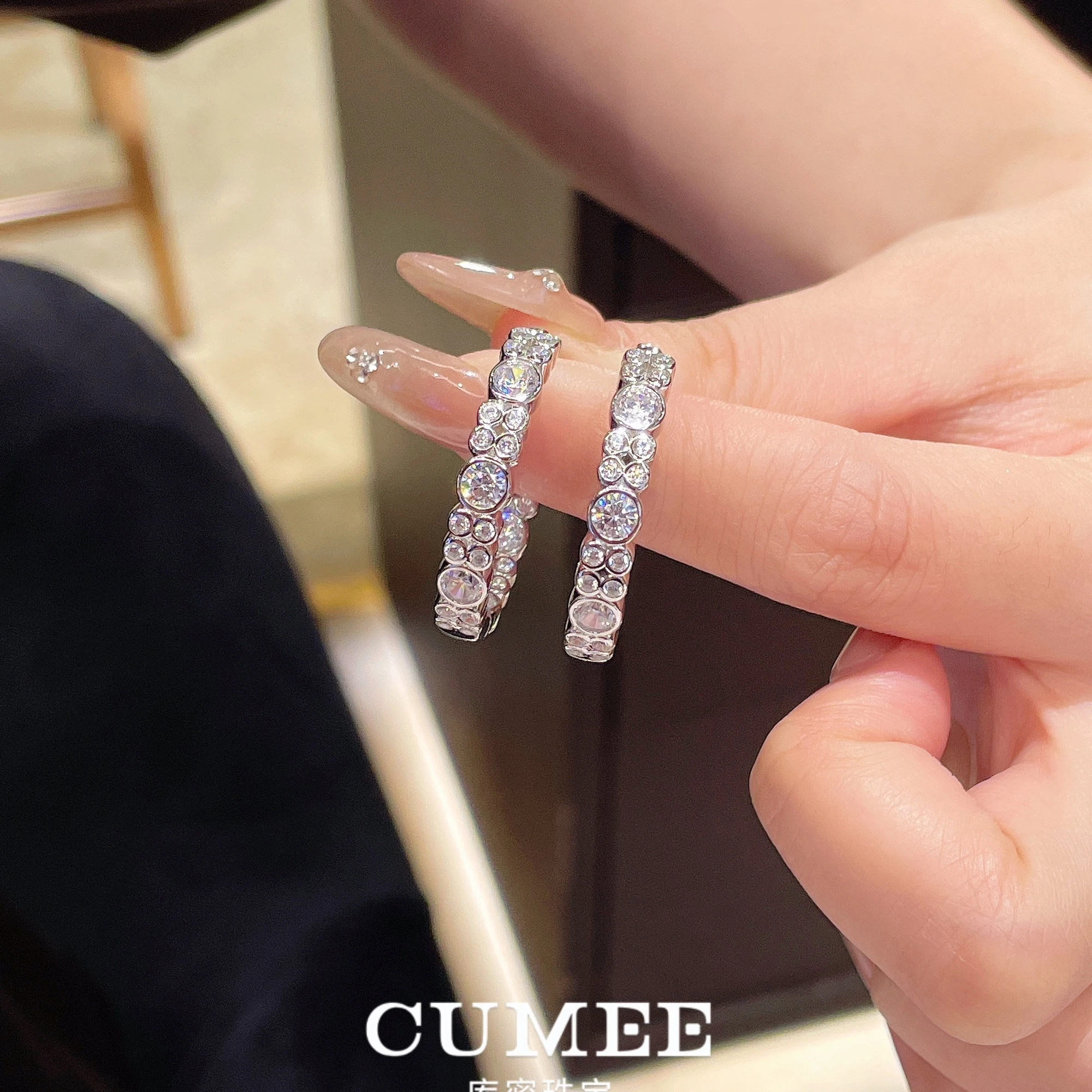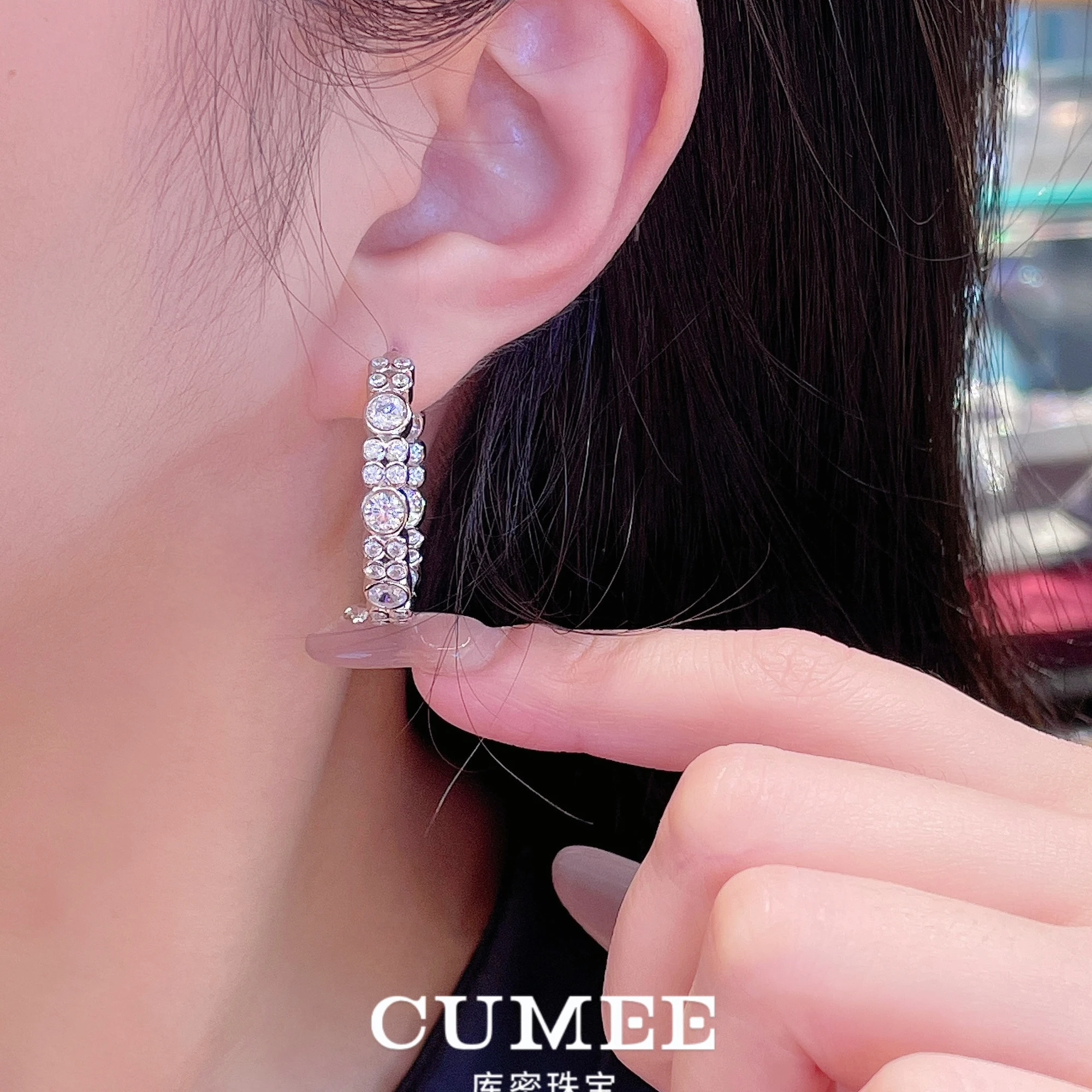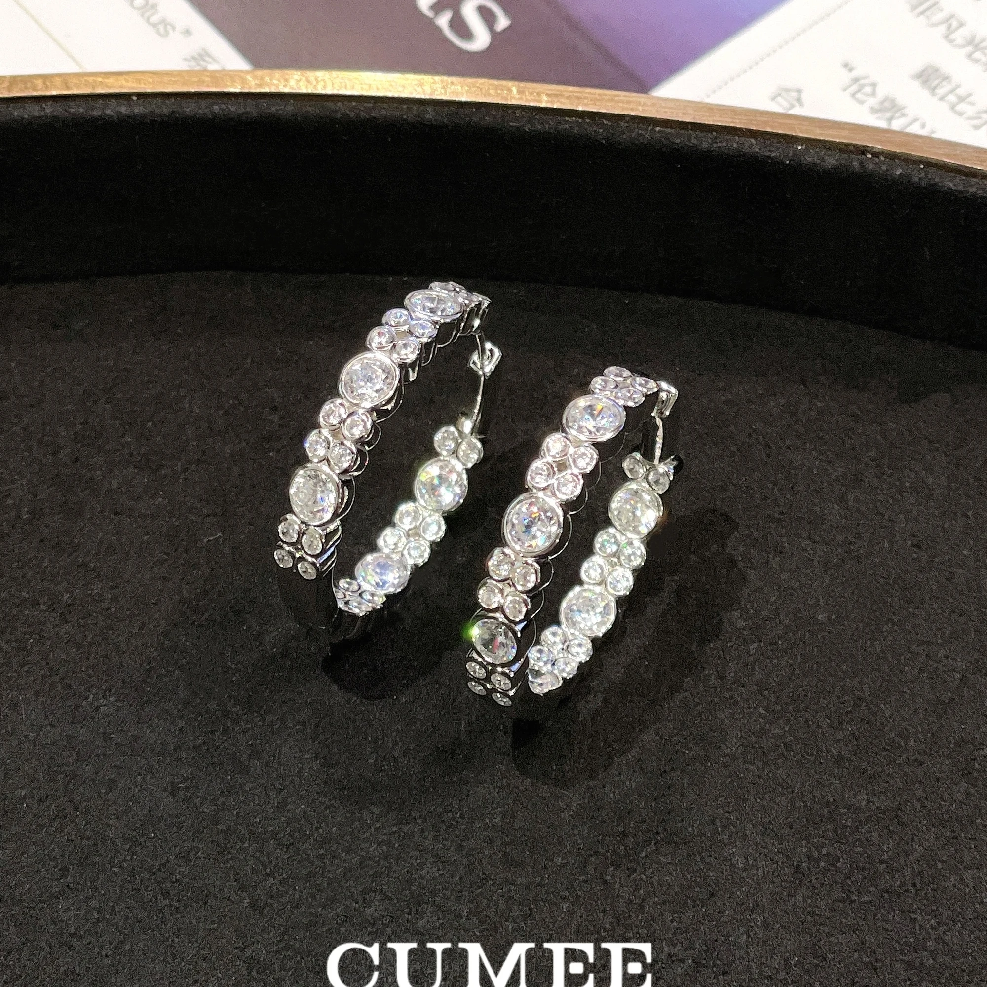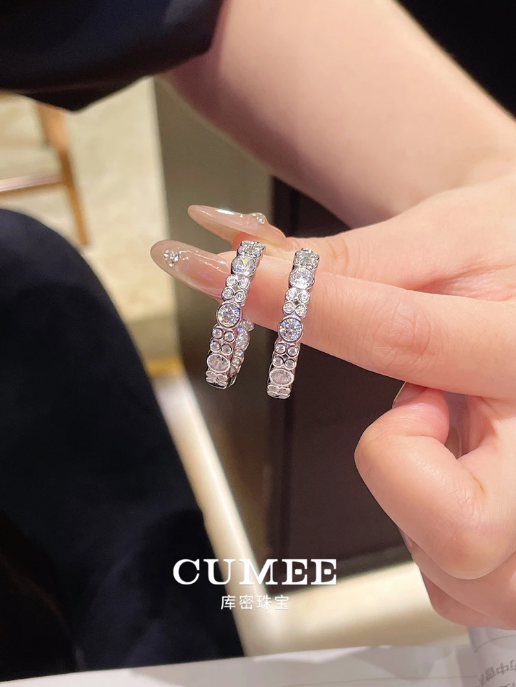 CUMEE Fashion Personalized D-color Artificial Synthetic High Carbon Diamond Earrings for Women. 925 Silver-plated Gold