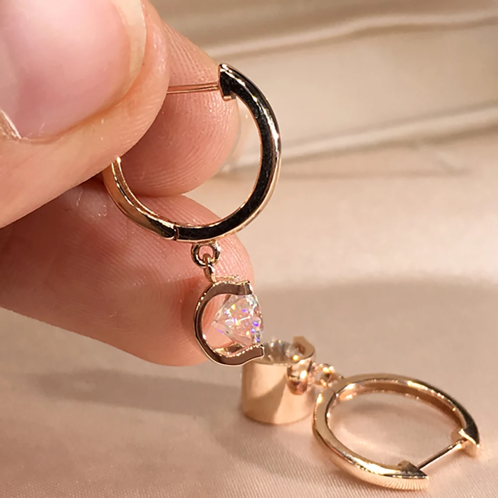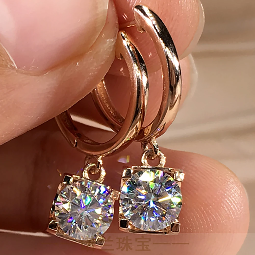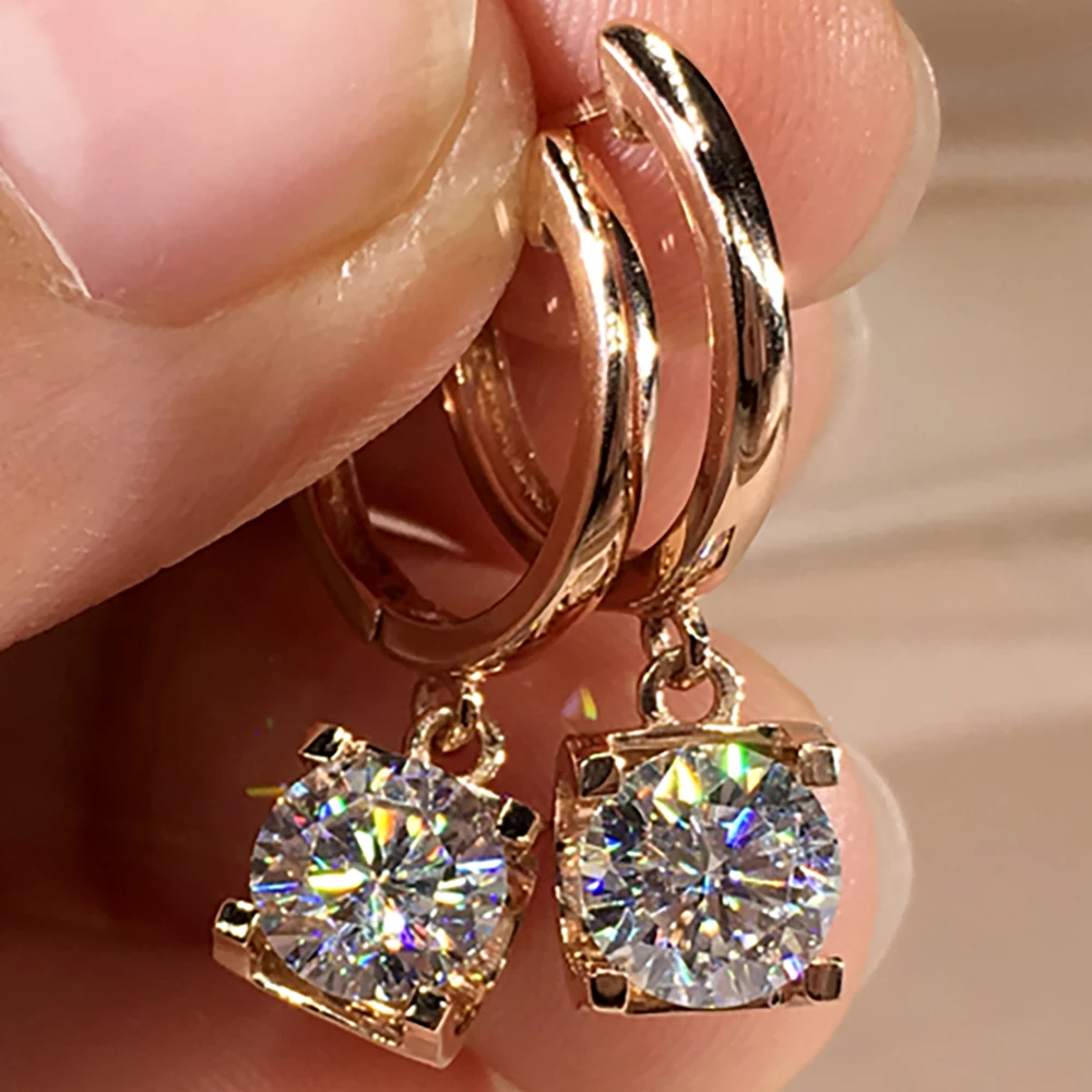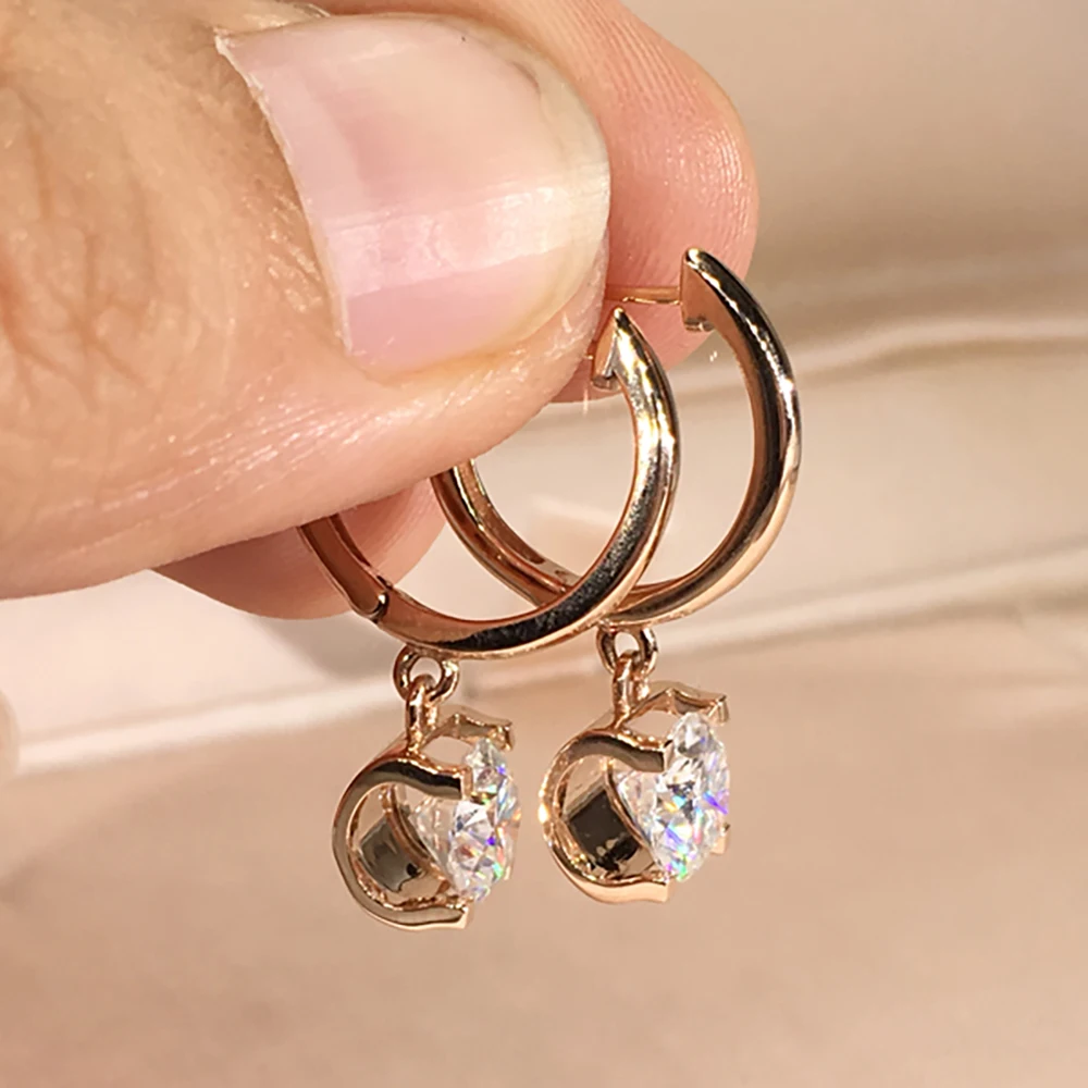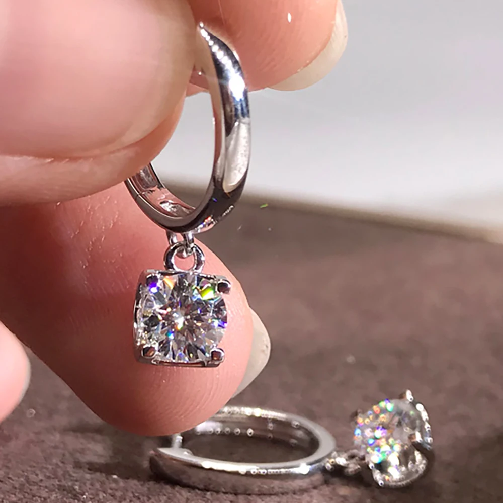 Custom Real 14K Solid Gold Women Hoop Earrings 0.5 1 2 3 4 5 Carat Round Moissanite Diamond Drop Clip Earrings Tassels