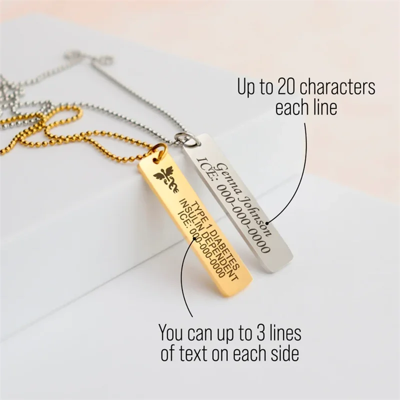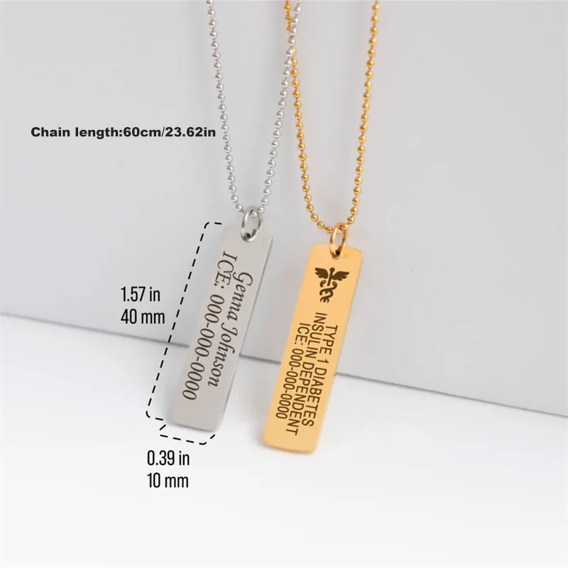 Customized Stainless Steel Laser Engraved Medical Alert Necklace for Men And Women Personalized Health Warning Jewelry