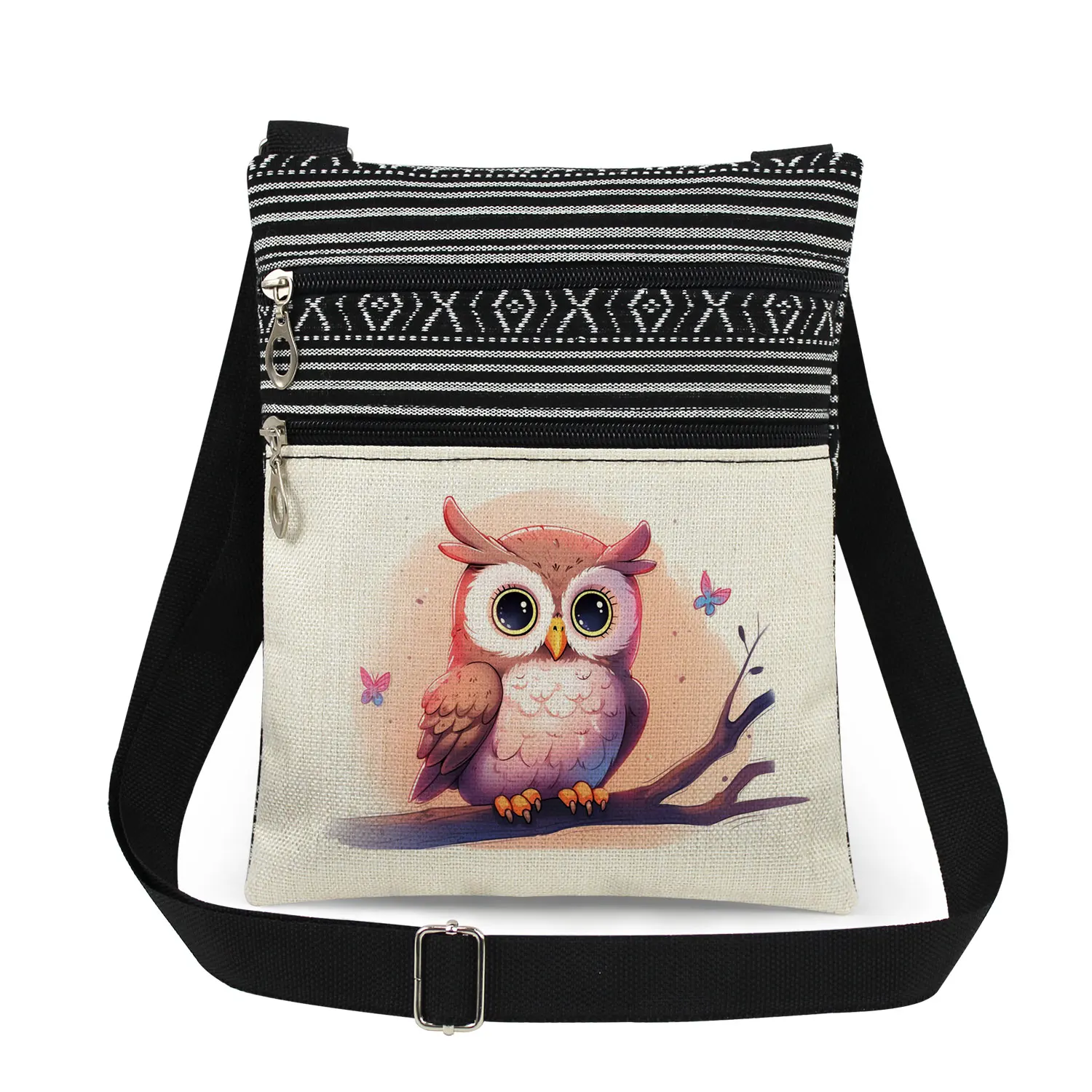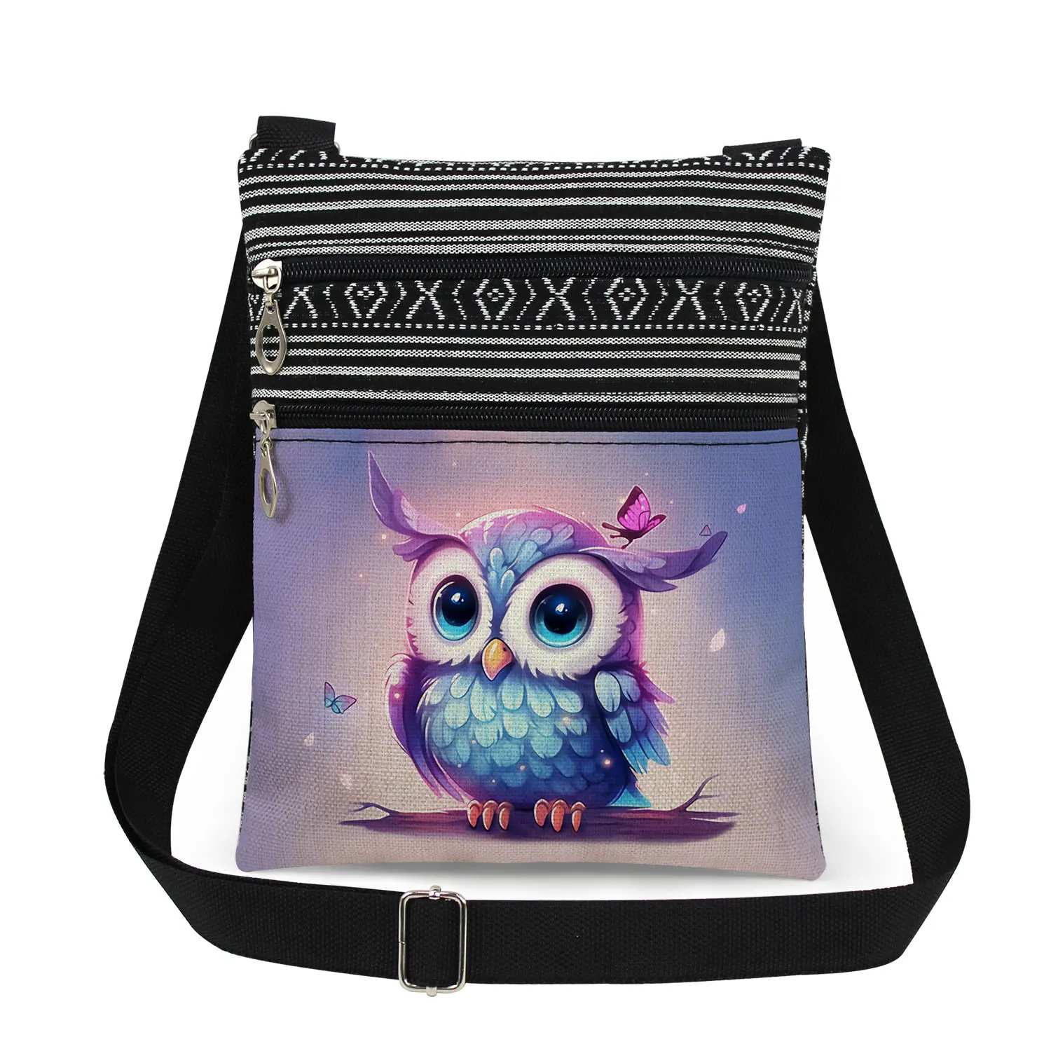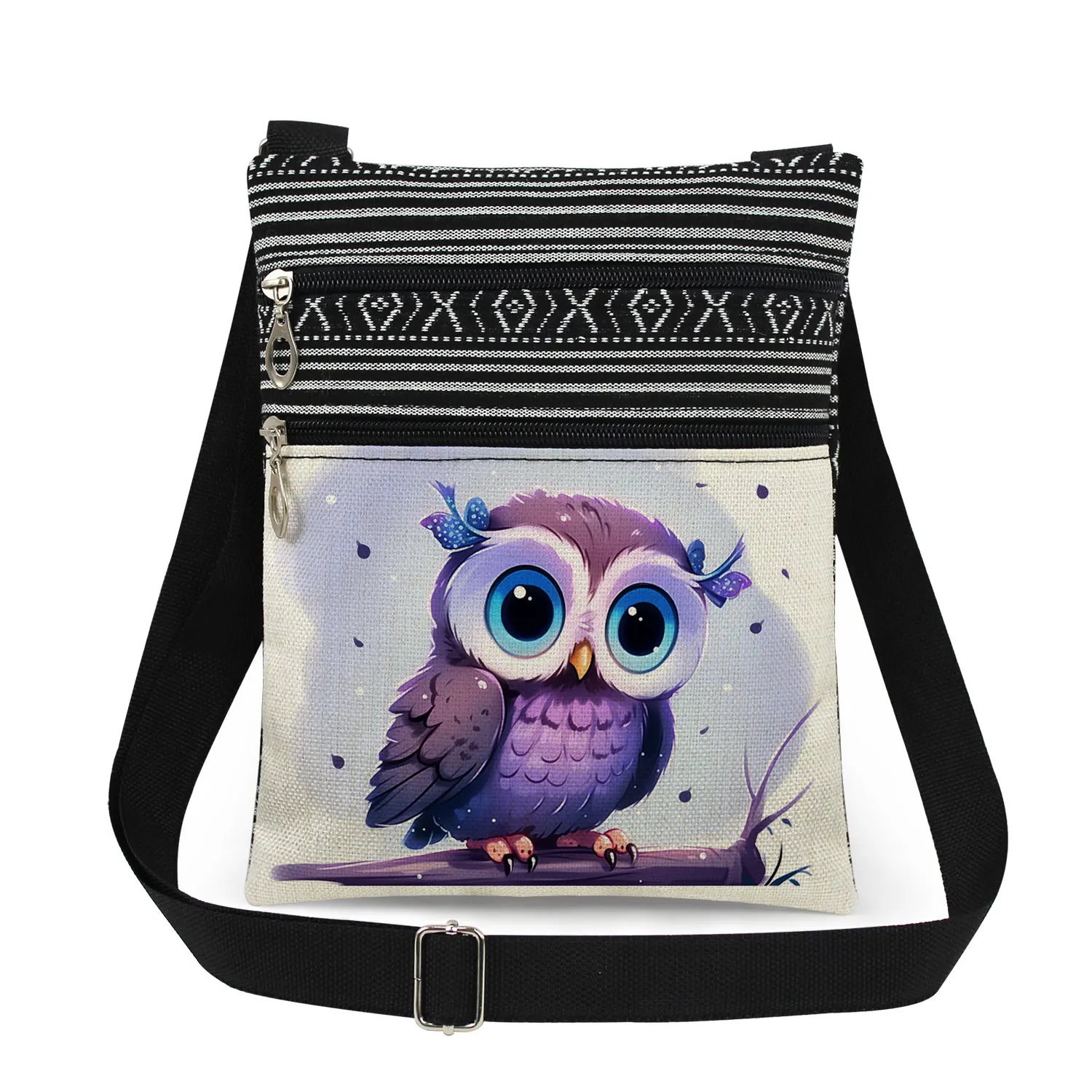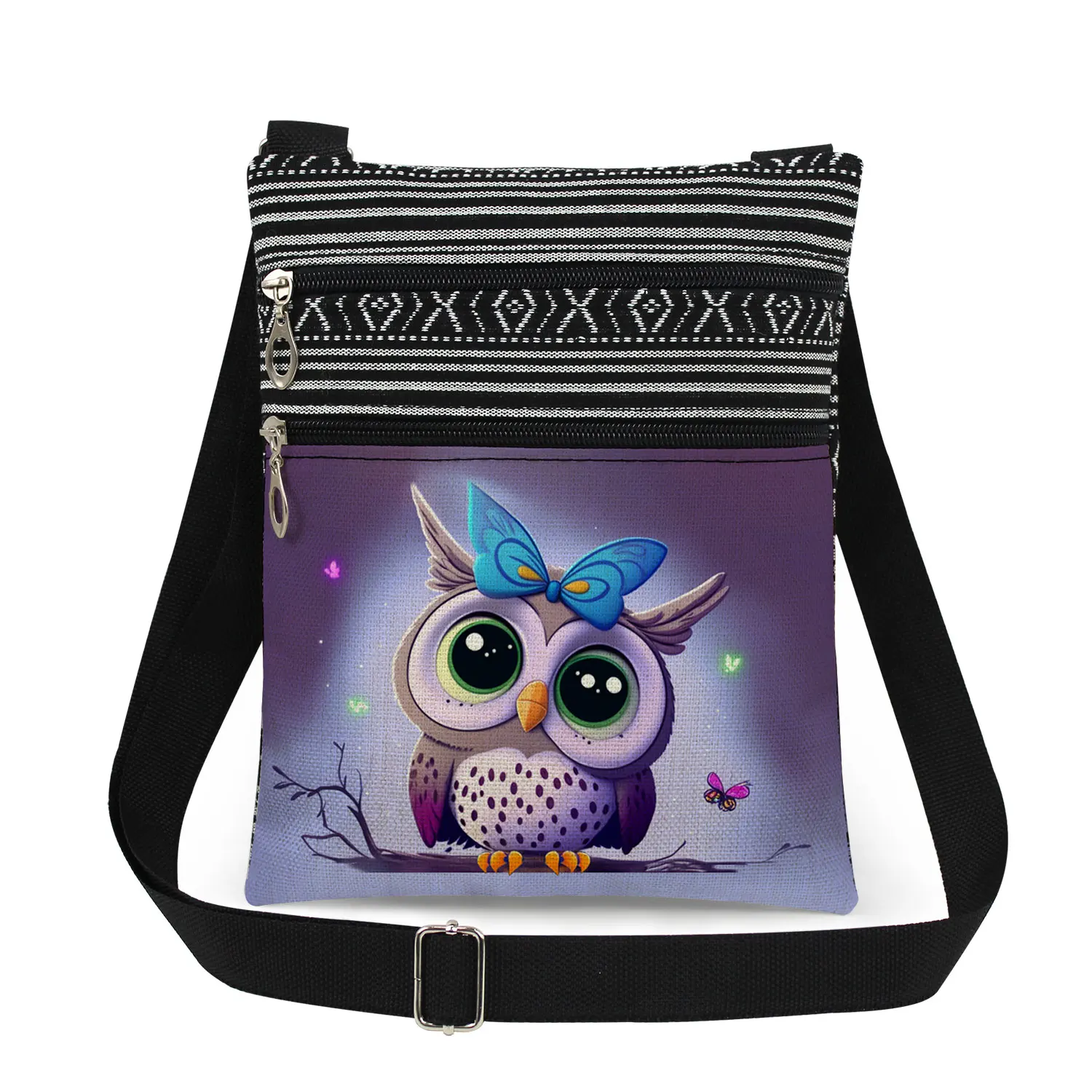 Cute owl print men’s crossbody bag women’s shoulder bag outdoor portable coin card phone storage crossbody bag