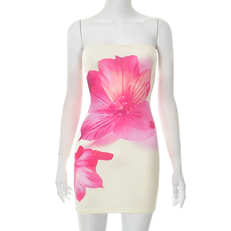 CUTENOVA Women’S Floral Printed Strapless Backless Skinny Package Hip Mini Short Dress Causal Holiday Elegant Beachwear Dresses