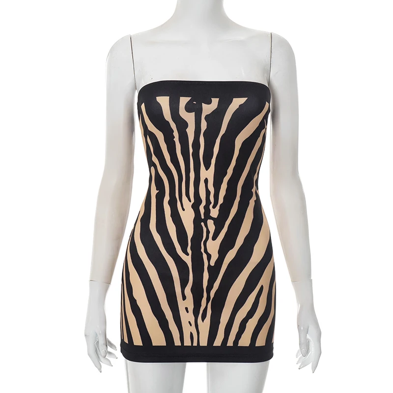 CUTENOVA Women’S Pullover Sexy Zebra Printed Strapless Backless Slim A-Line Ultra Short Dress Hottie Girls Casual Edgy Clothes