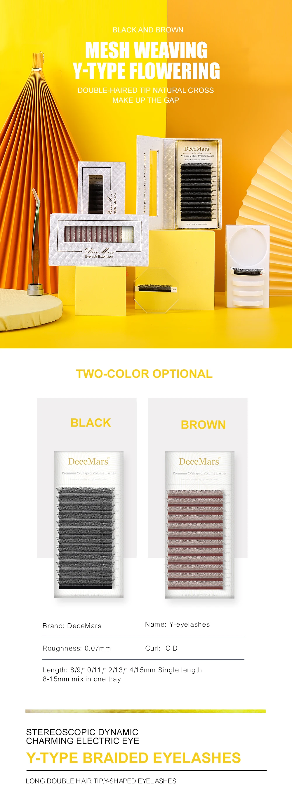 DeceMars YY Shape Black Brown Eyelashes Extensions Two Tip Lashes C/D Curl High Quality Idividual