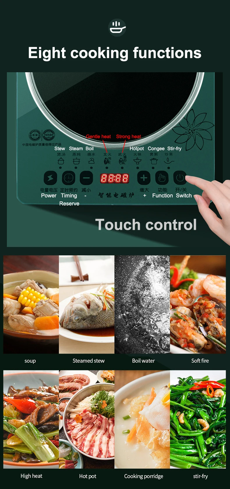 DMWD Household Induction Cooker 2200W Heating Plate Electromagnetic Oven Electric Stove Cooking Machine Waterproof Touch Control