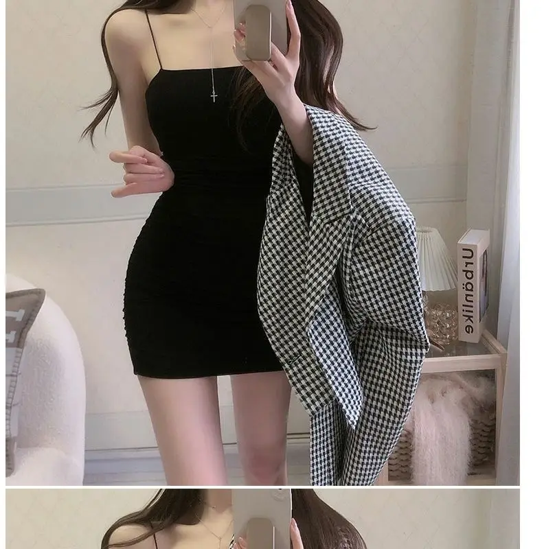 Elegant Solid Sling Sleeveless Type A Sheath Mini Short Dresses Summer New Sexy Slim Slimming Arm Covering Dresses