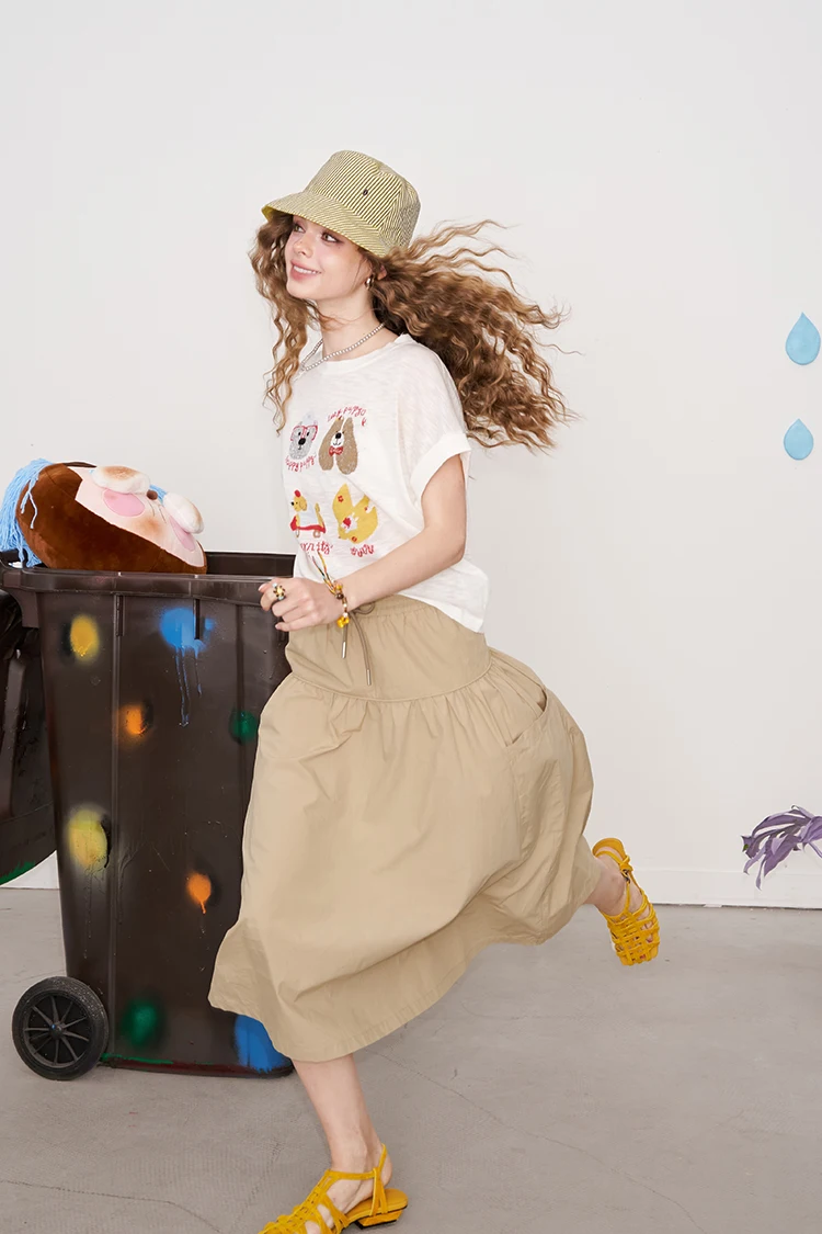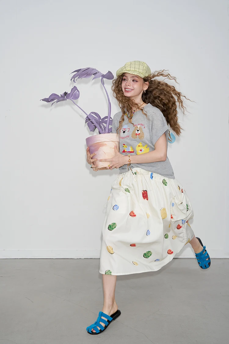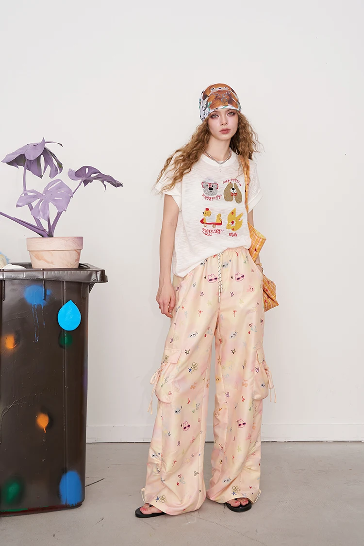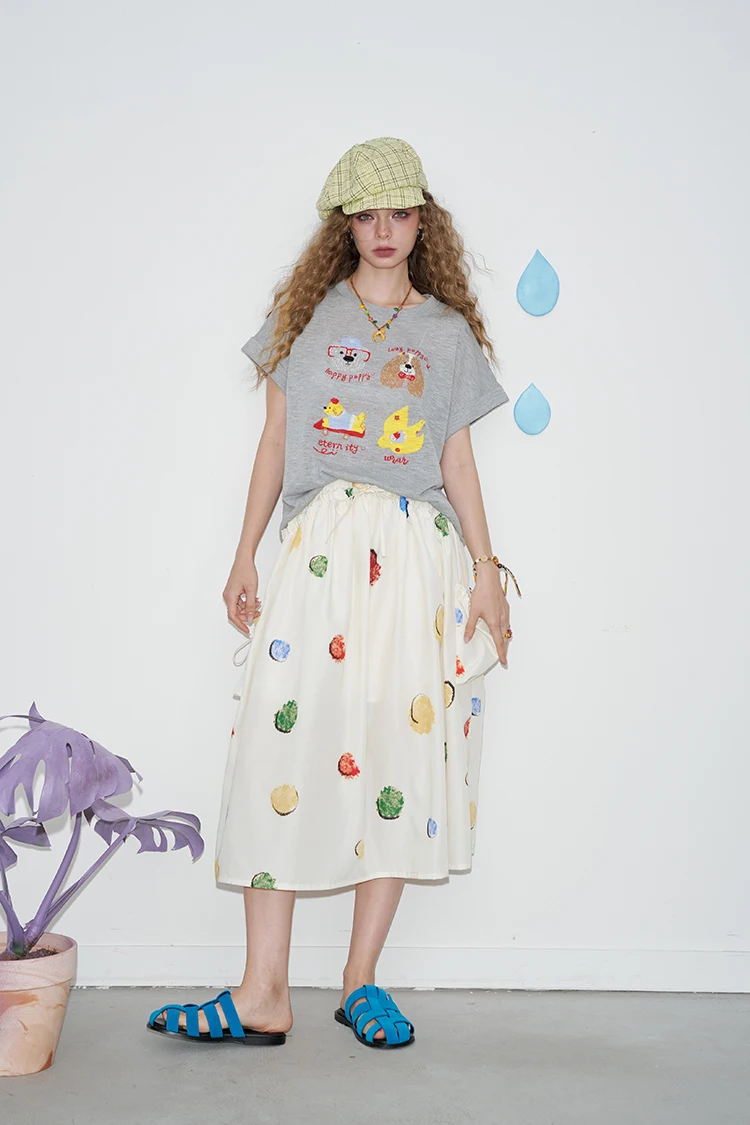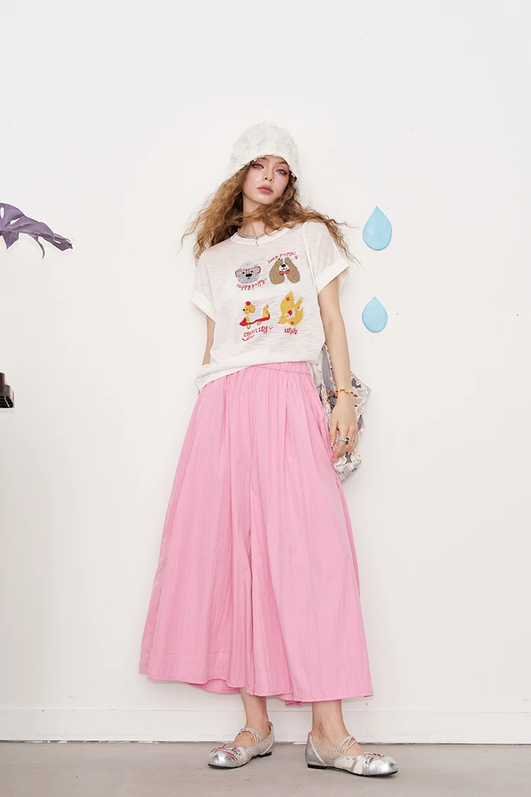 ELFSACK 2025 Summer New Arrival Loose Casual White Cute Puppy Y2K Short Sleeve knitwears Sweater For Woman
