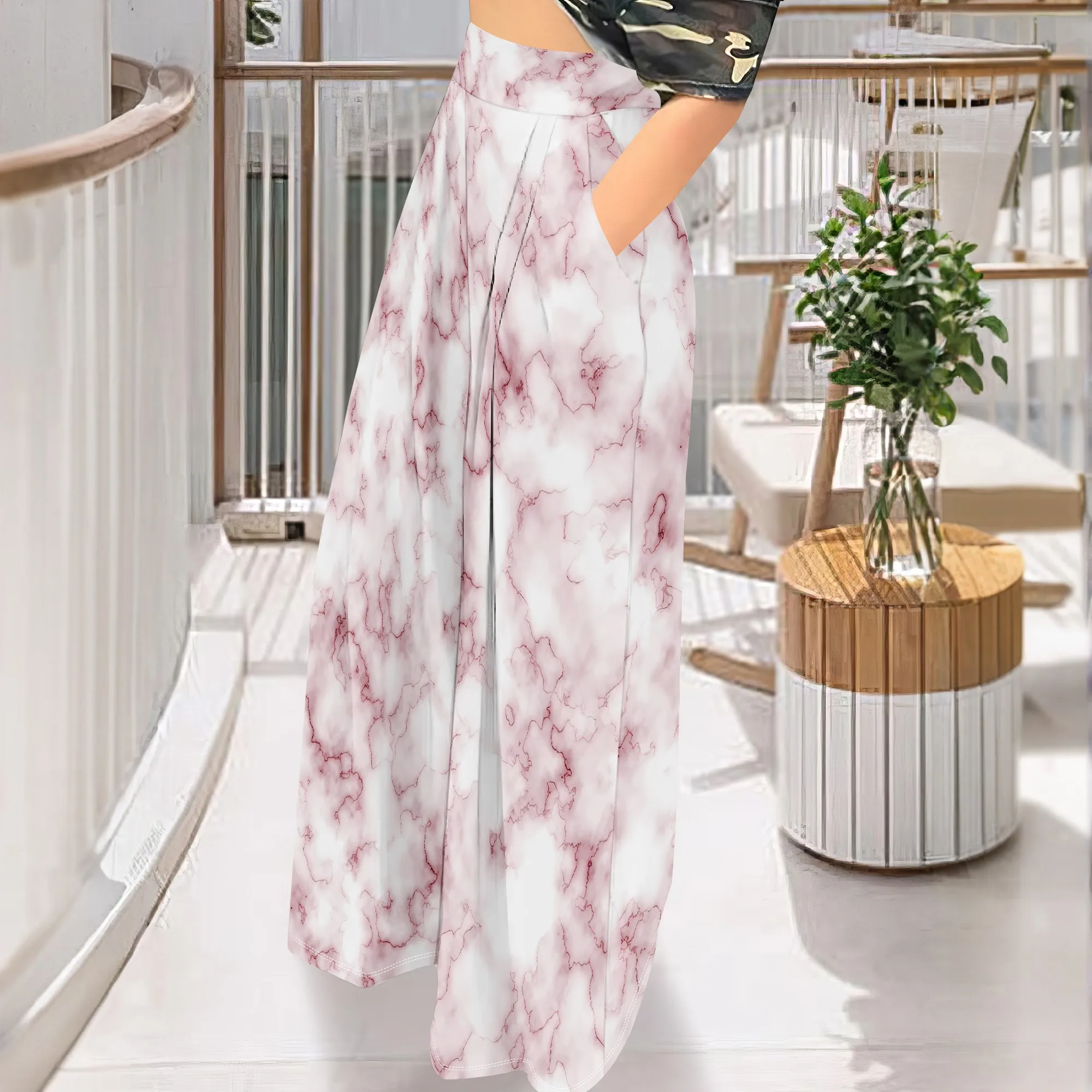 EQQZD Standard Size High Waist Wide Leg Pants, Loose Fit Casual Tie-Dye Print Trousers with Pockets