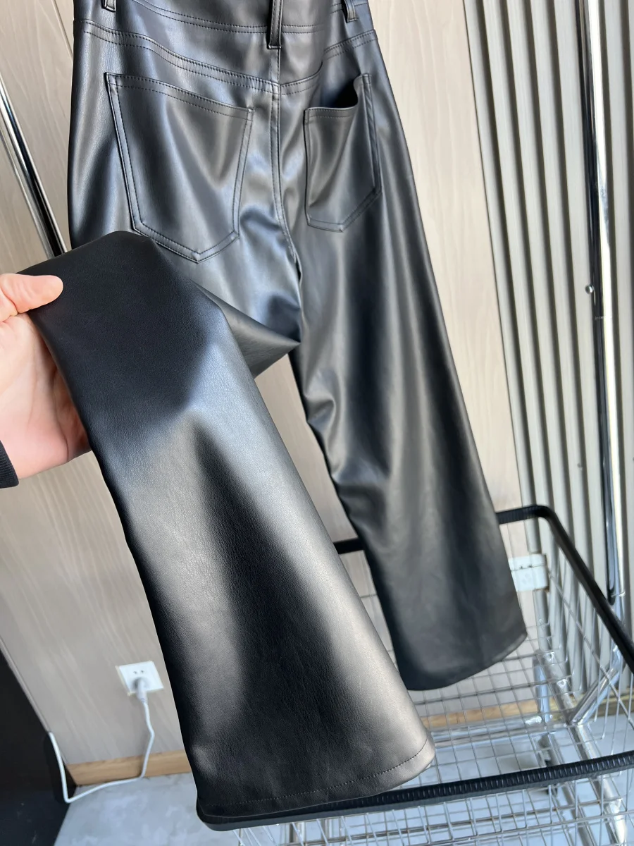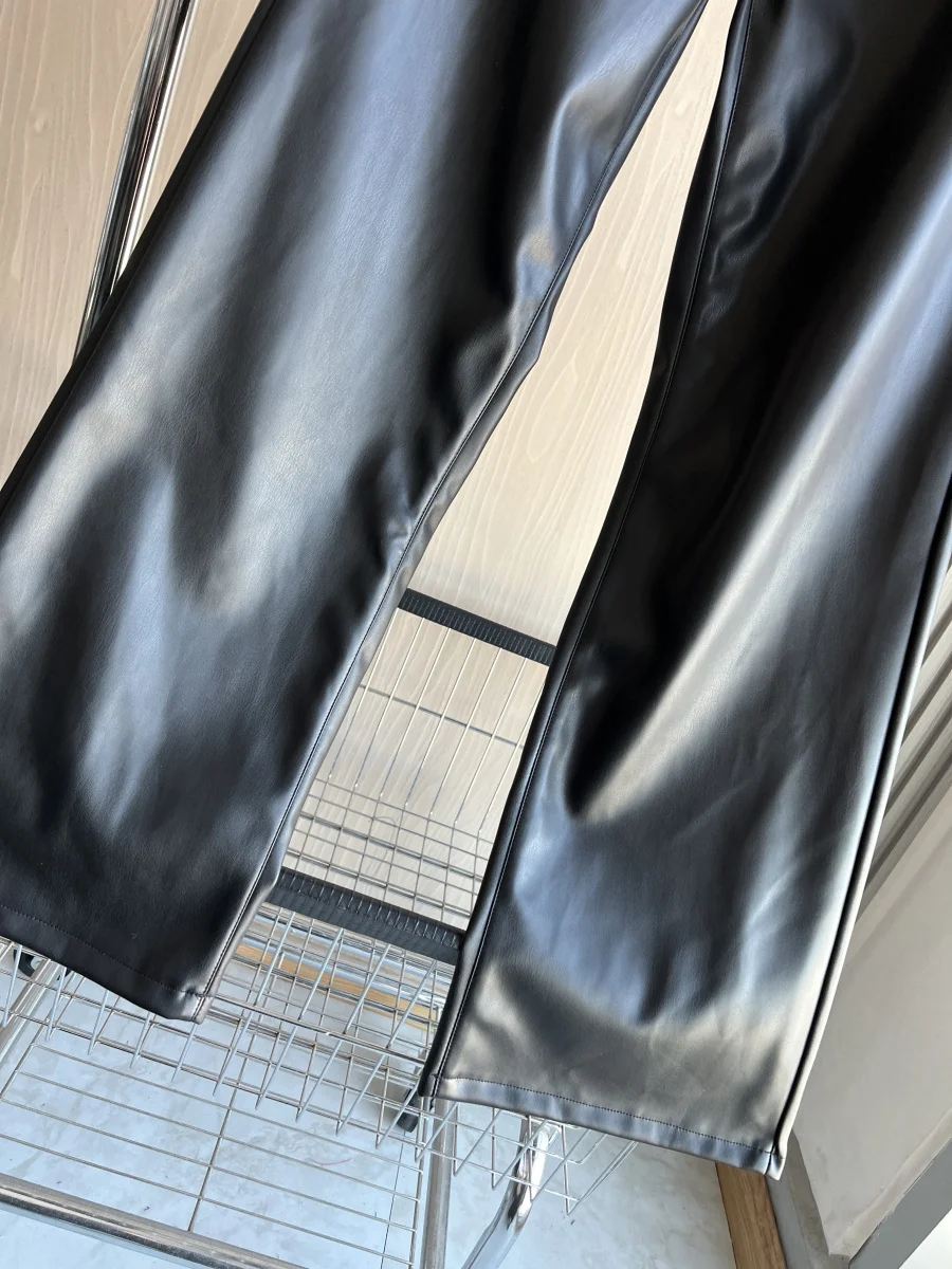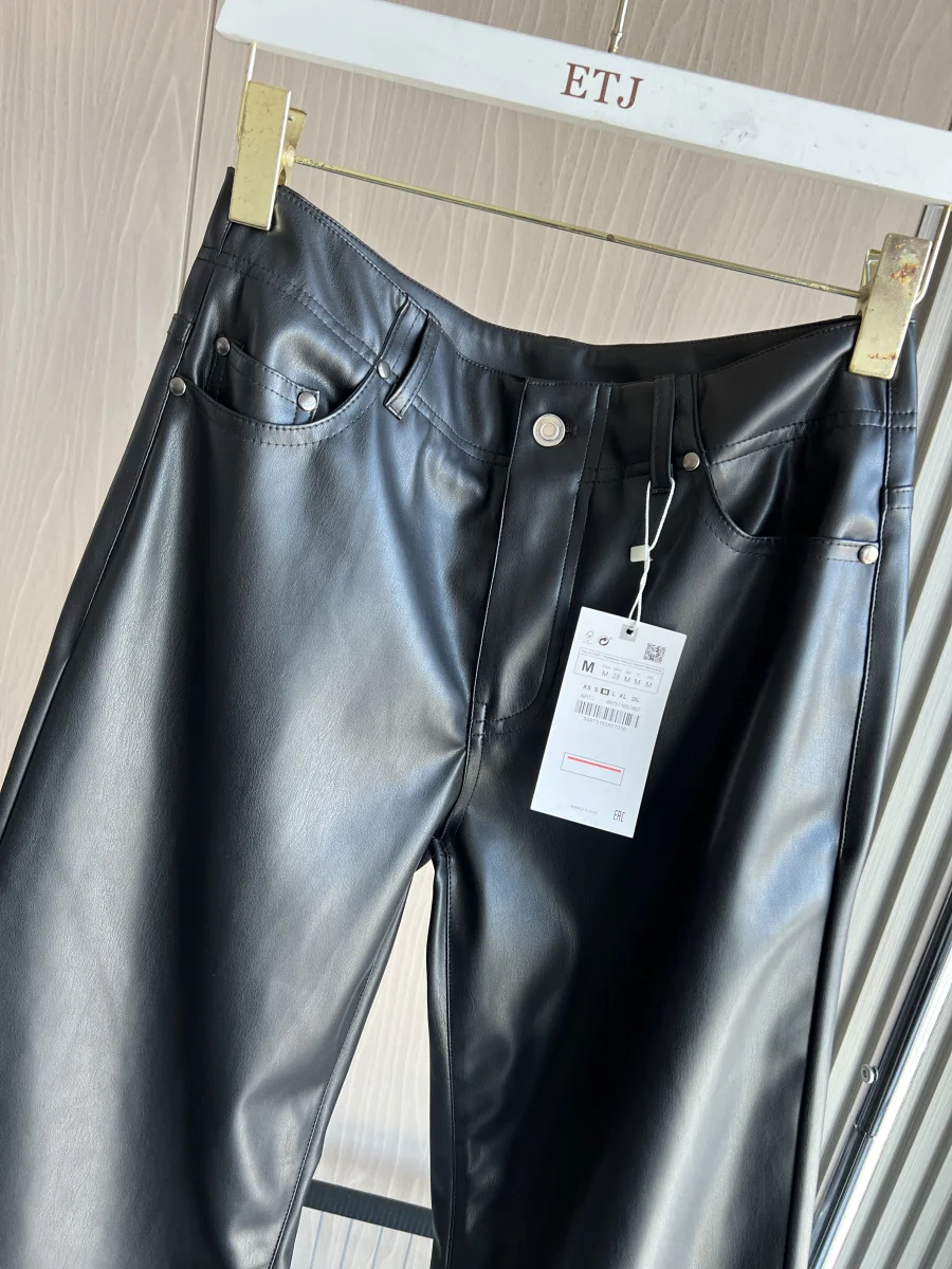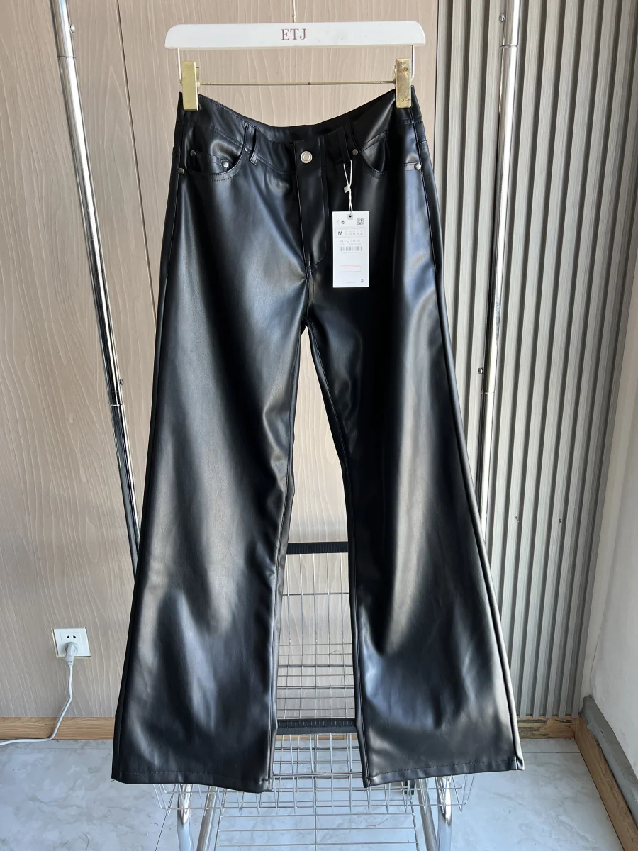 ETJ 2024 Autumn/Winter New TRAF women’s ZW series imitation leather simple temperament straight pants 3581244