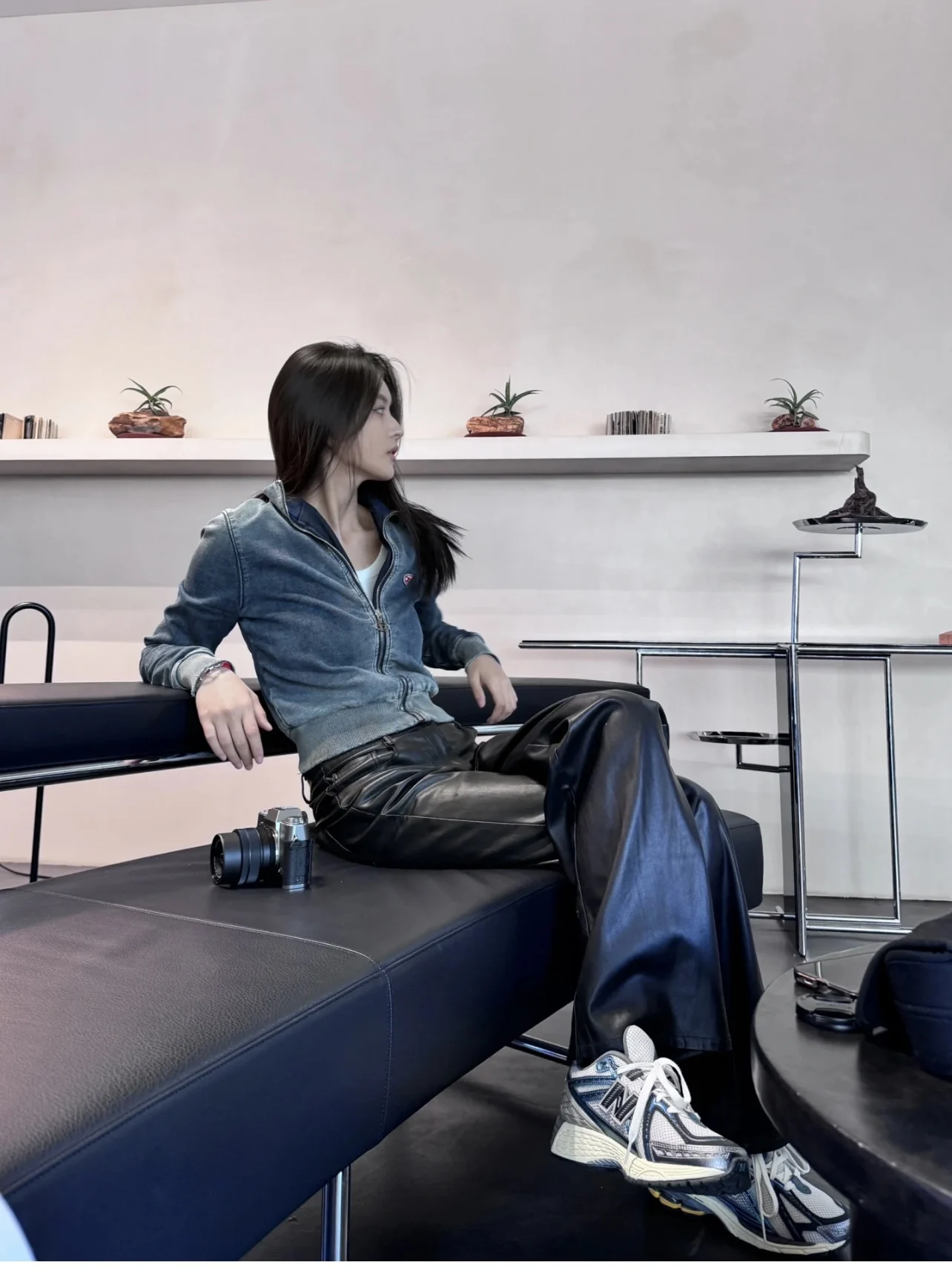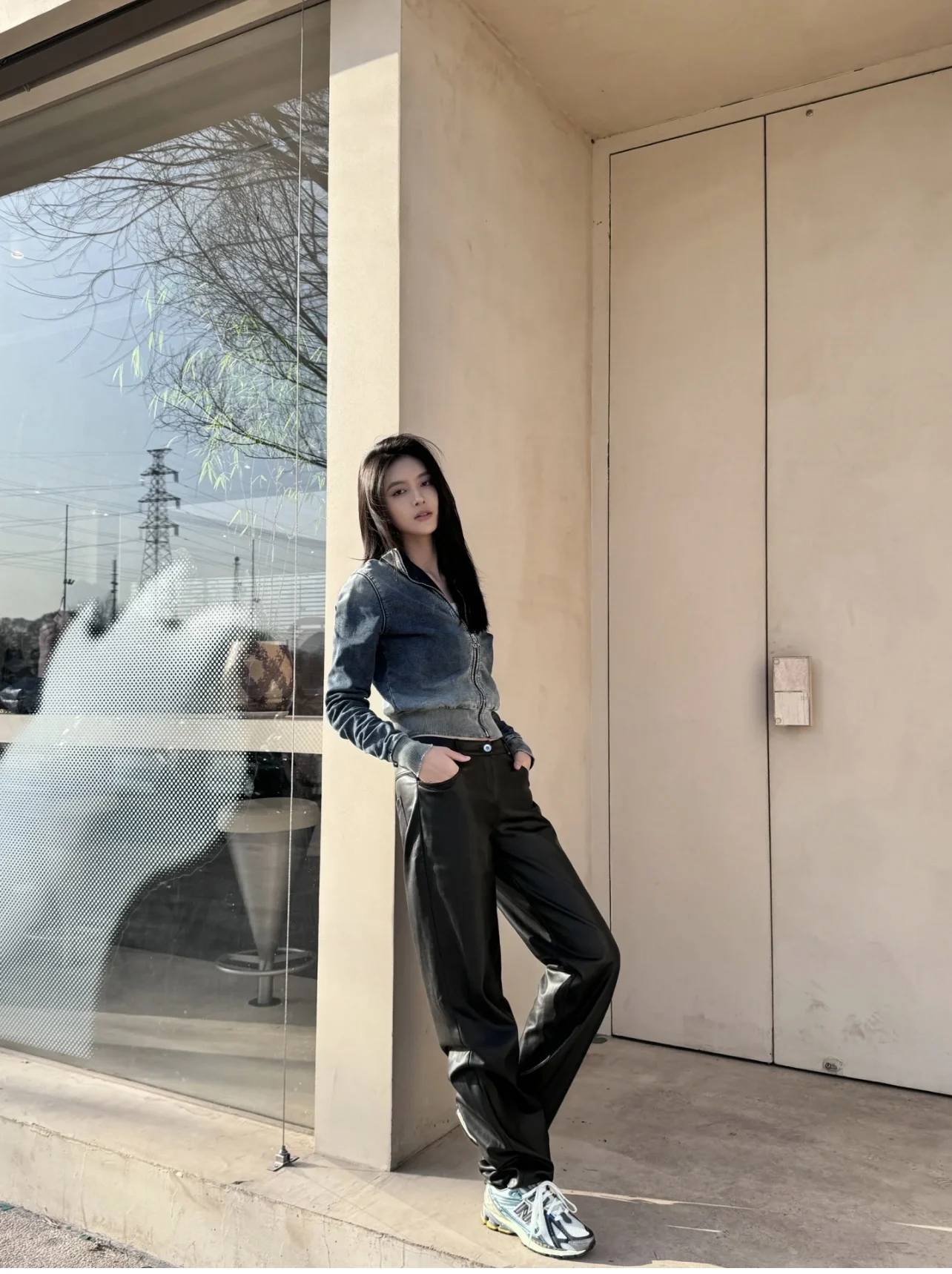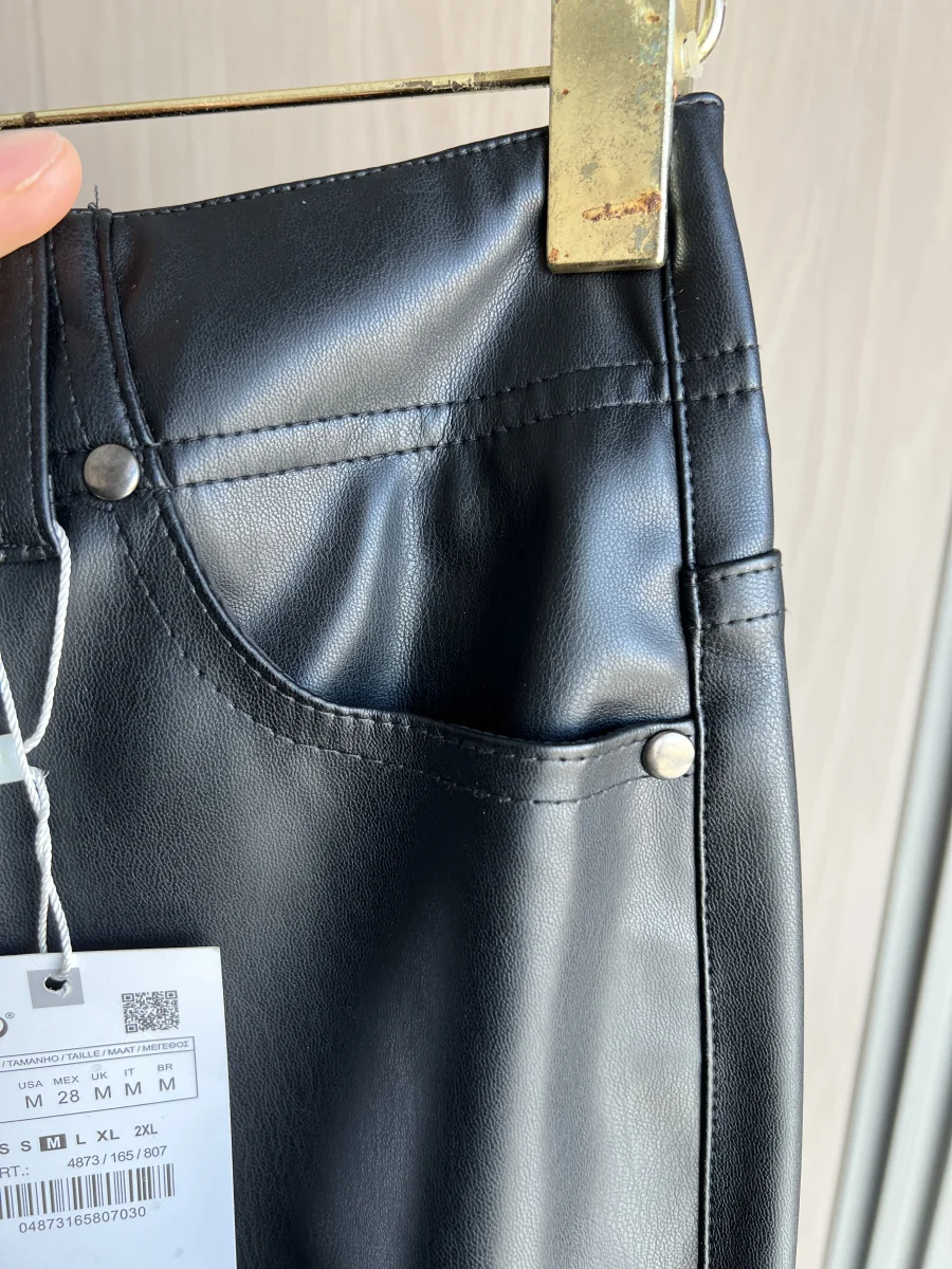 ETJ 2024 Autumn/Winter New TRAF women’s ZW series imitation leather simple temperament straight pants 3581244