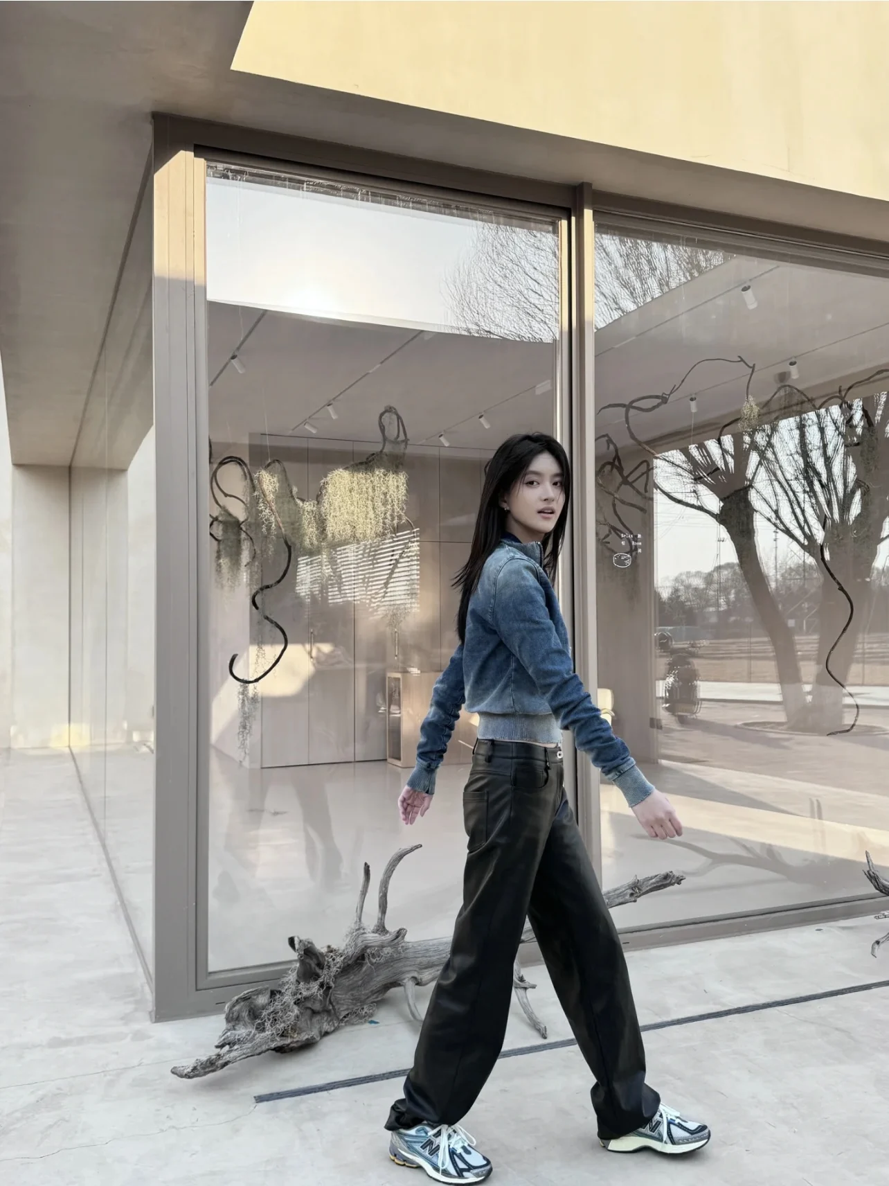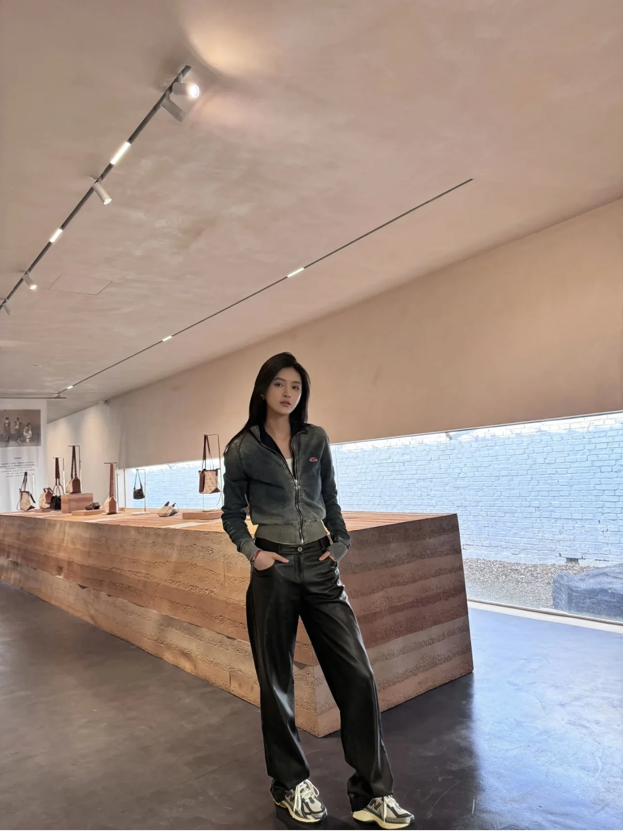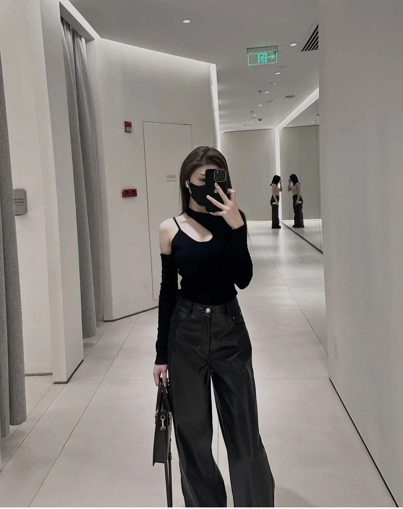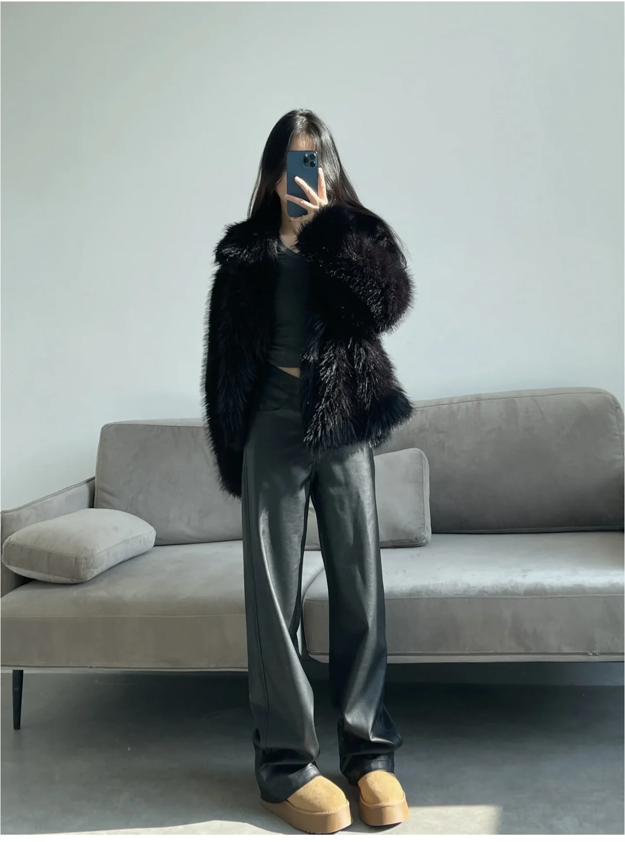ETJ 2024 Autumn/Winter New TRAF women’s ZW series imitation leather simple temperament straight pants 3581244