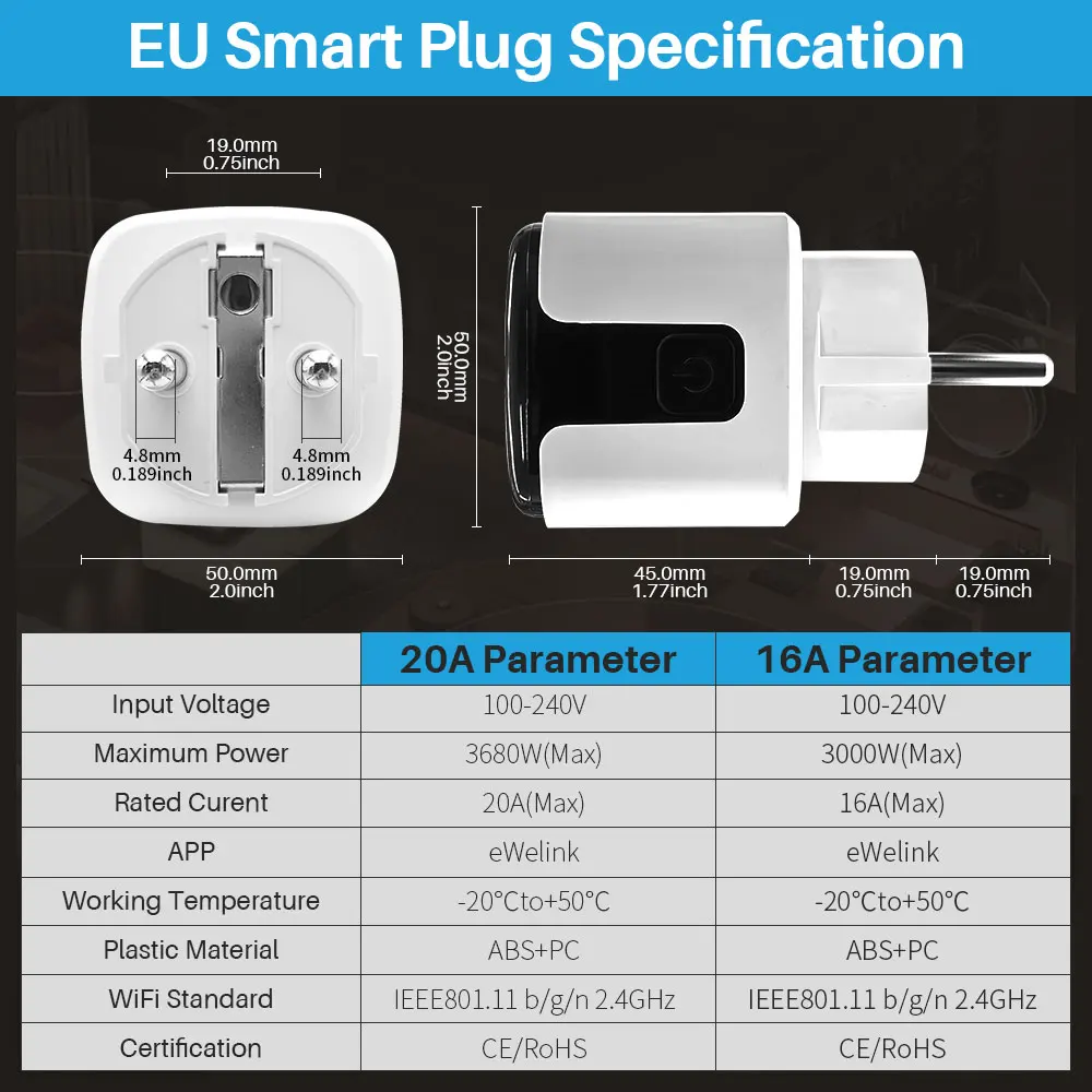 eWelink Smart WiFi Plug(EU) Specification-20A Version