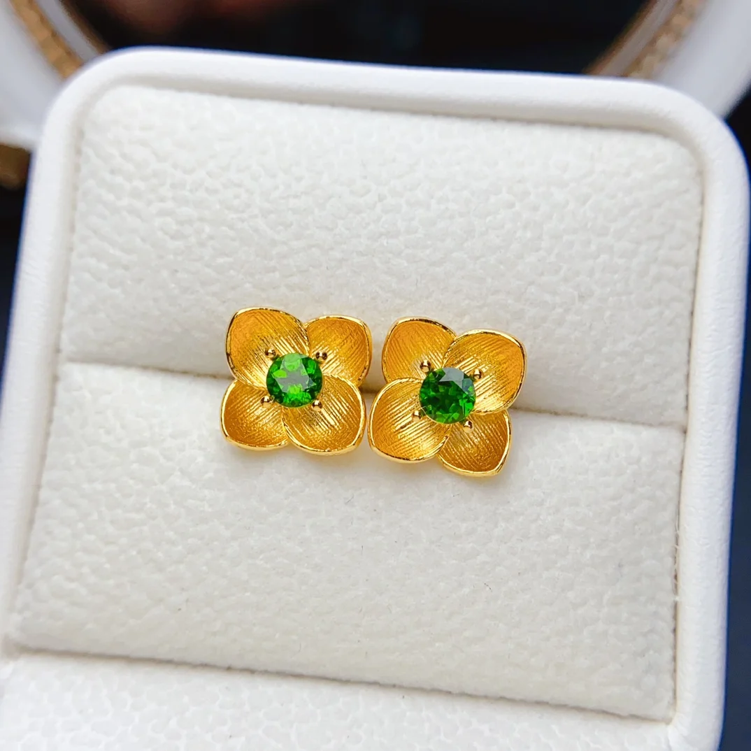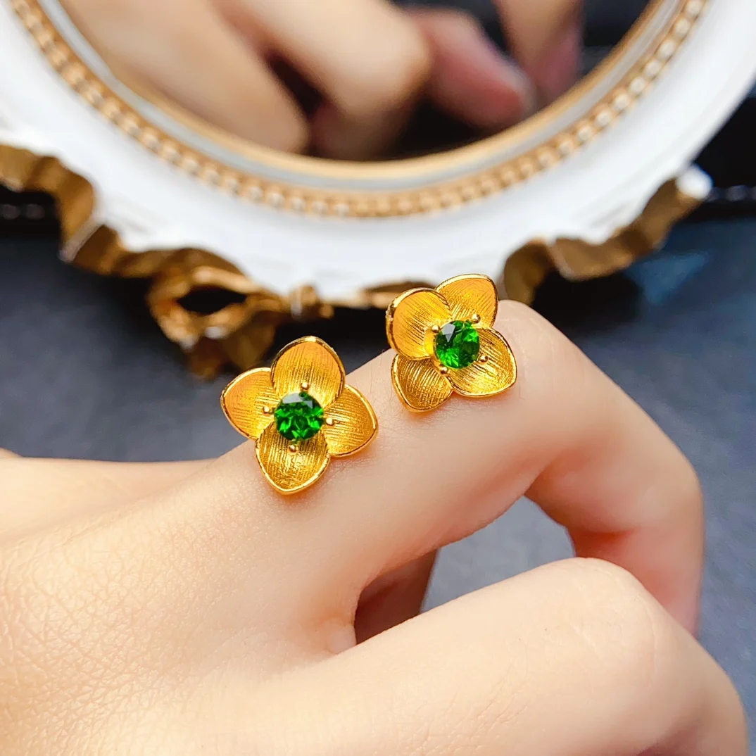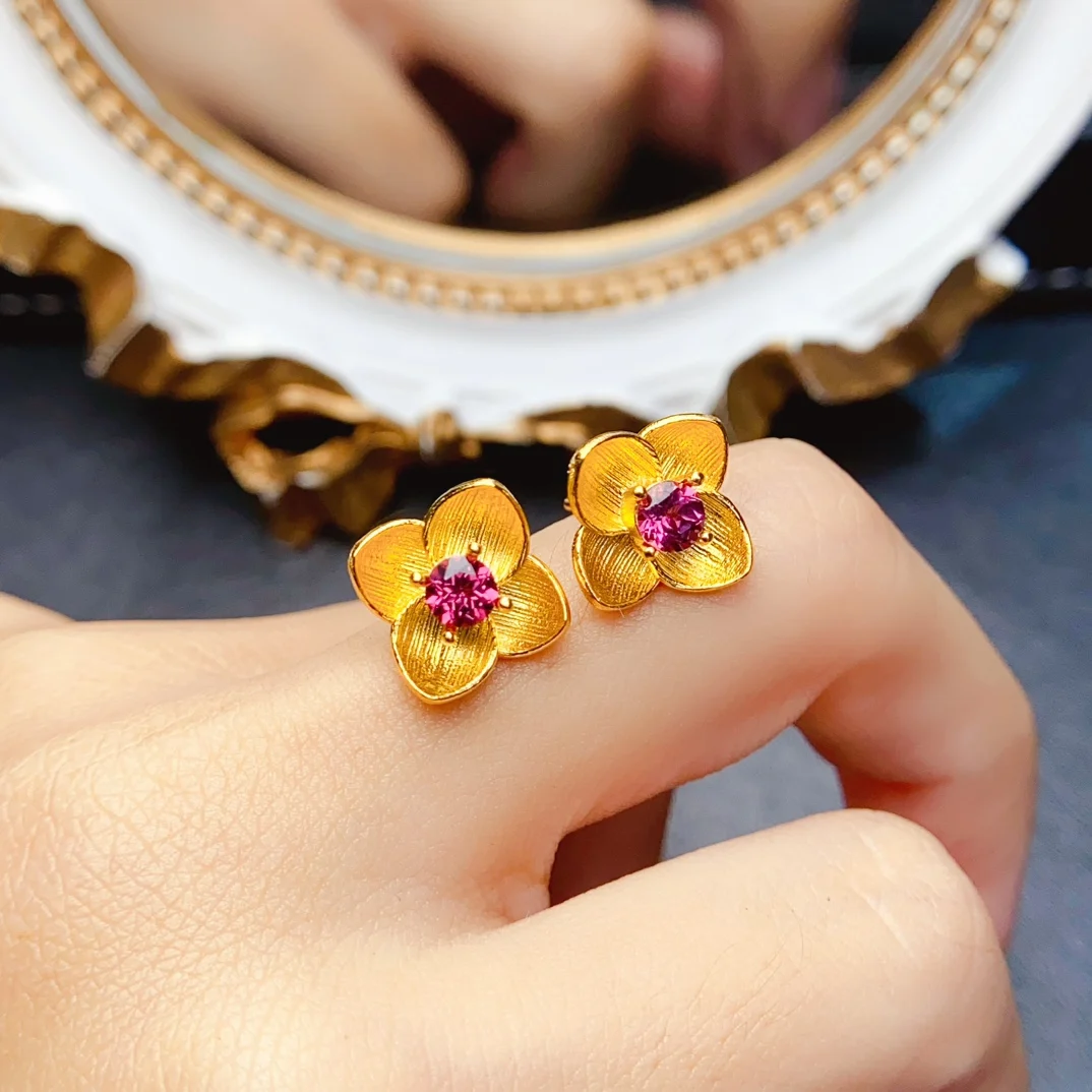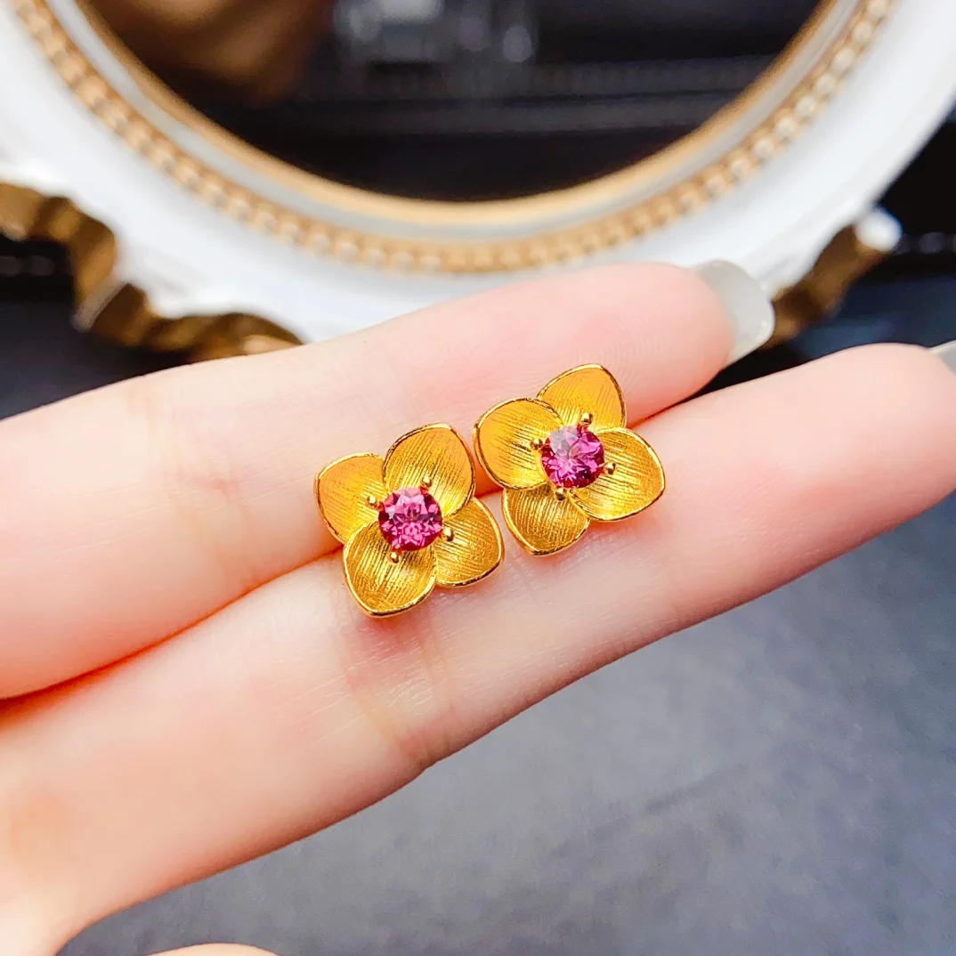 Material:Real S925 Sterling Silver & Natural Garnet/Diopside/Topaz (With Certificate)