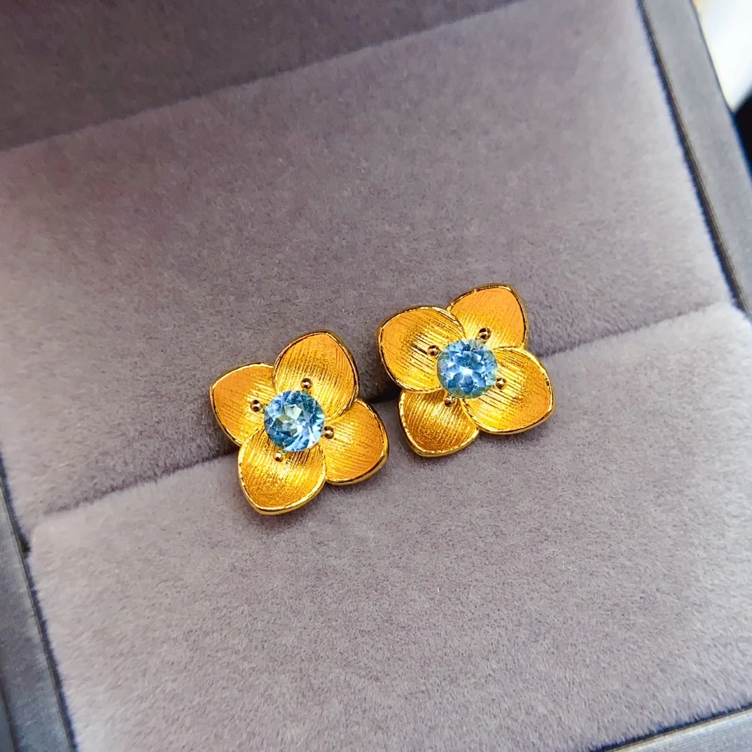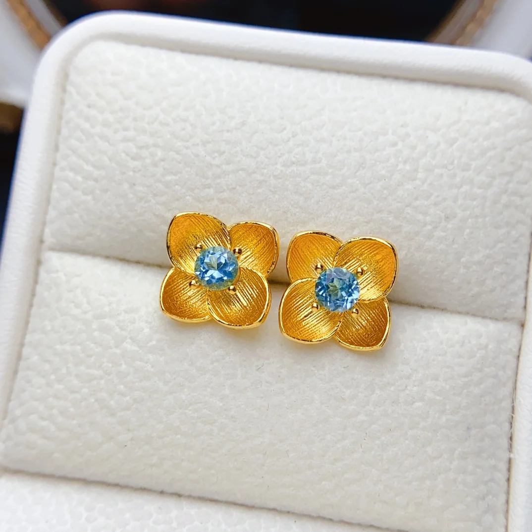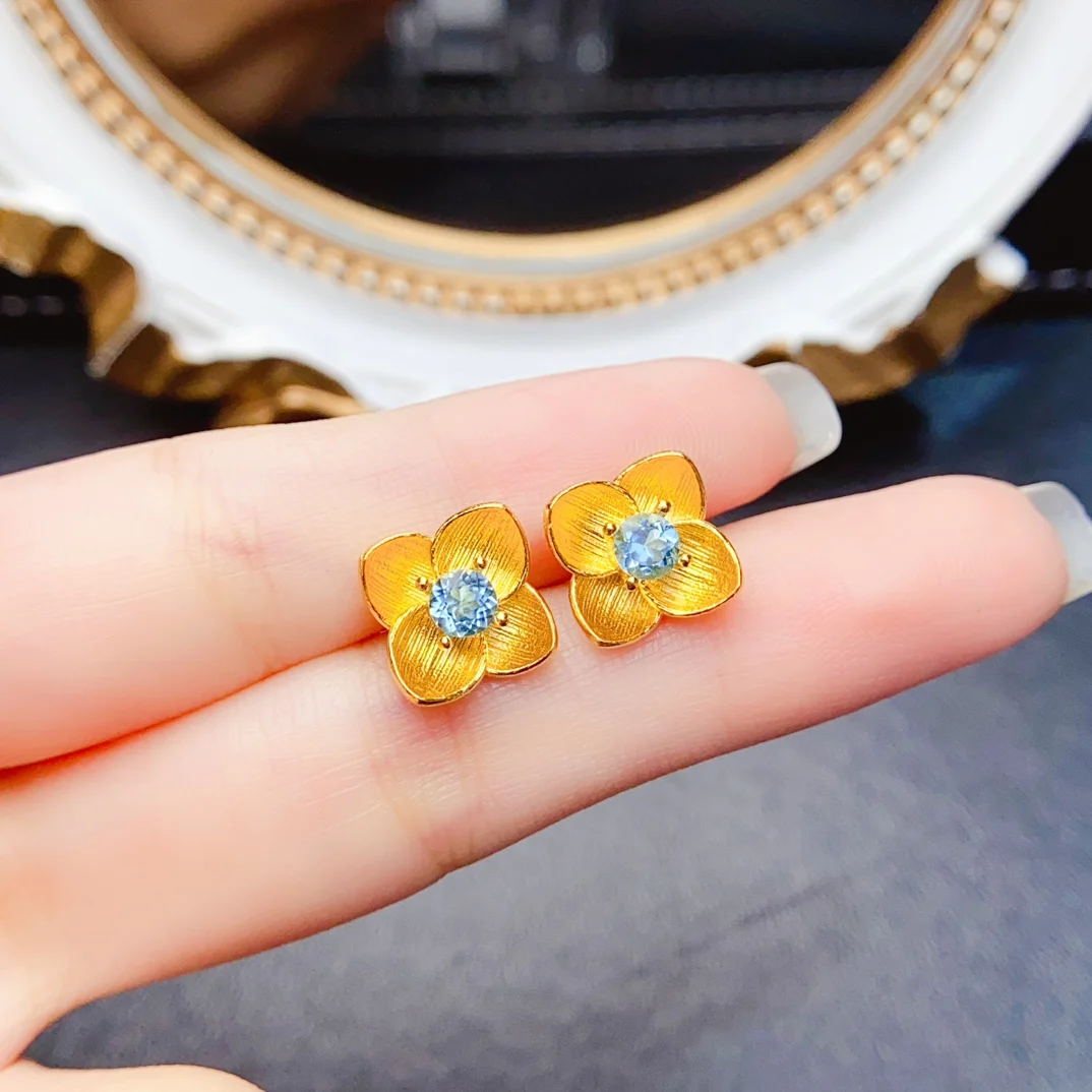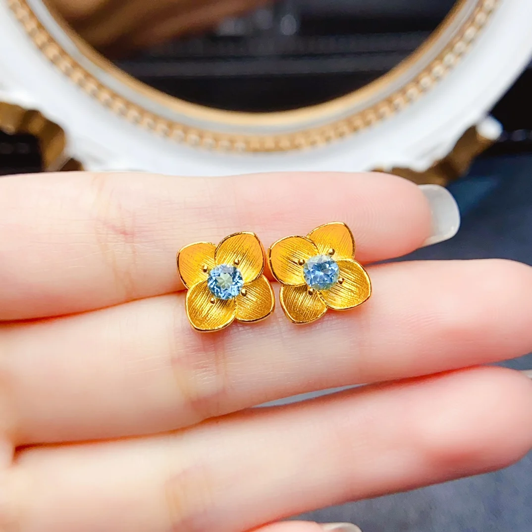 MeiBaPJFS Natural Gemstone S925 Sterling Silver Earrings