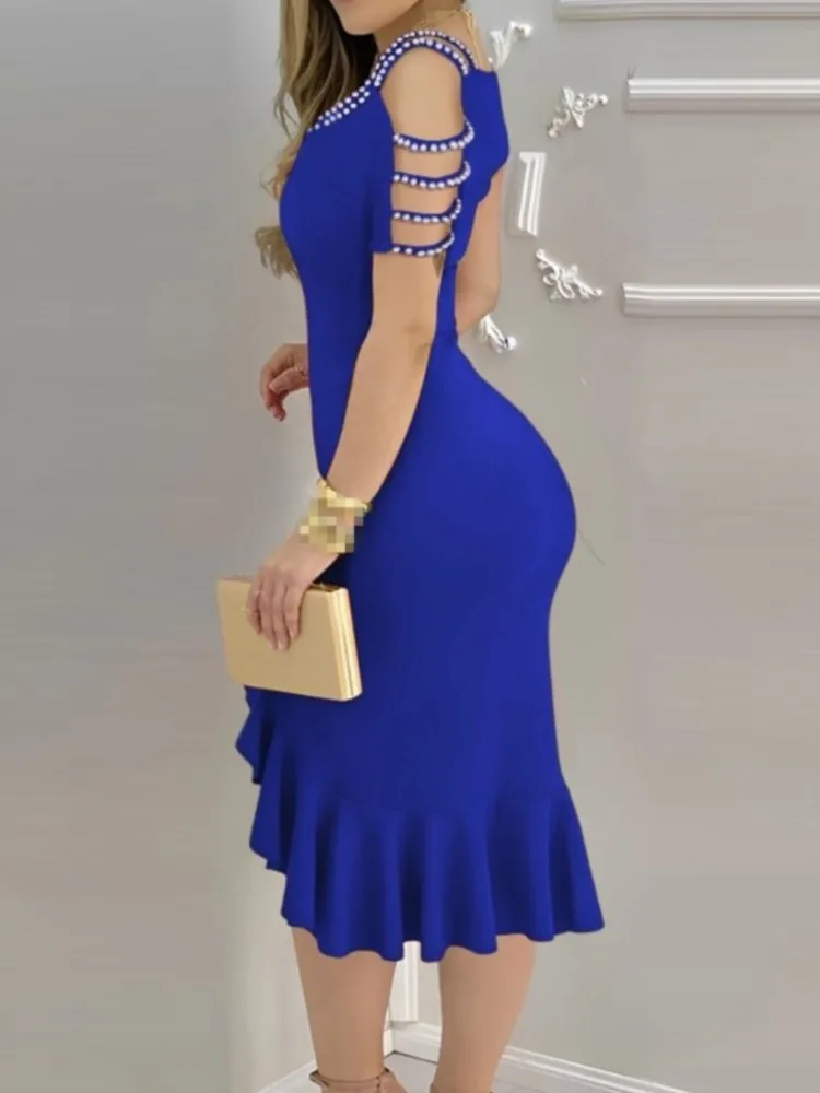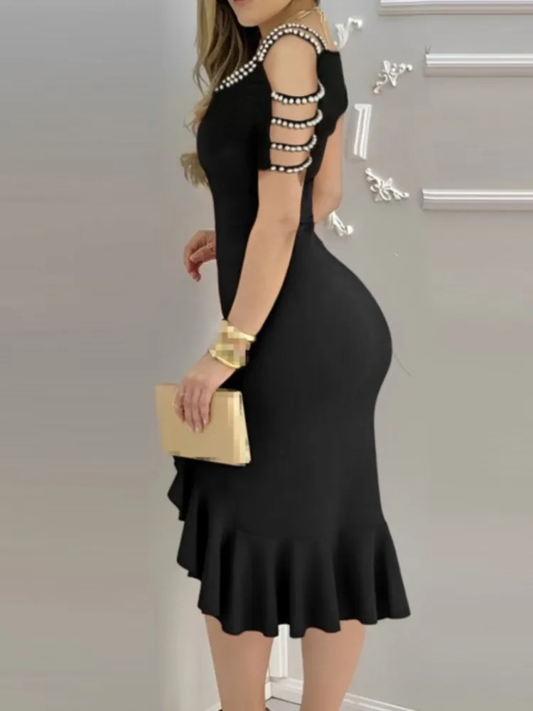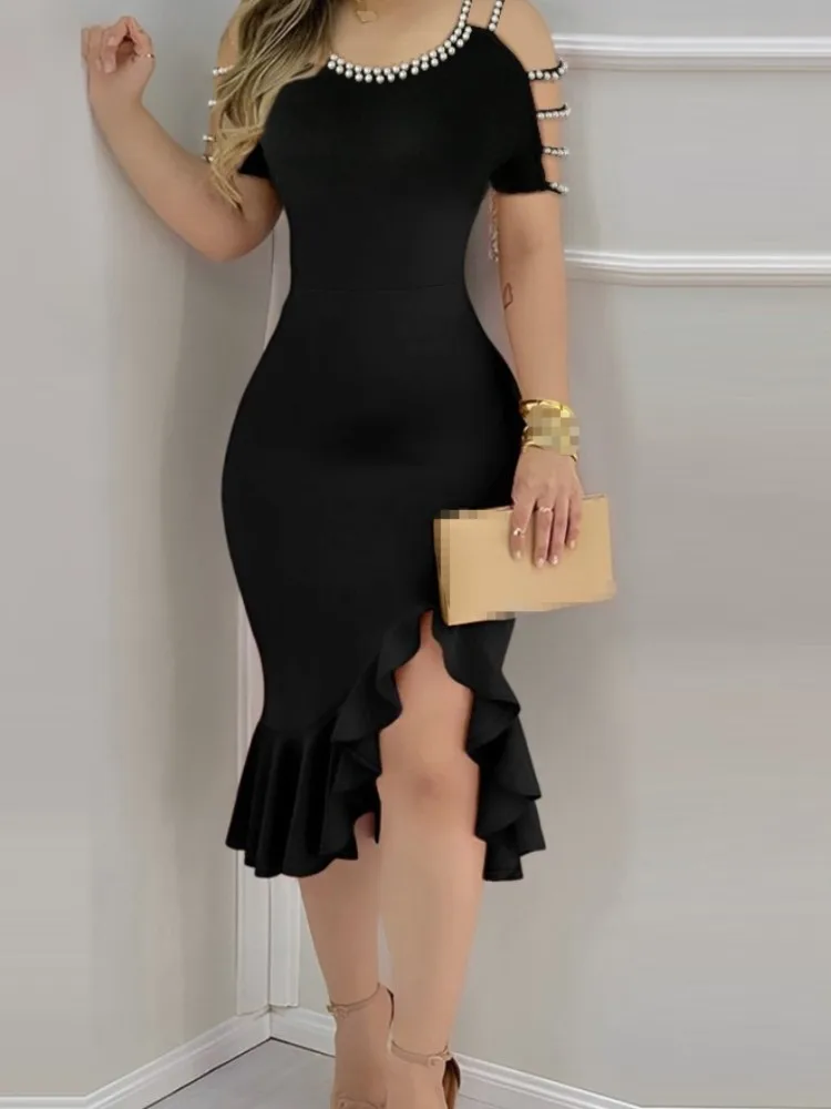 Sexy Strapless Off Shoulder Midi Dress Women Ruffles Split Beach Dress 2024 Summer Slim Fit Party Female Vestido