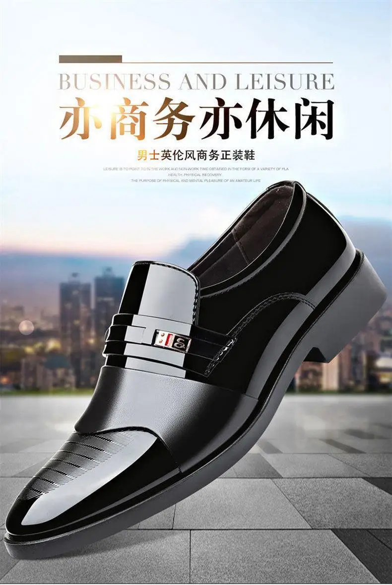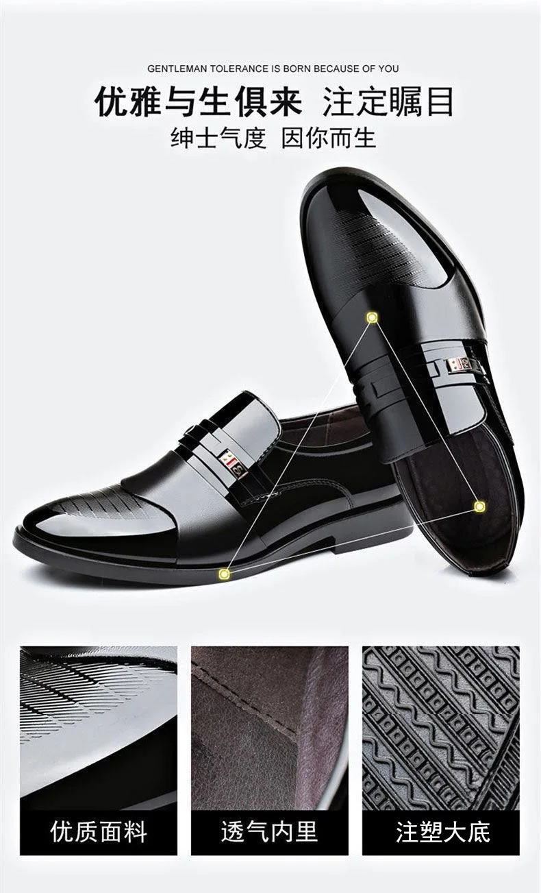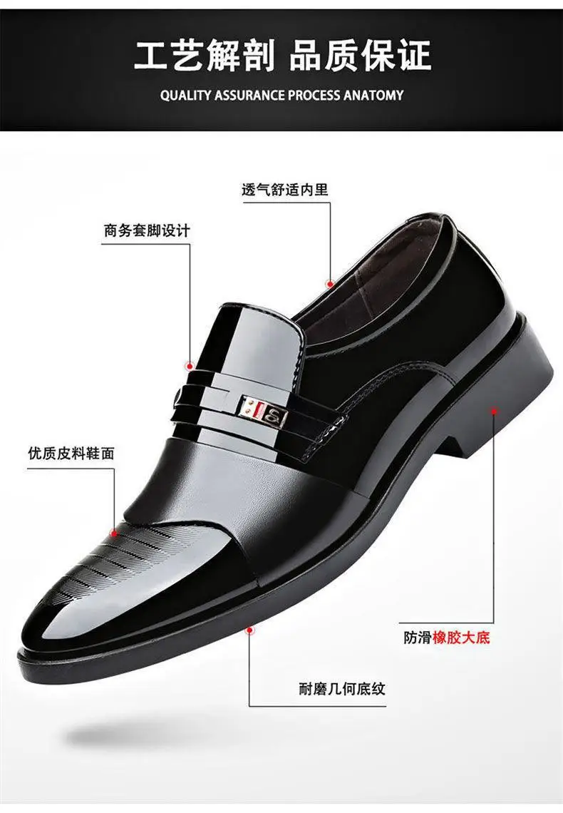 Fashion Black PU Leather Shoes Slip on Formal Men Shoes Plus Size Point Toe Wedding Shoes for Male Elegant Business Casual Shoes