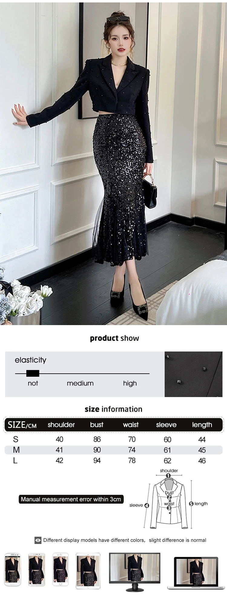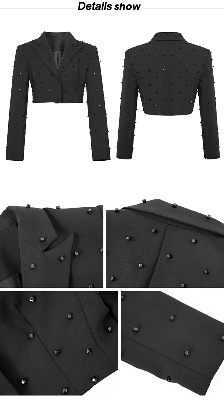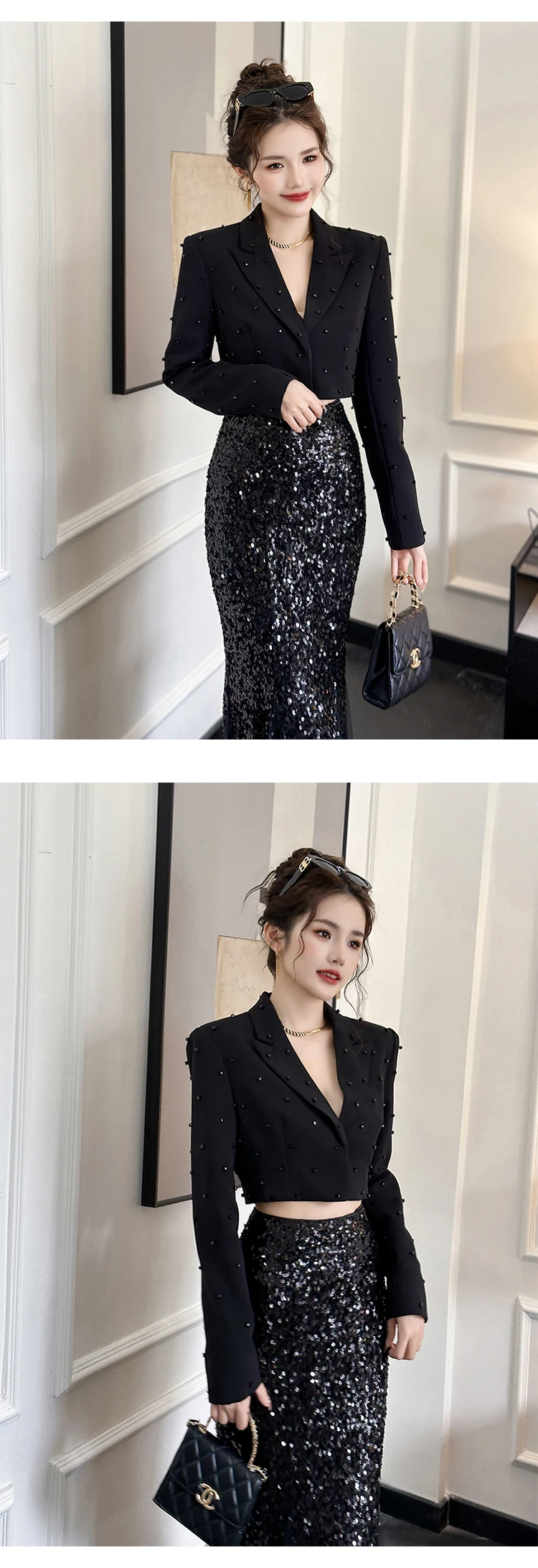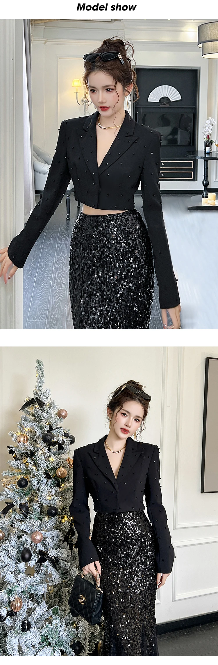 Fashion Chic Women’s Blazer Office Lady Bright Black Long Sleeve Short Casual Party Coat Ladies Outerwear Stylish Cropped Tops